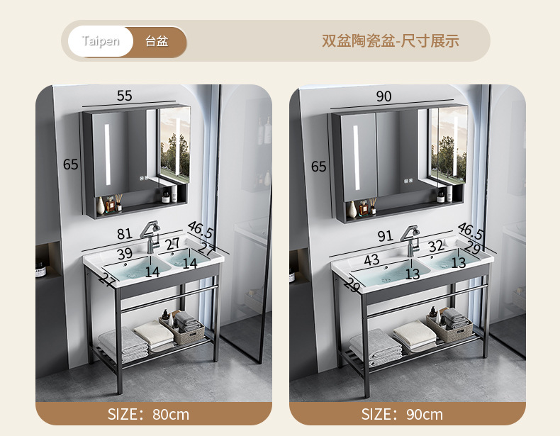 80 gabinete de doble cuenca de cerámica + gabinete de espejo
