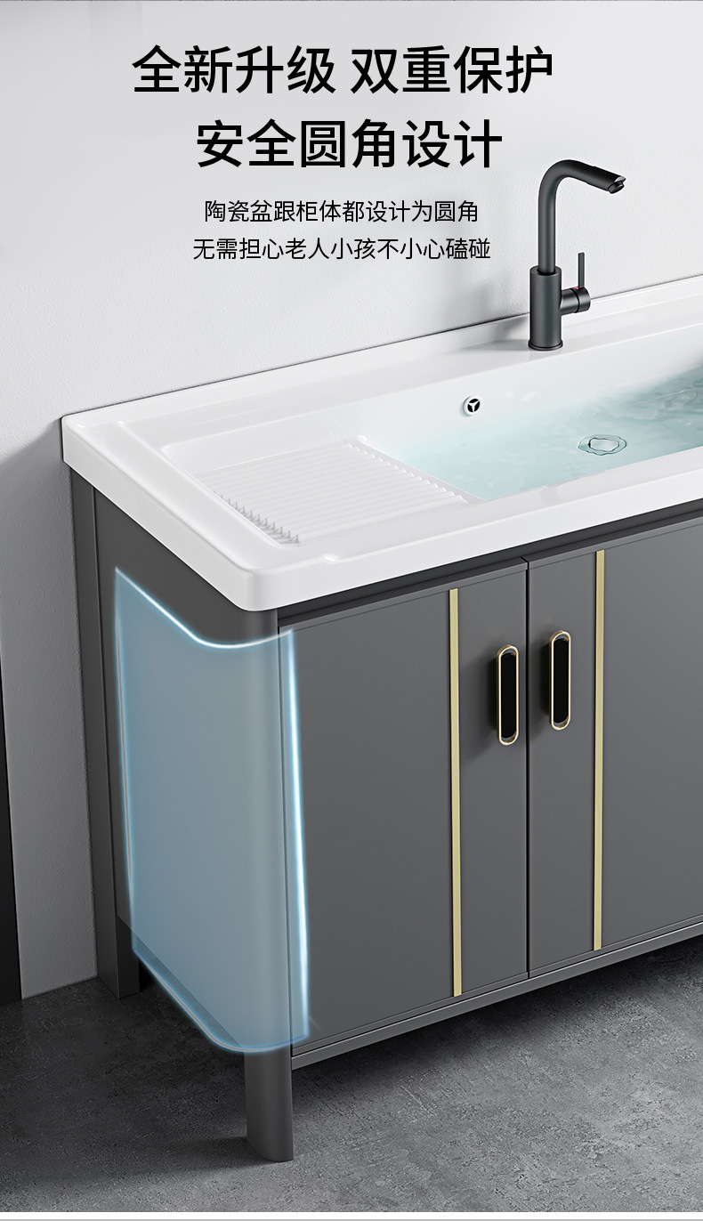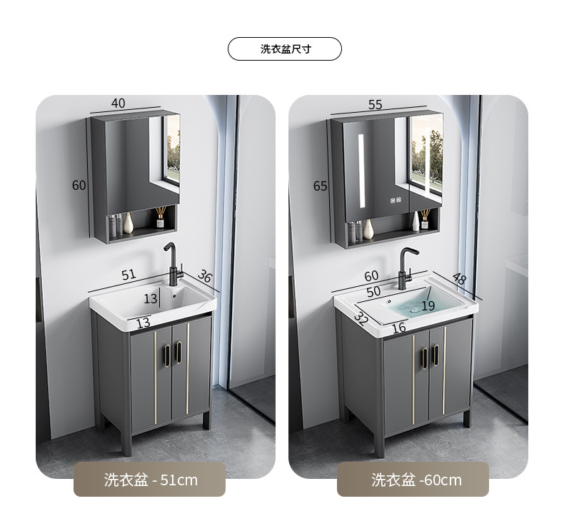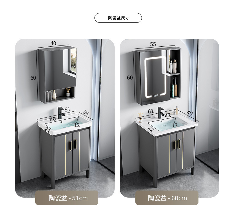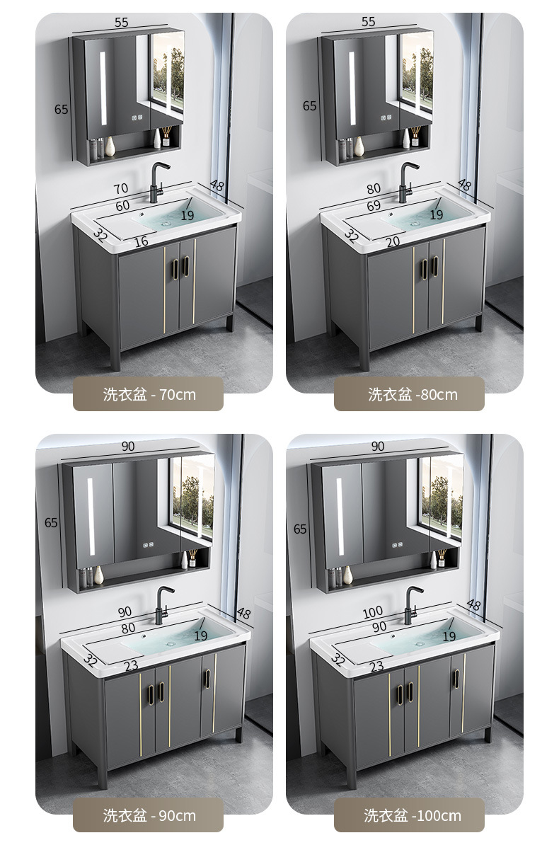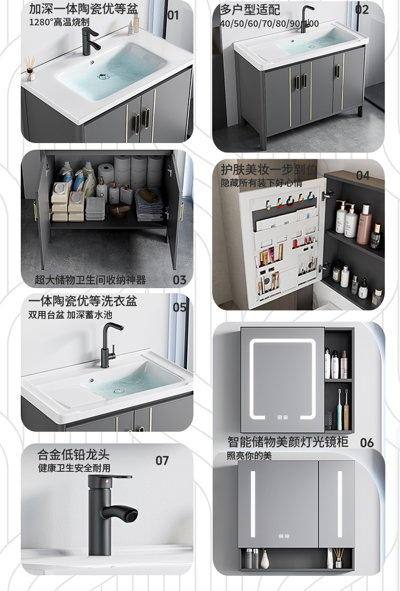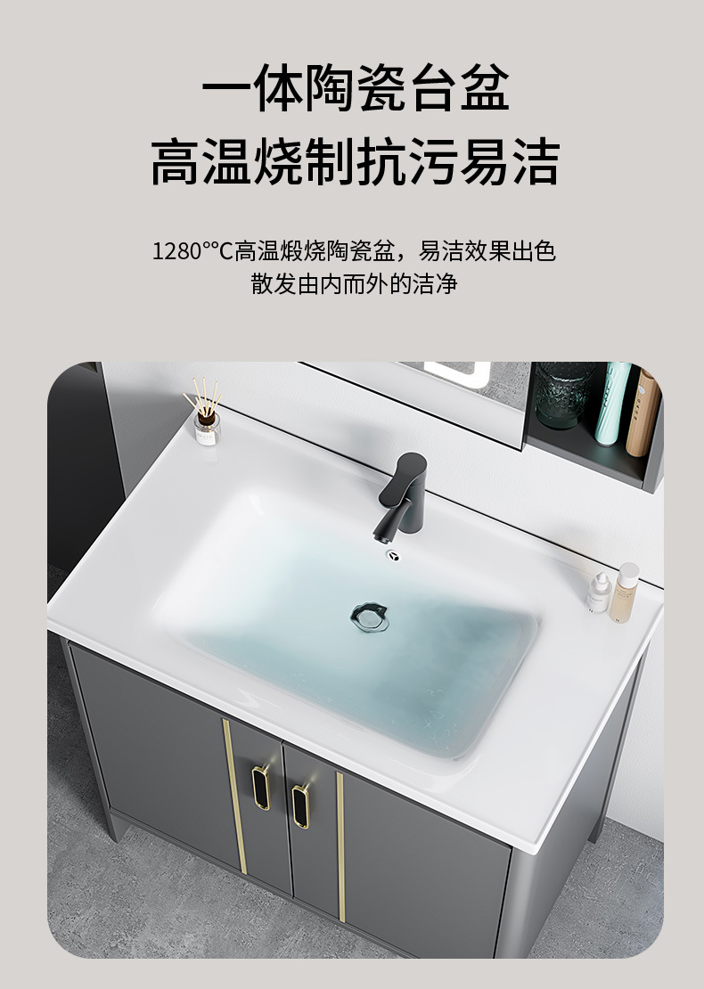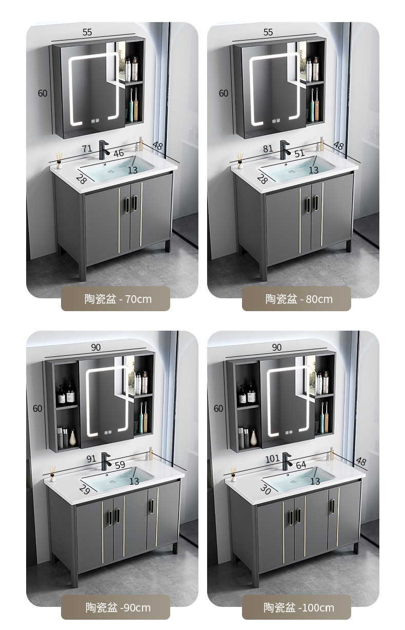 gabinete de baño de aluminio espacial combinado lavabo tablero de lavado de cerámica de lujo lavabo tipo piso baño