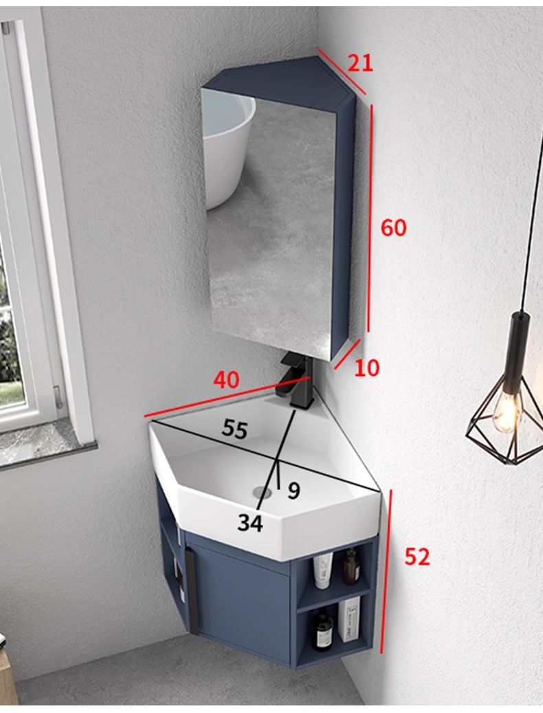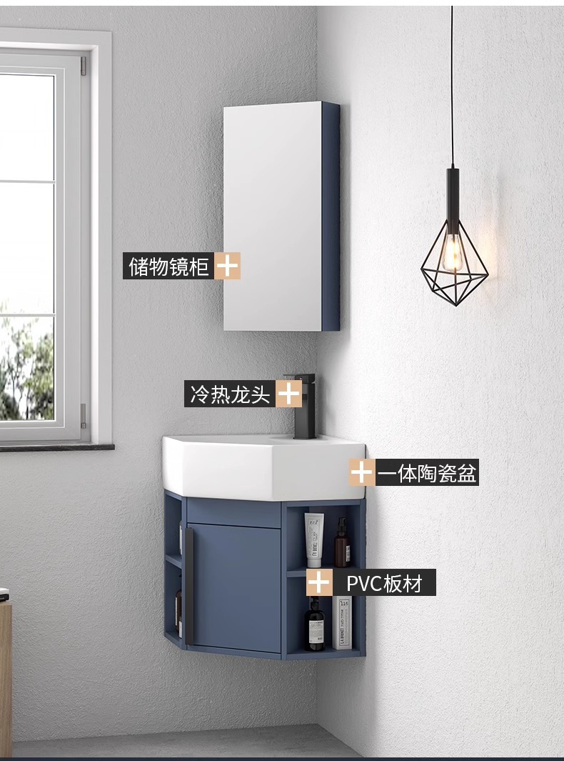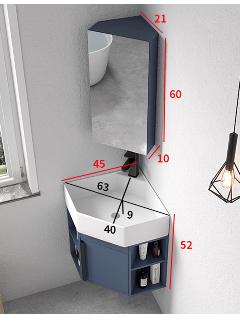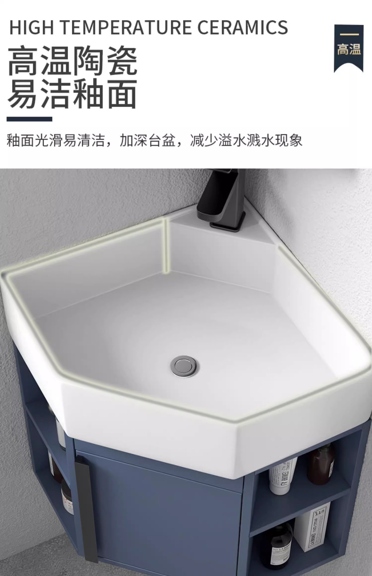 Transfronterizo pared tipo lavabo gabinete combinado esquina de baño lavabo pequeño tipo hogar lavabo baño lavabo triángulo piscina