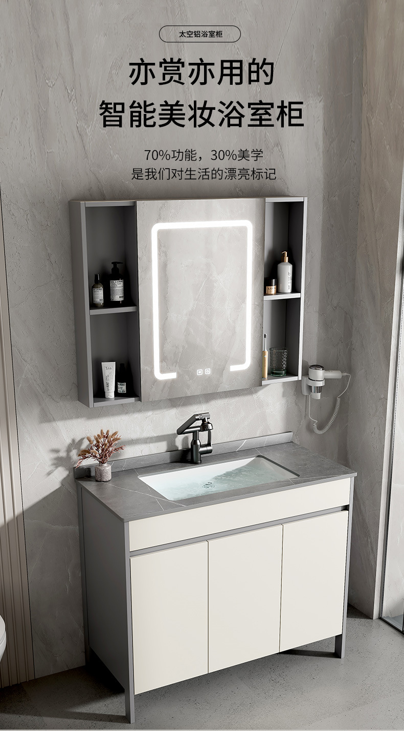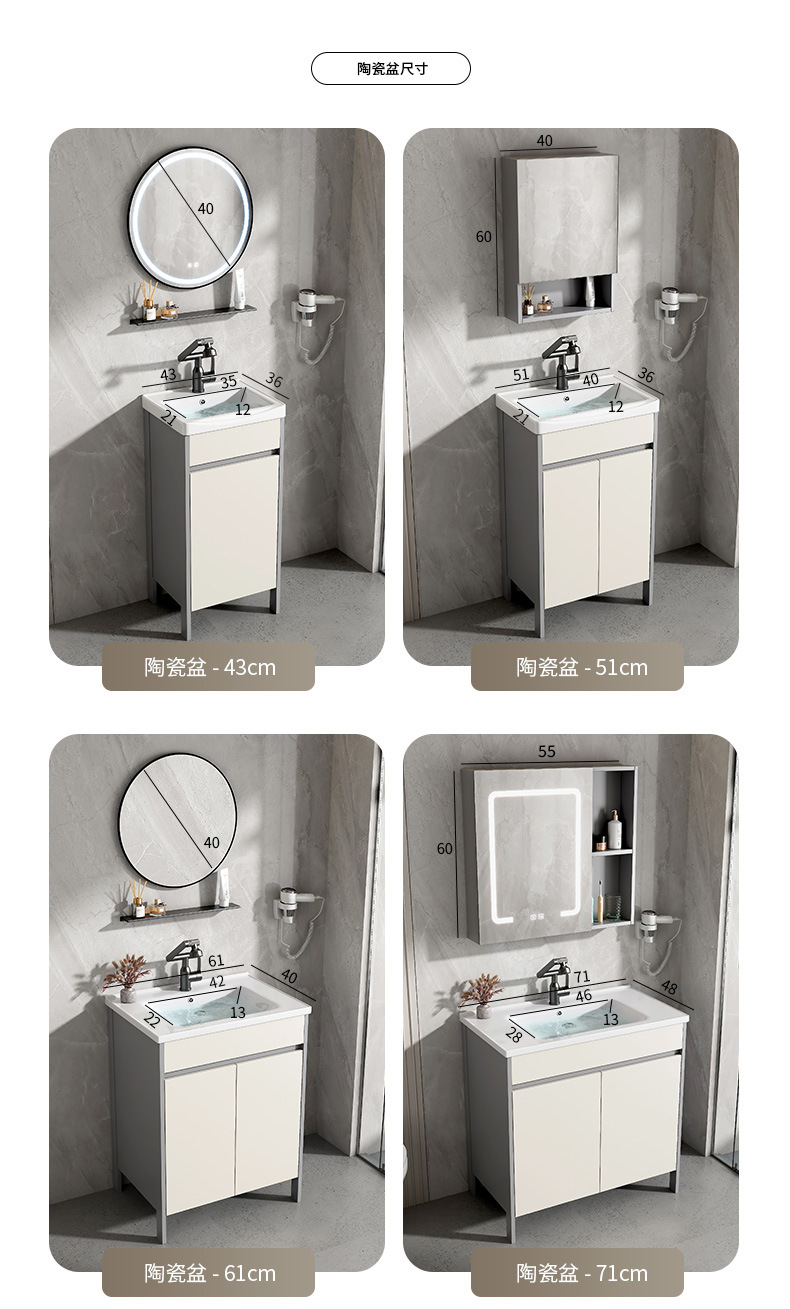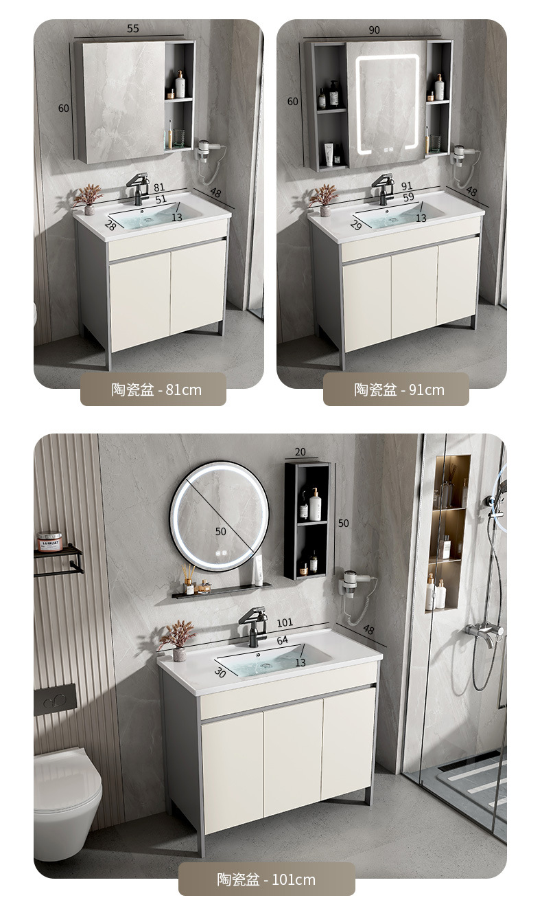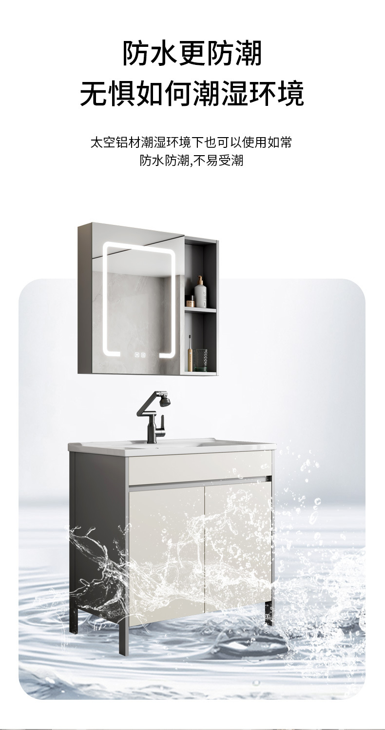 gabinete de baño de piso de aluminio espacio combinado baños cerámicos todo en uno lavabo balcón doméstico lavabo