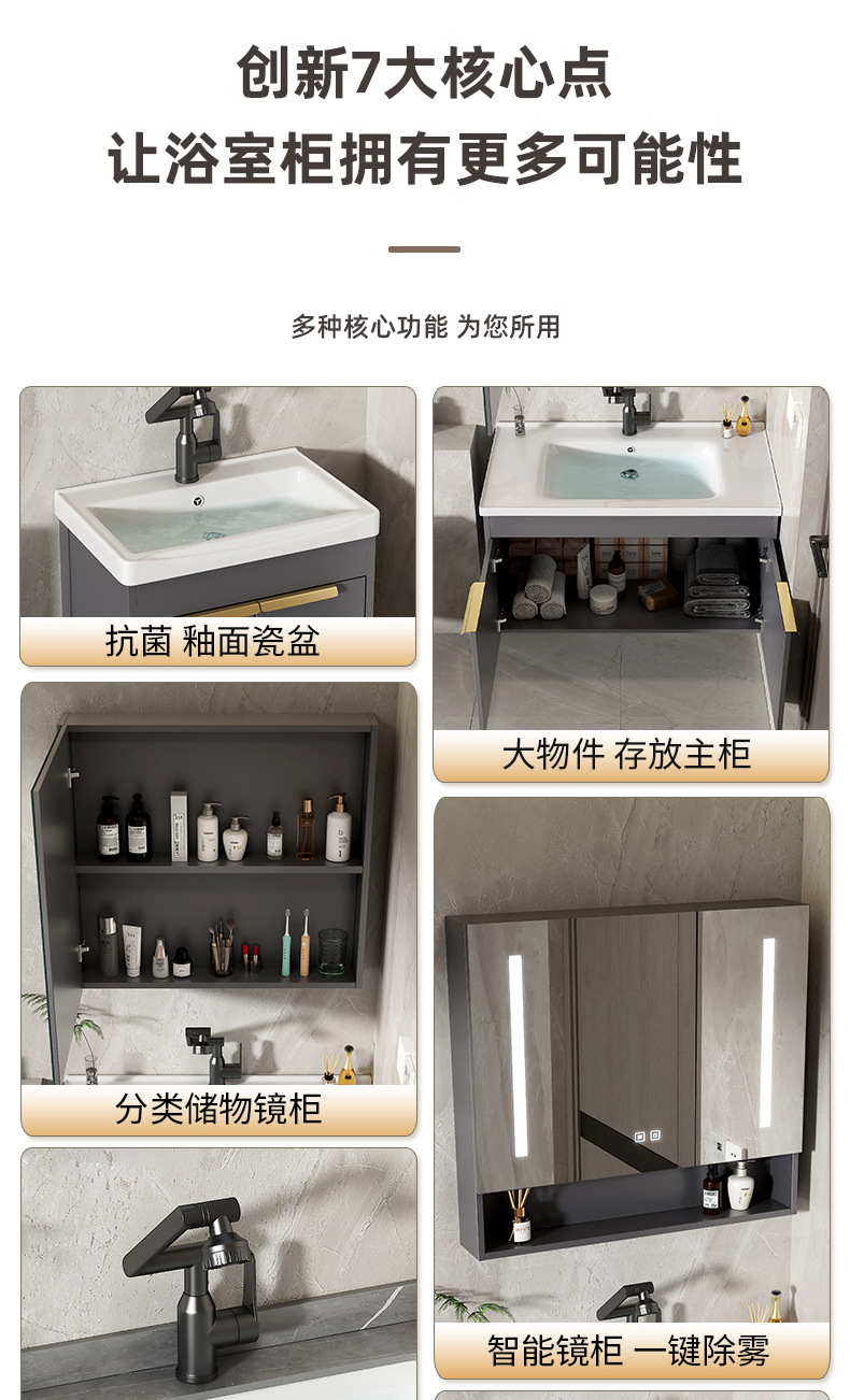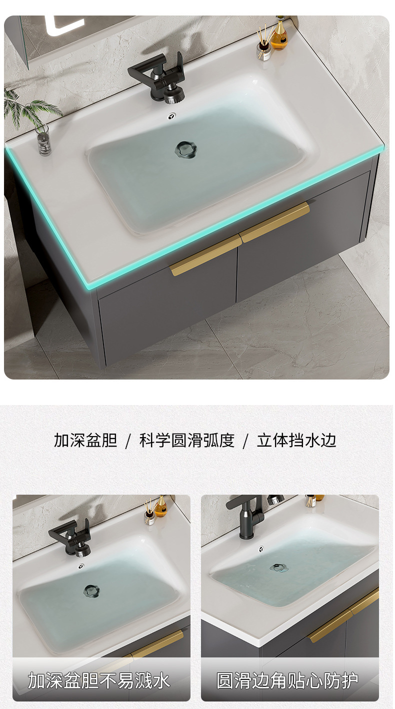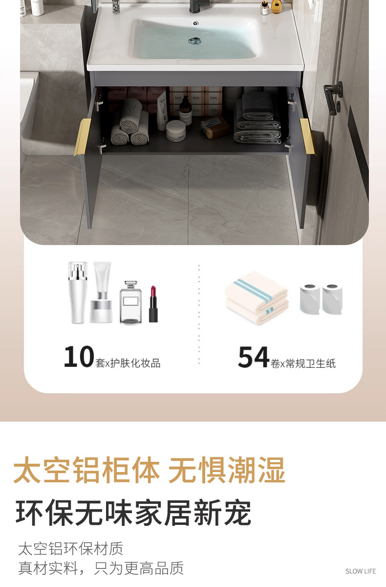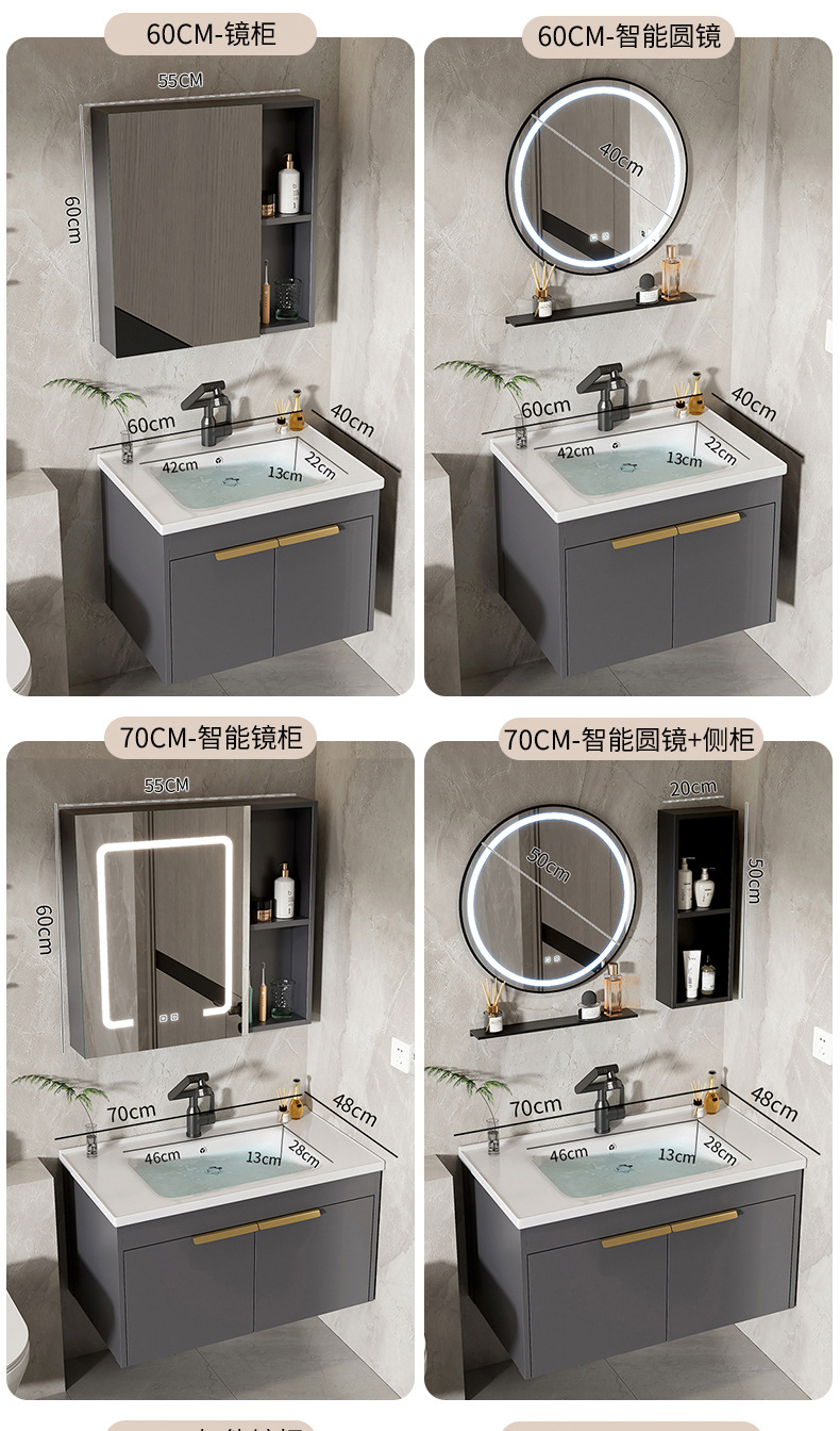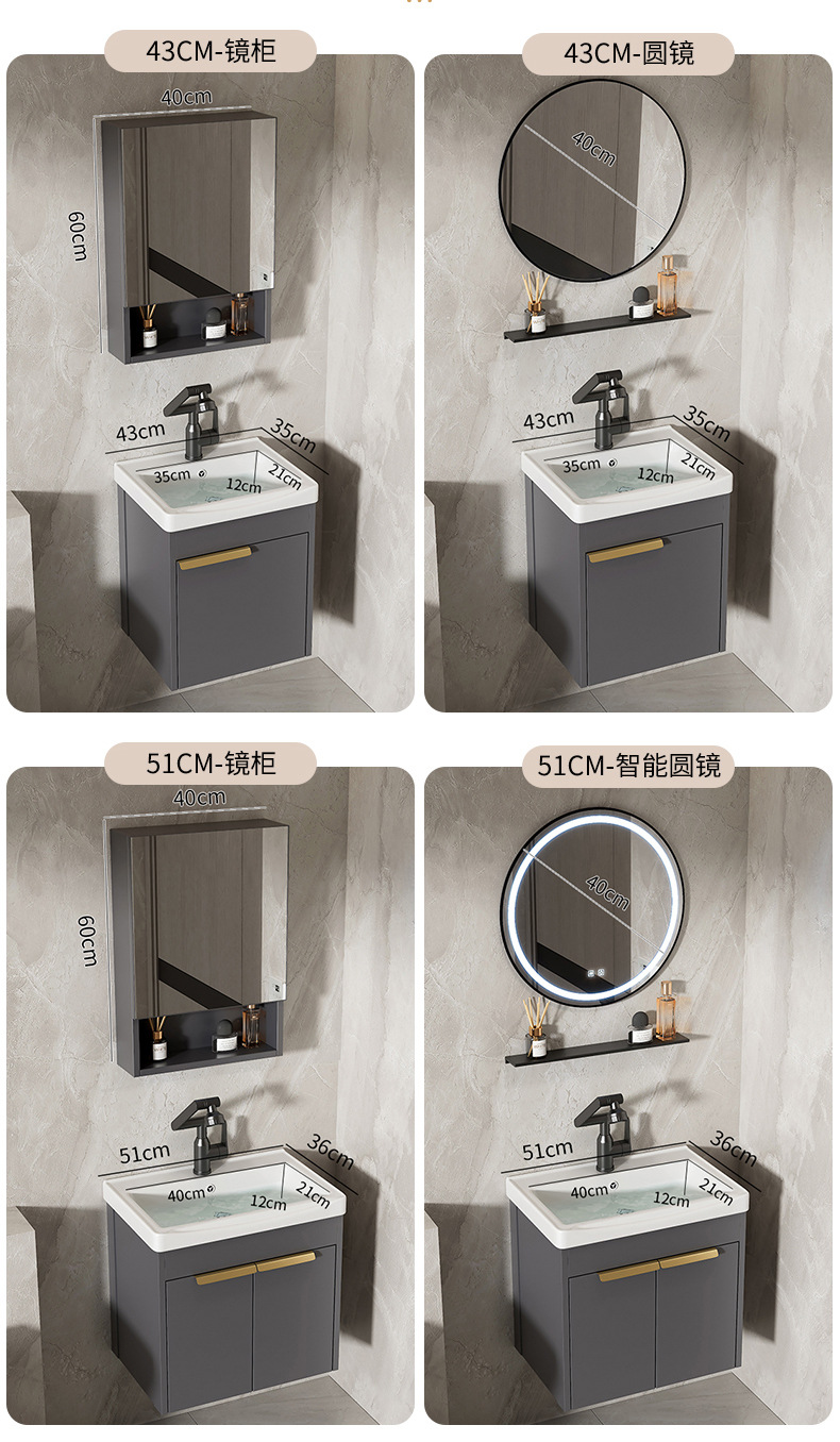 Moderno espacio simple gabinete de baño de aluminio lavabo combinado lavabo cerámico lavabo lavabo lavabo