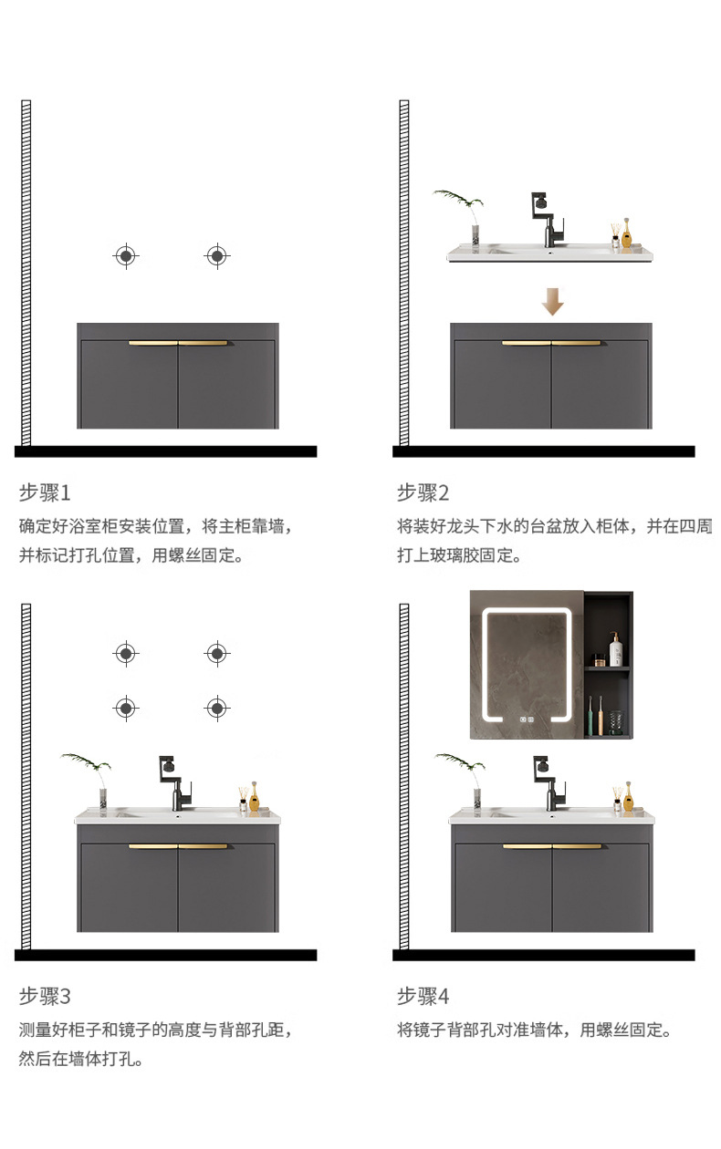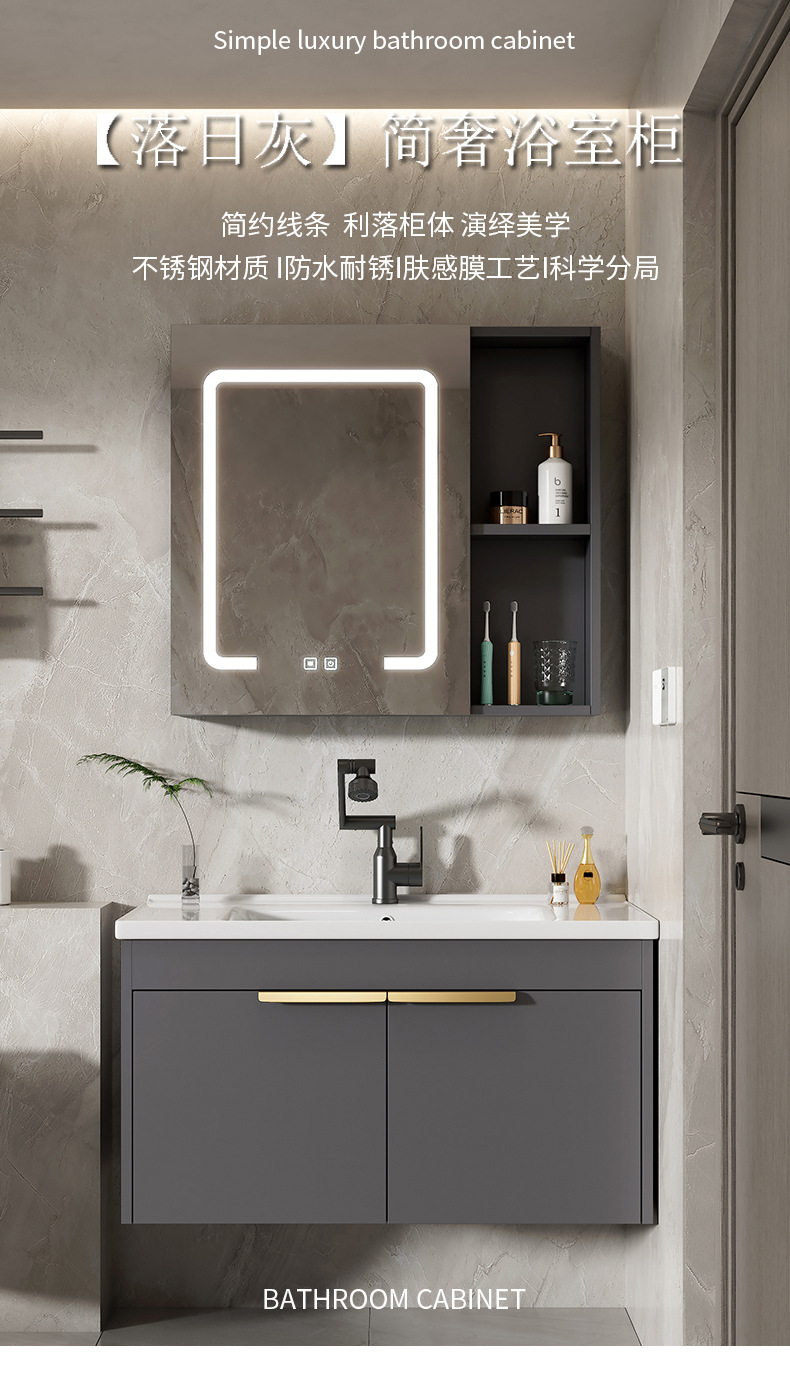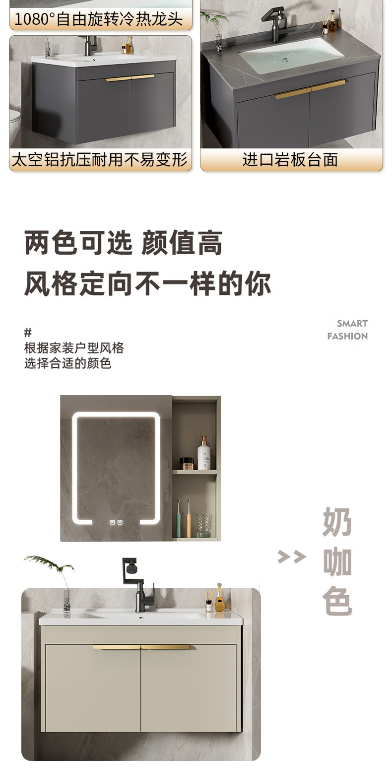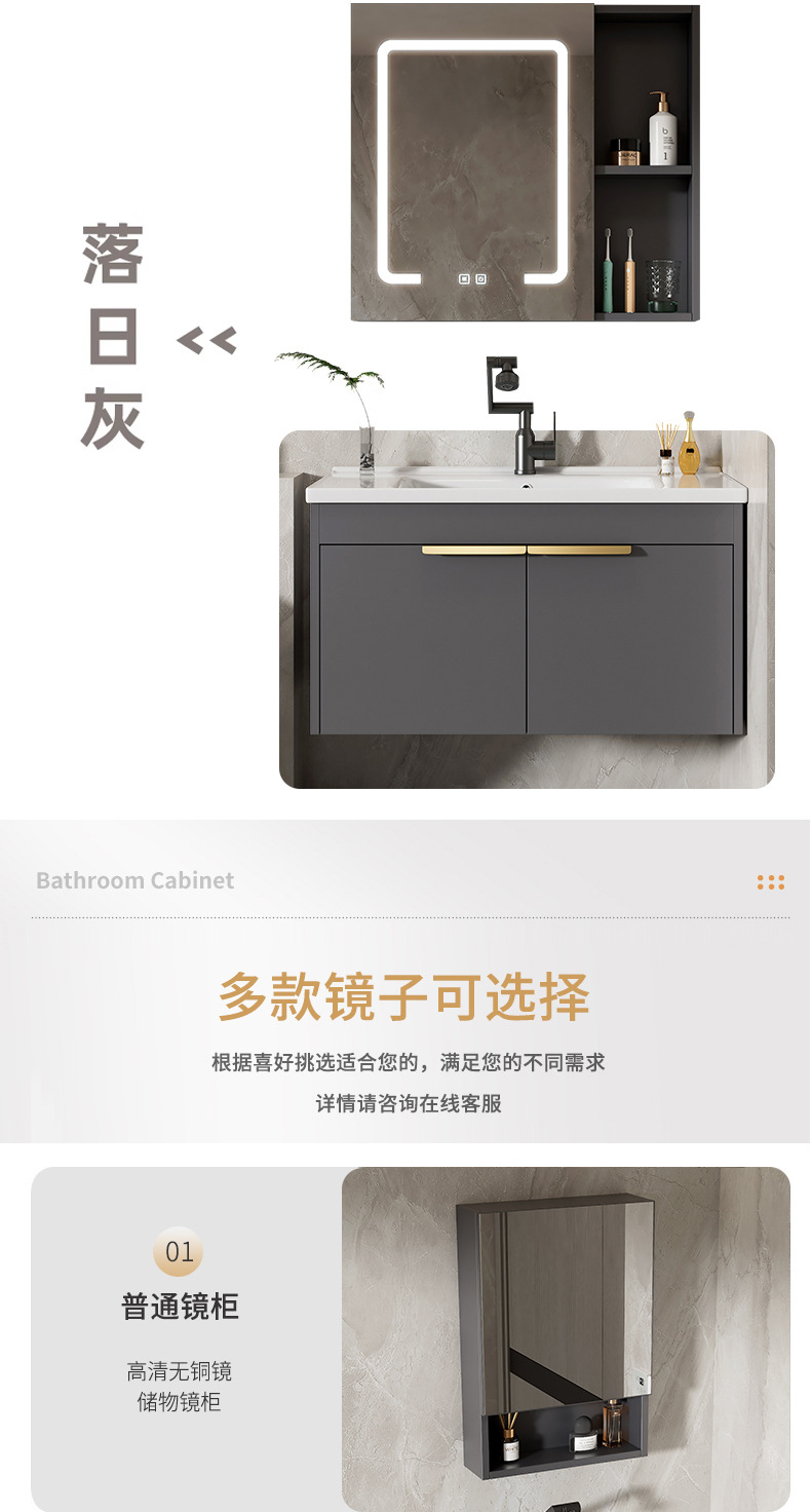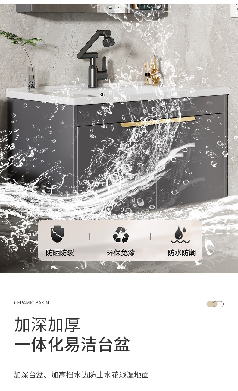 Moderno espacio simple gabinete de baño de aluminio lavabo combinado lavabo cerámico lavabo lavabo lavabo