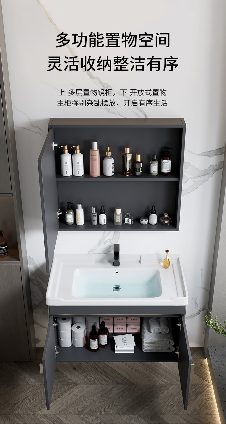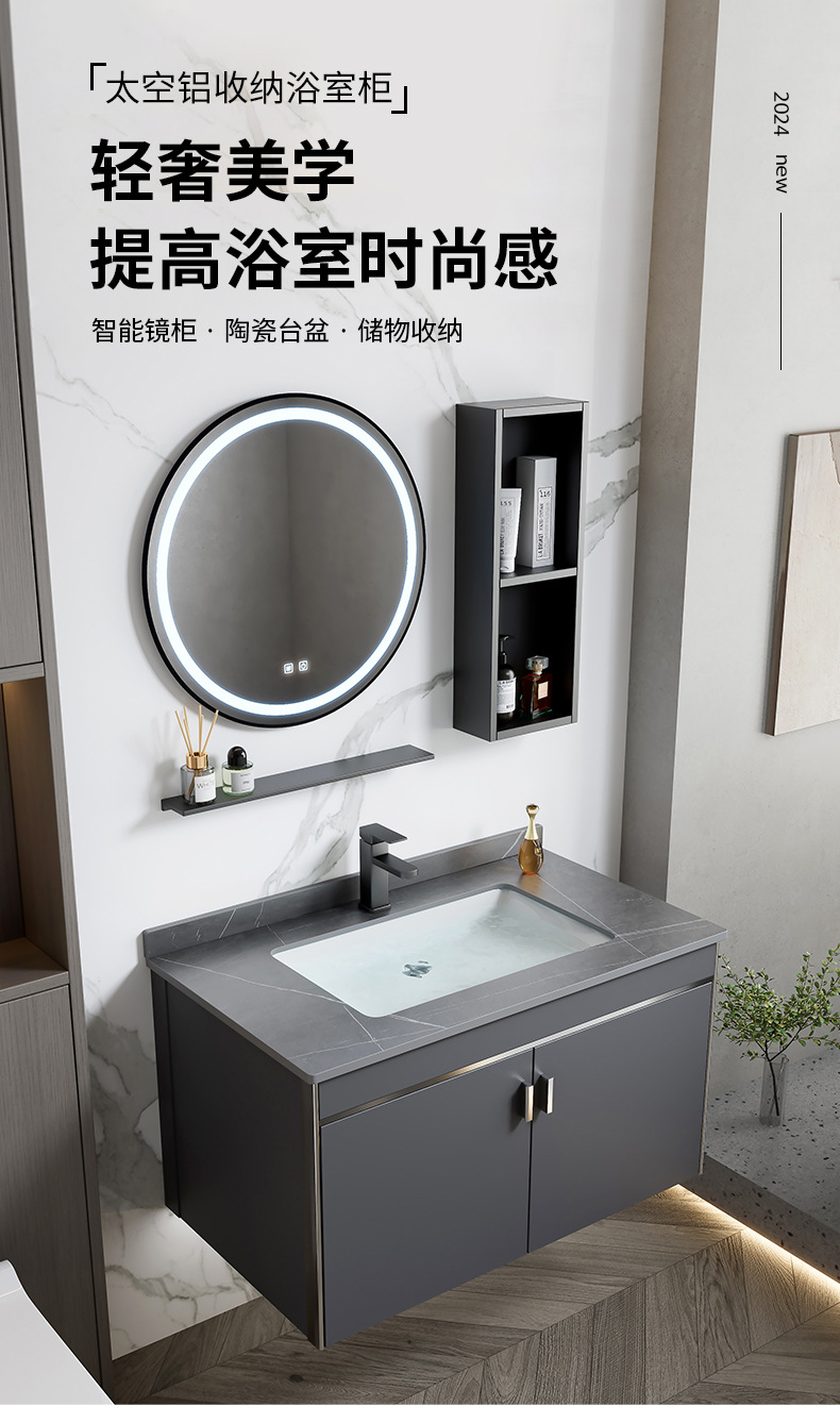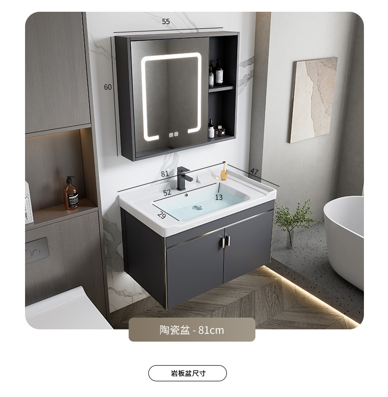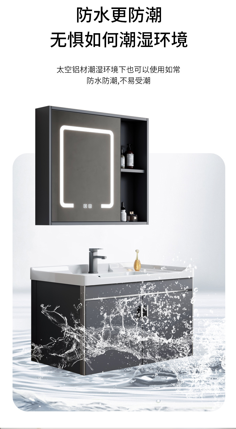 gabinete de baño de aluminio espacial simple combinación lavabo cerámica doméstica lavabo gabinete lavabo