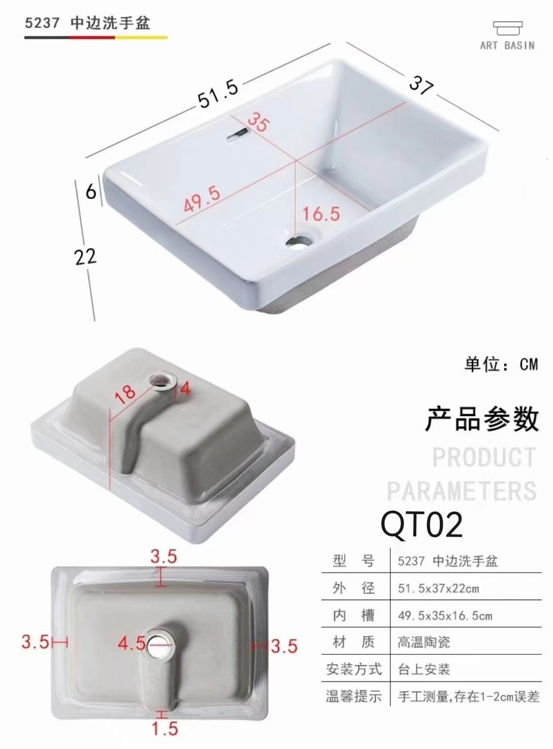 lavabo cerámico semicrustado lavabo lavabo de baño hotel lavabo rectangular lavabo balcón lavabo