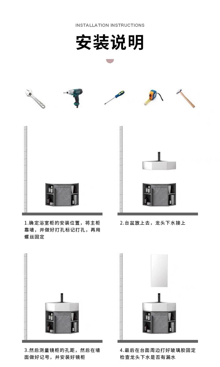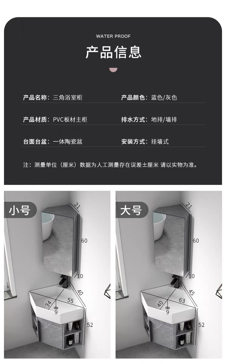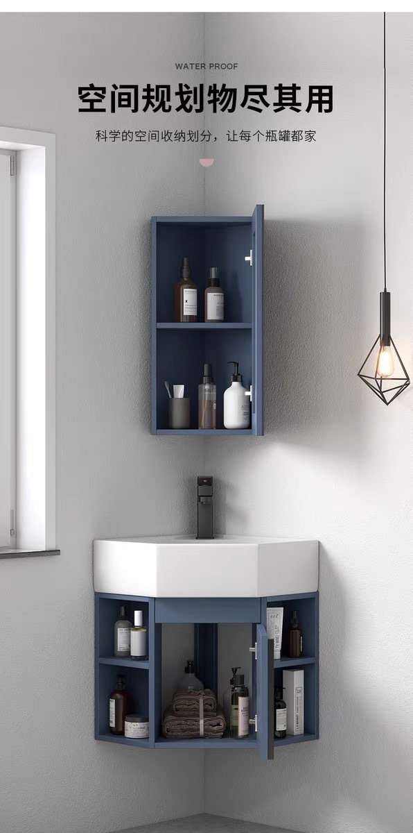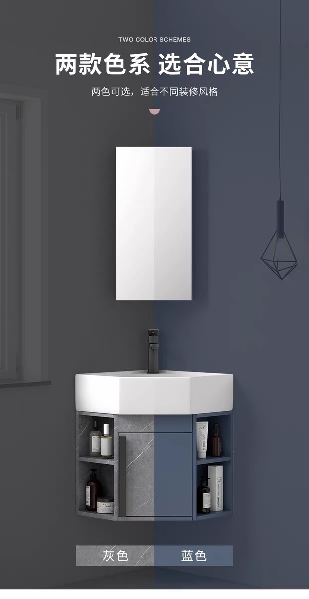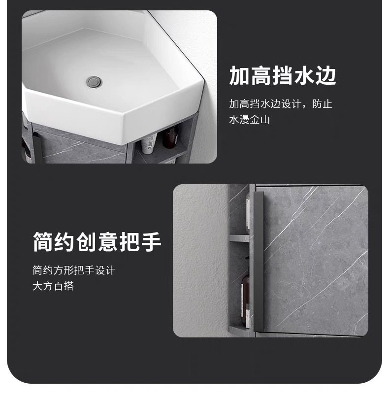 gabinete de lavabo triangular combinado tipo pequeño gabinete de baño de PVC esquina lavabo de pared esquina lavabo