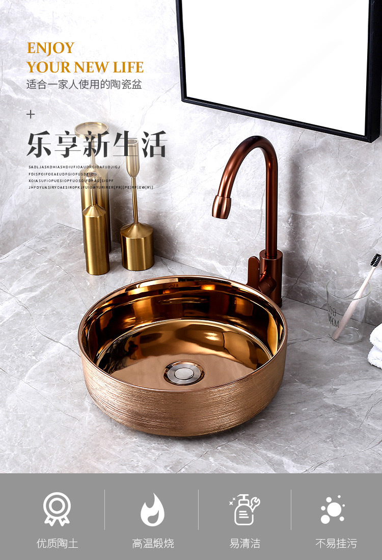 Galvanoplastia mesa de cerámica lavabo Hotel pequeño tamaño redondo transfronterizo lavabo cuenca única