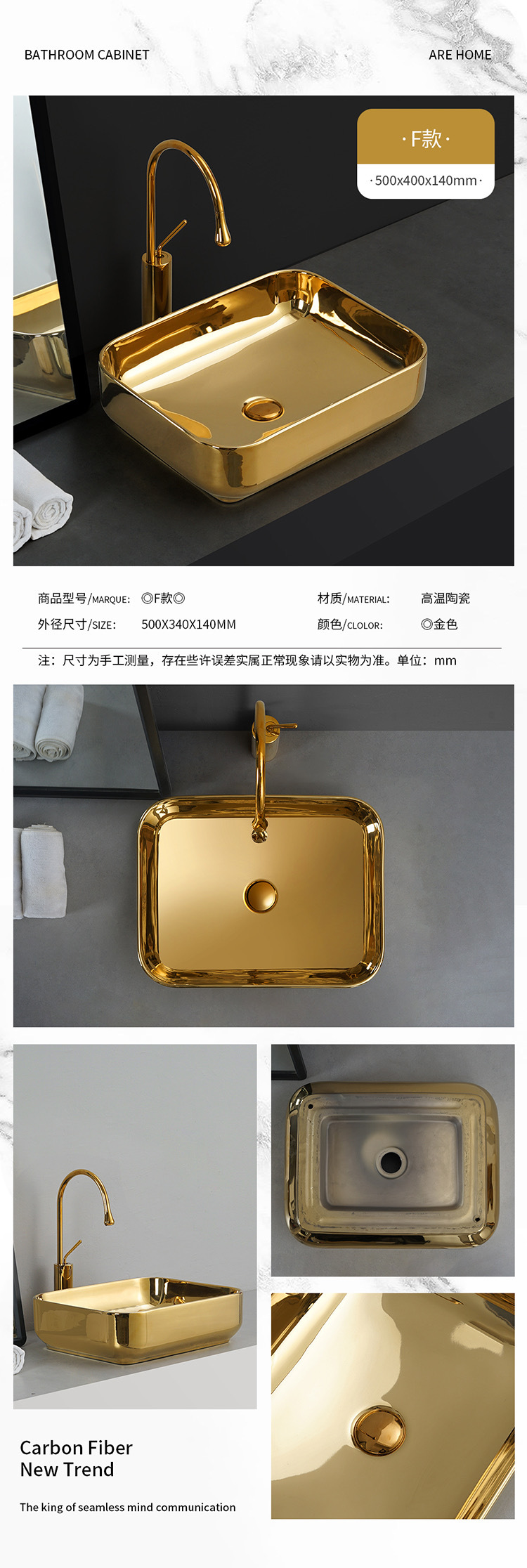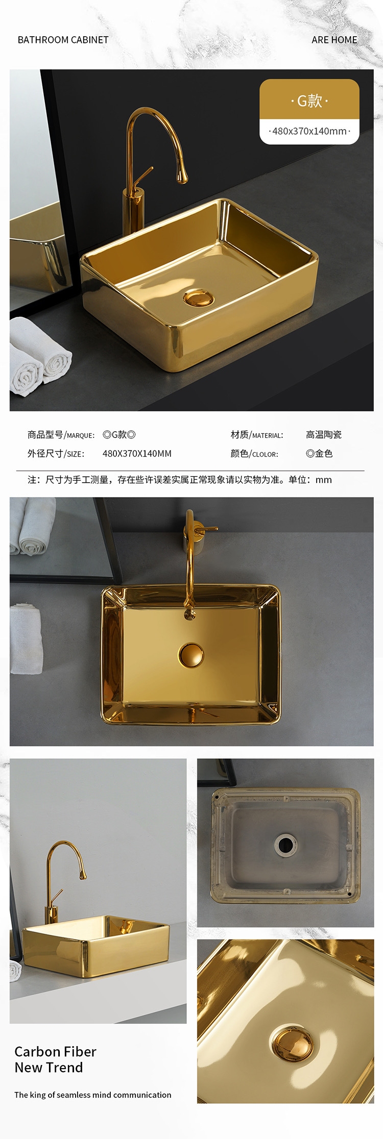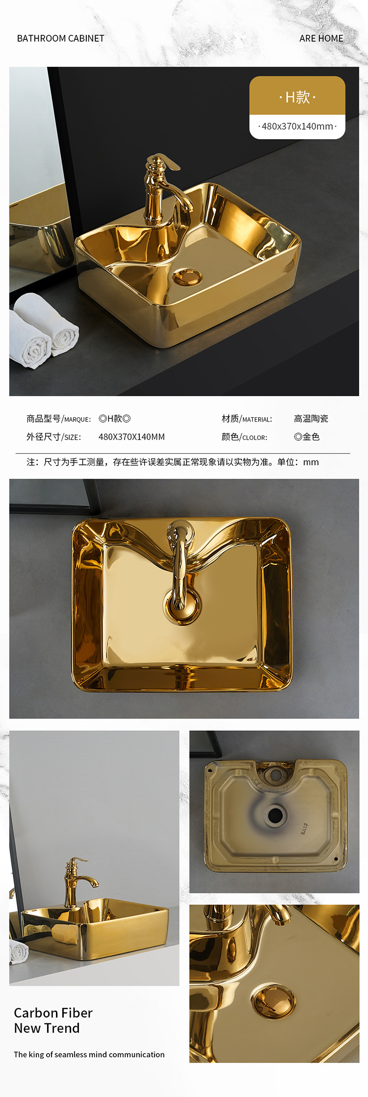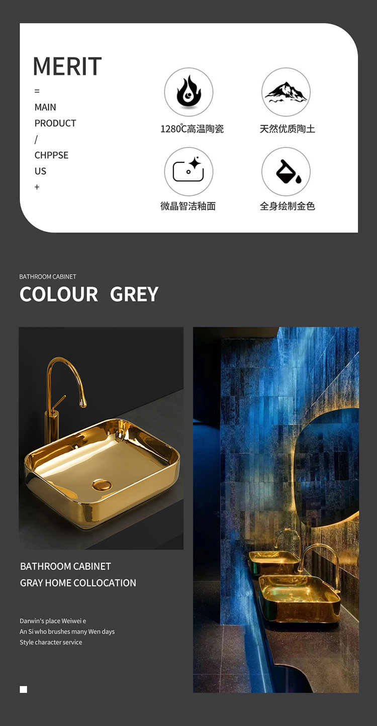 Transfronterizo de galvanoplastia lavabo Mostrador de baño de ingeniería Hotel KTV pequeño balcón lavabo de oro