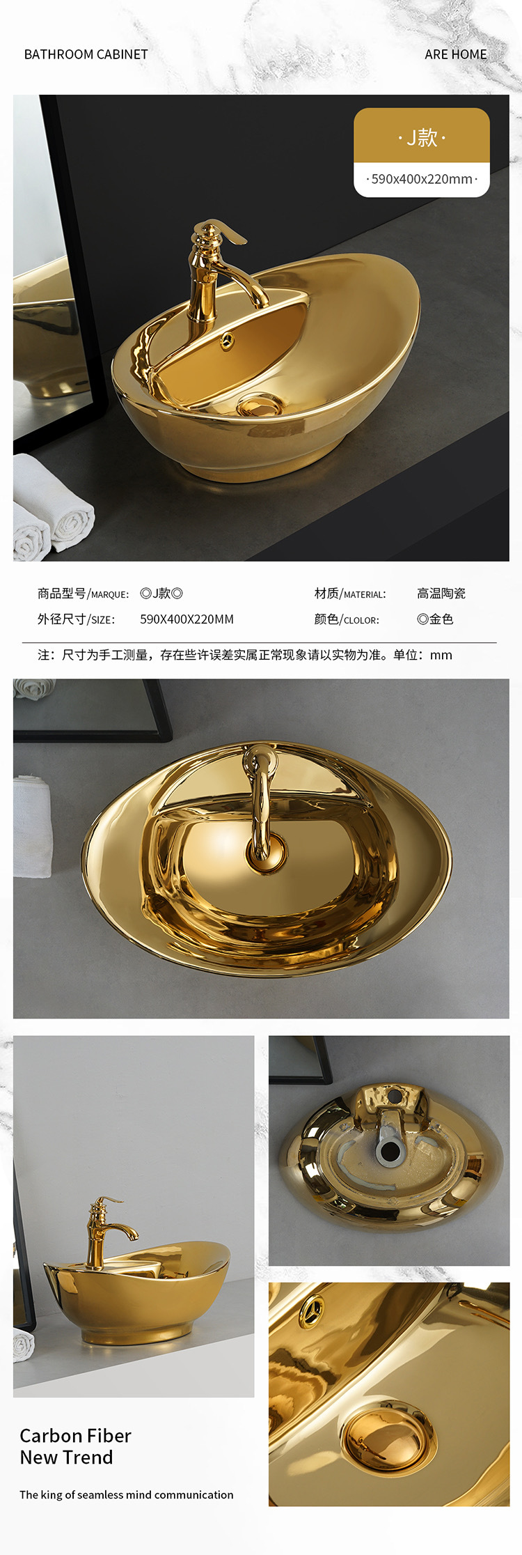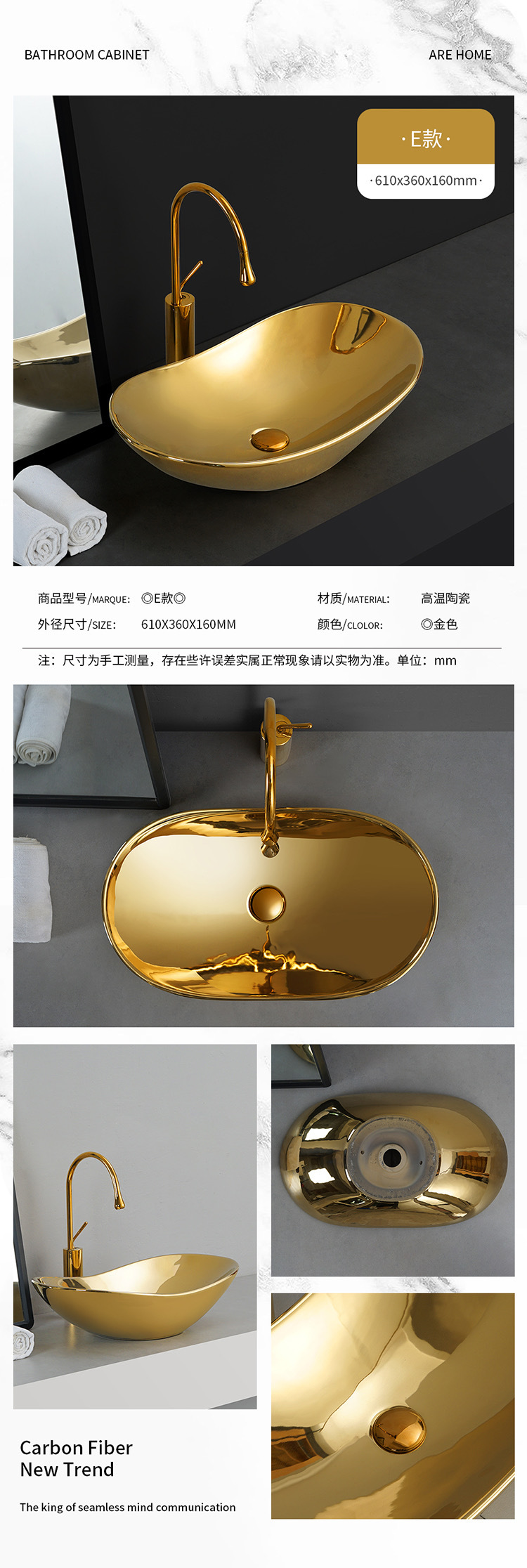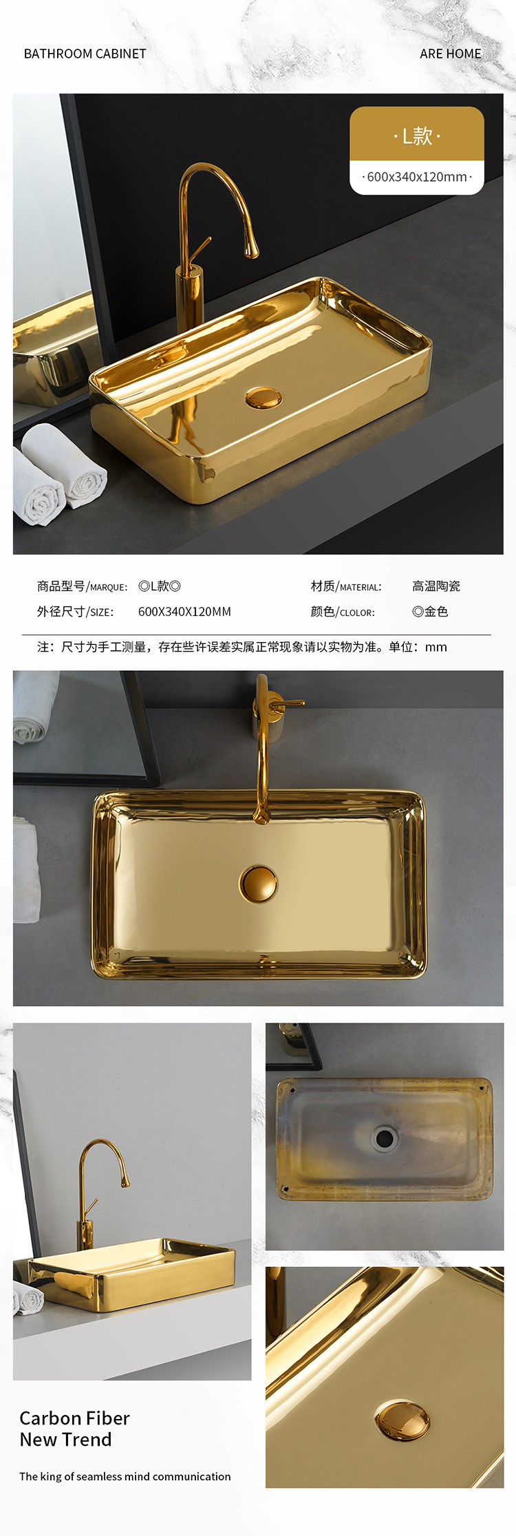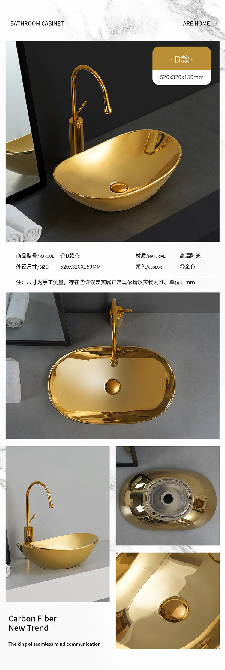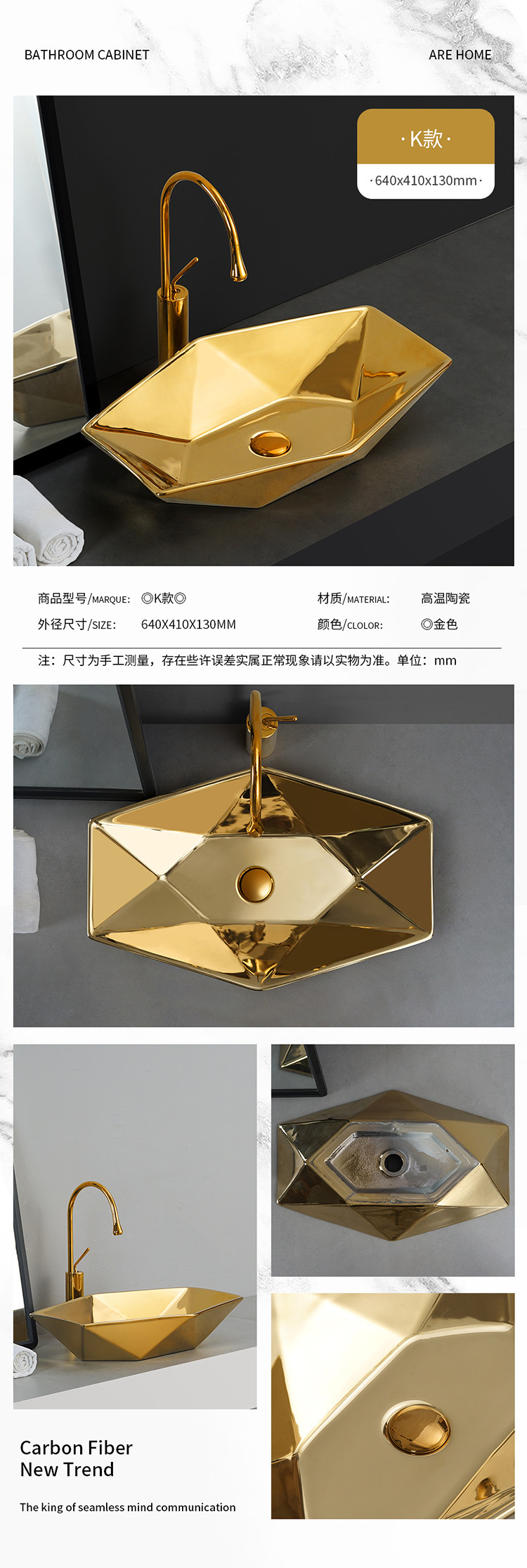 Transfronterizo de galvanoplastia lavabo Mostrador de baño de ingeniería Hotel KTV pequeño balcón lavabo de oro