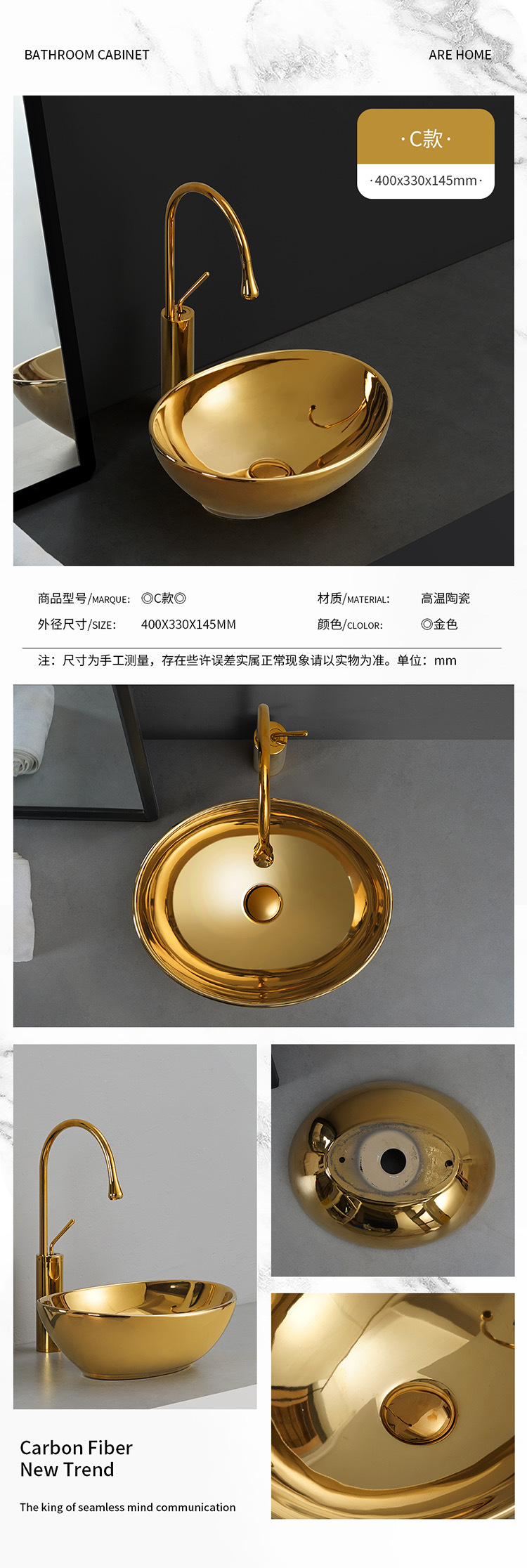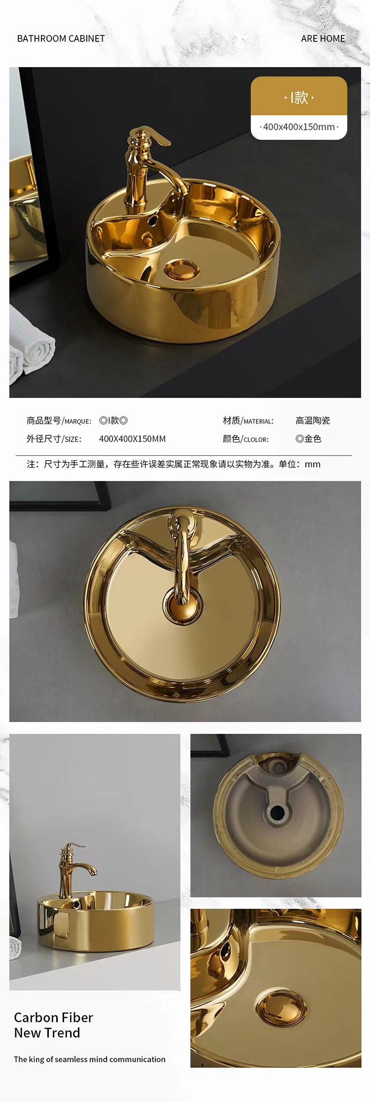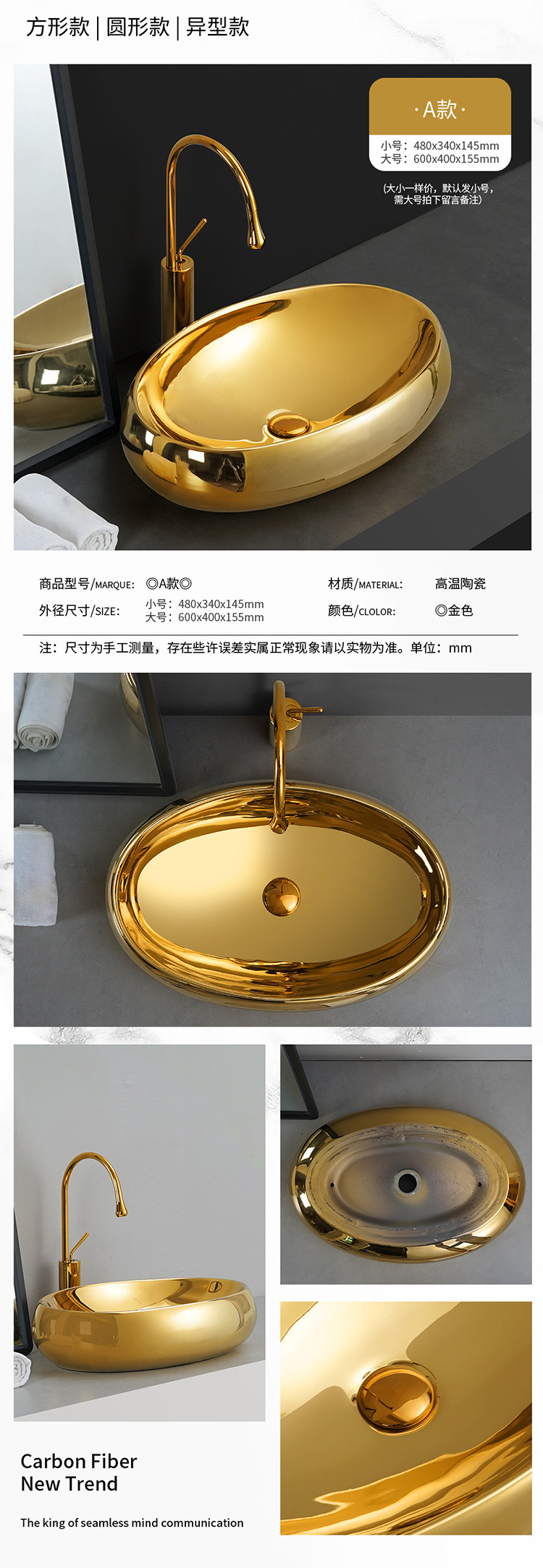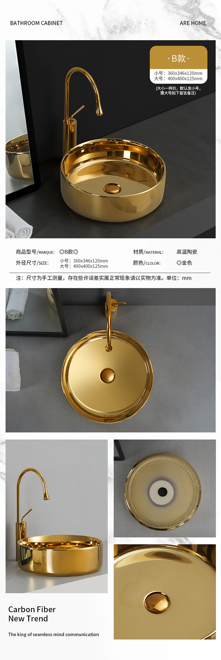 Transfronterizo de galvanoplastia lavabo Mostrador de baño de ingeniería Hotel KTV pequeño balcón lavabo de oro