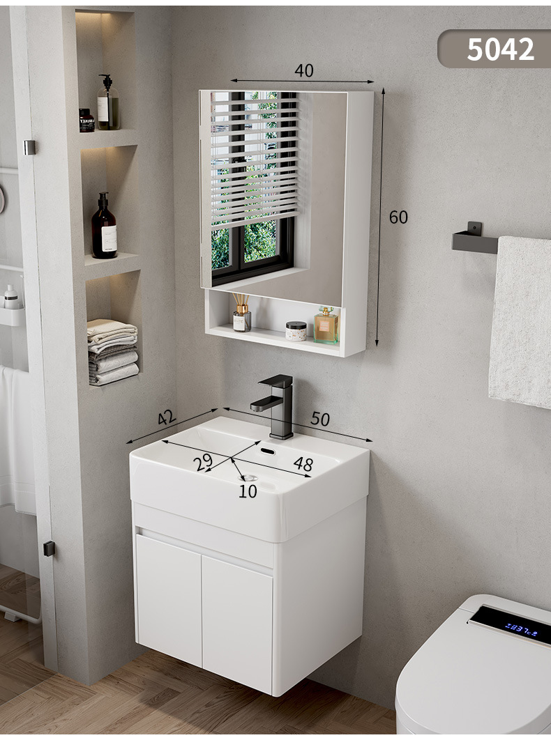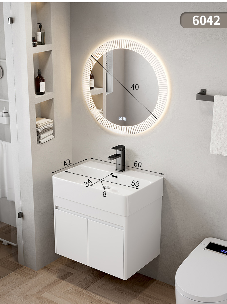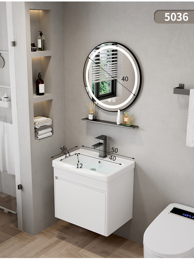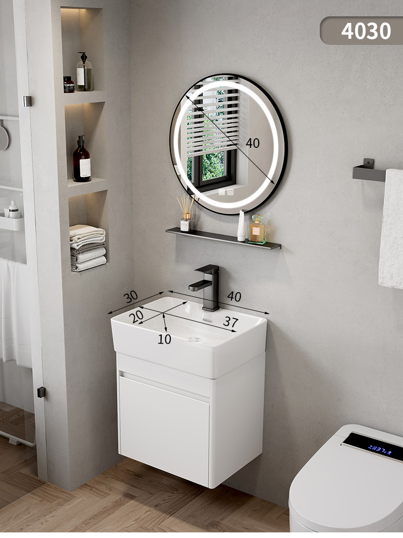 Hotel cuarto de baño lavabo gabinete combinación pequeño apartamento mueble de baño integrado de cerámica montado en la pared lavabo mesa de lavado