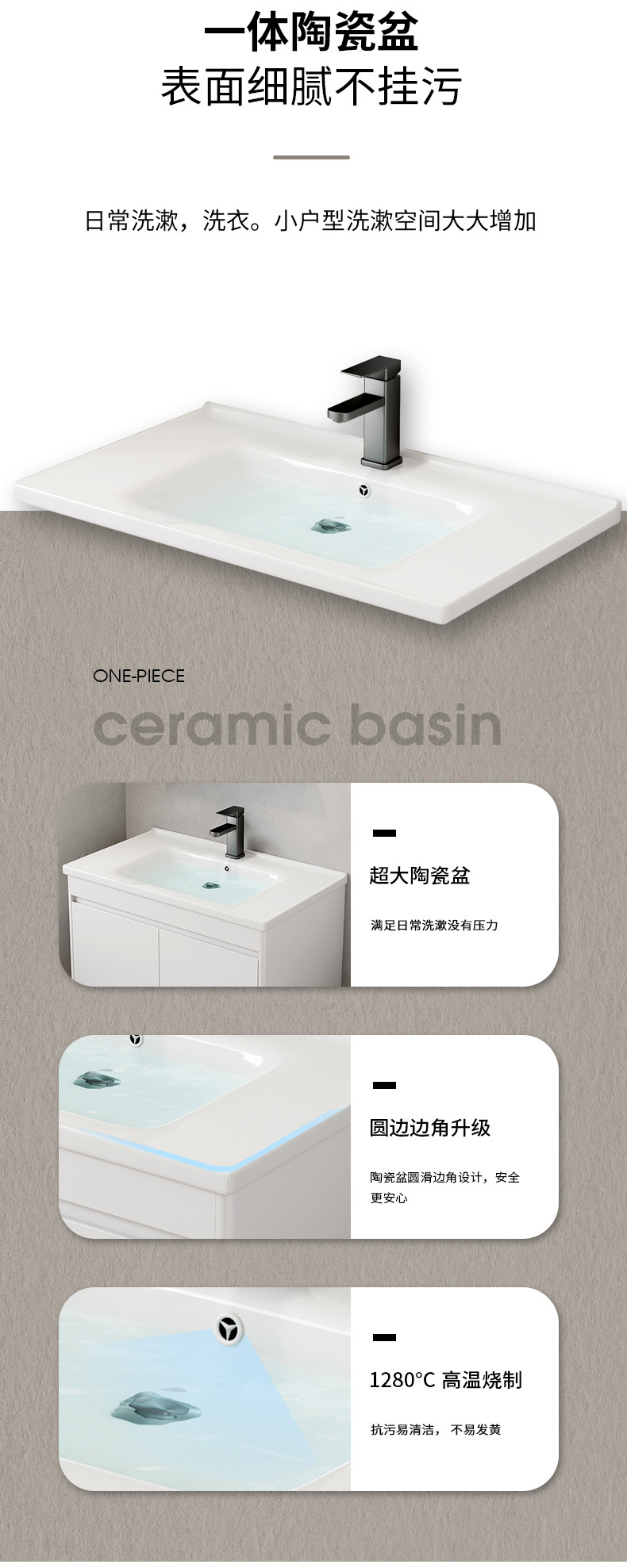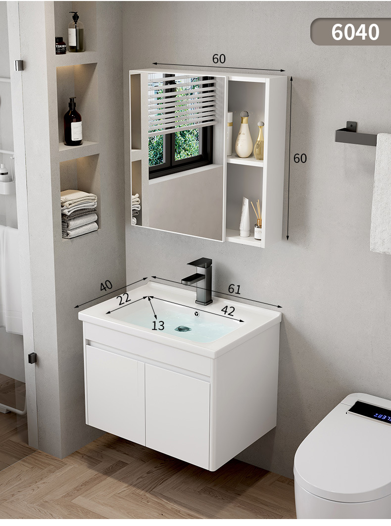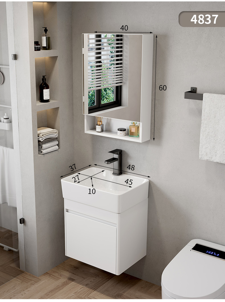 Hotel cuarto de baño lavabo gabinete combinación pequeño apartamento mueble de baño integrado de cerámica montado en la pared lavabo mesa de lavado
