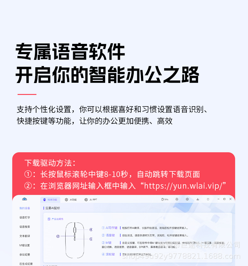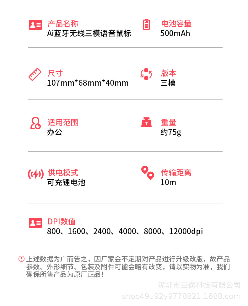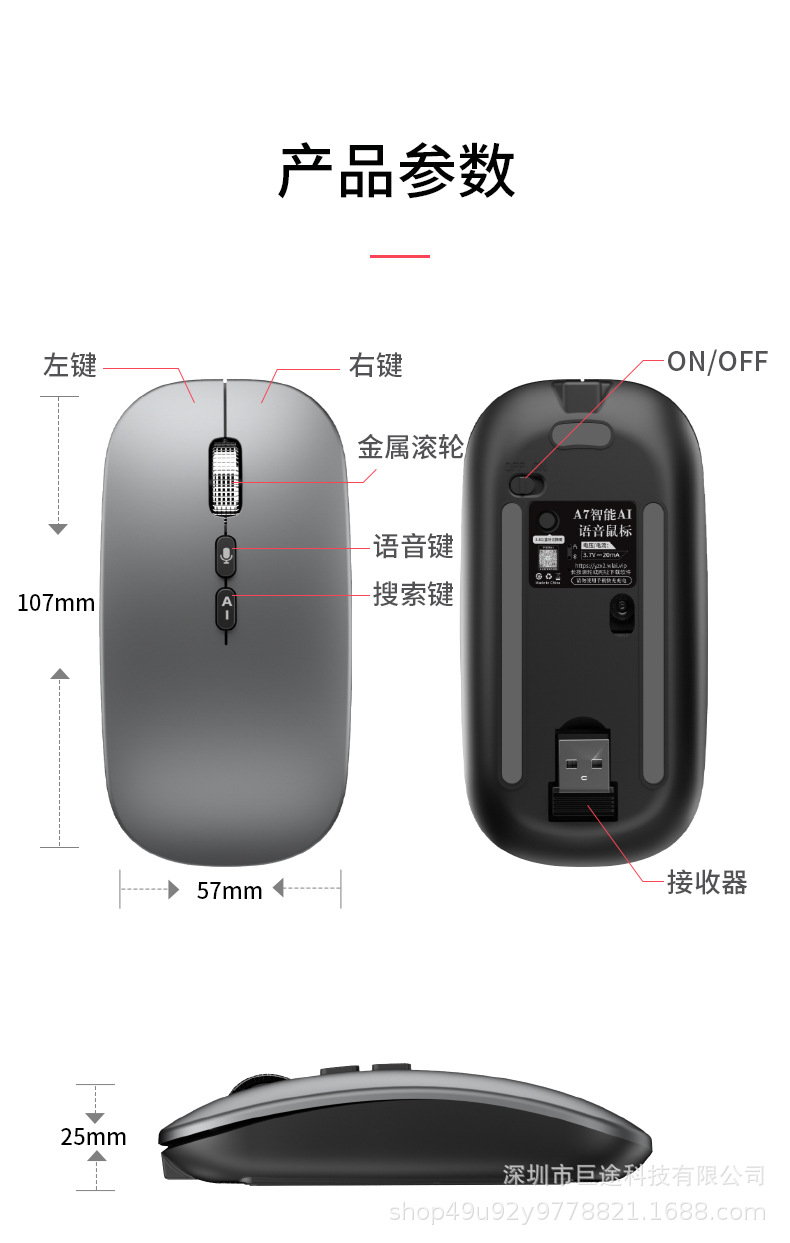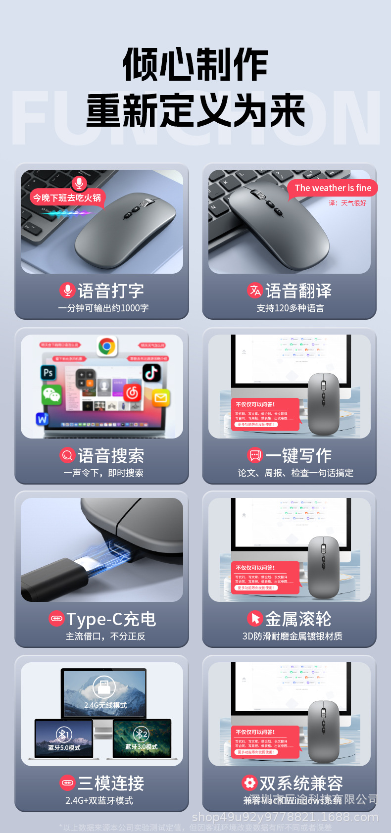 Fábrica directa Ai voz escritura AI traductor computadora ratón Bluetooth inalámbrico deepseek