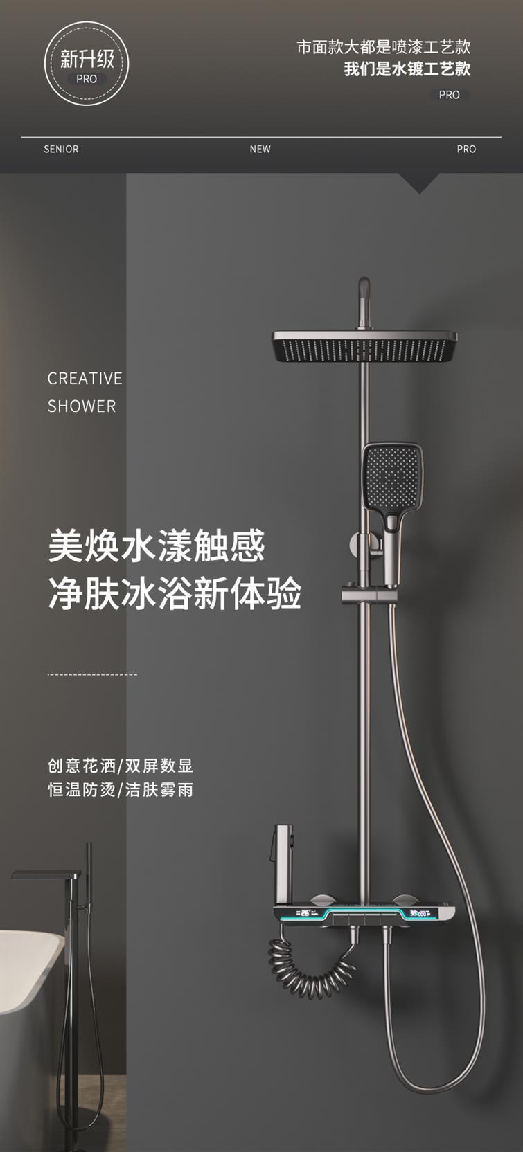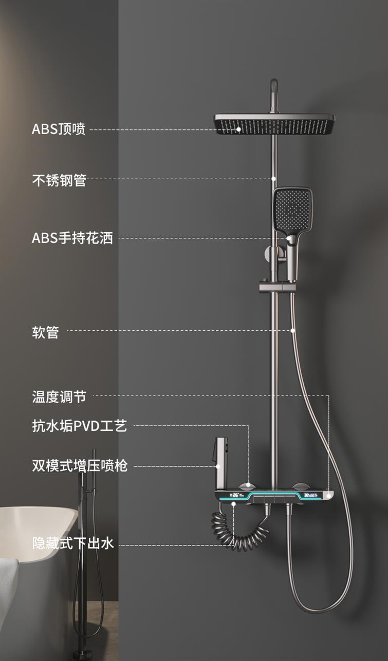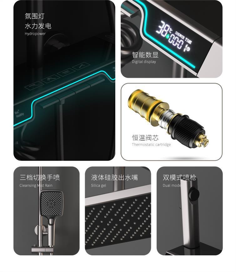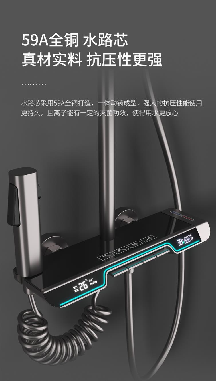 SpaceShip faro pistola de cobre blanco gris temperatura constante pantalla digital sobrealimentado ducha traje