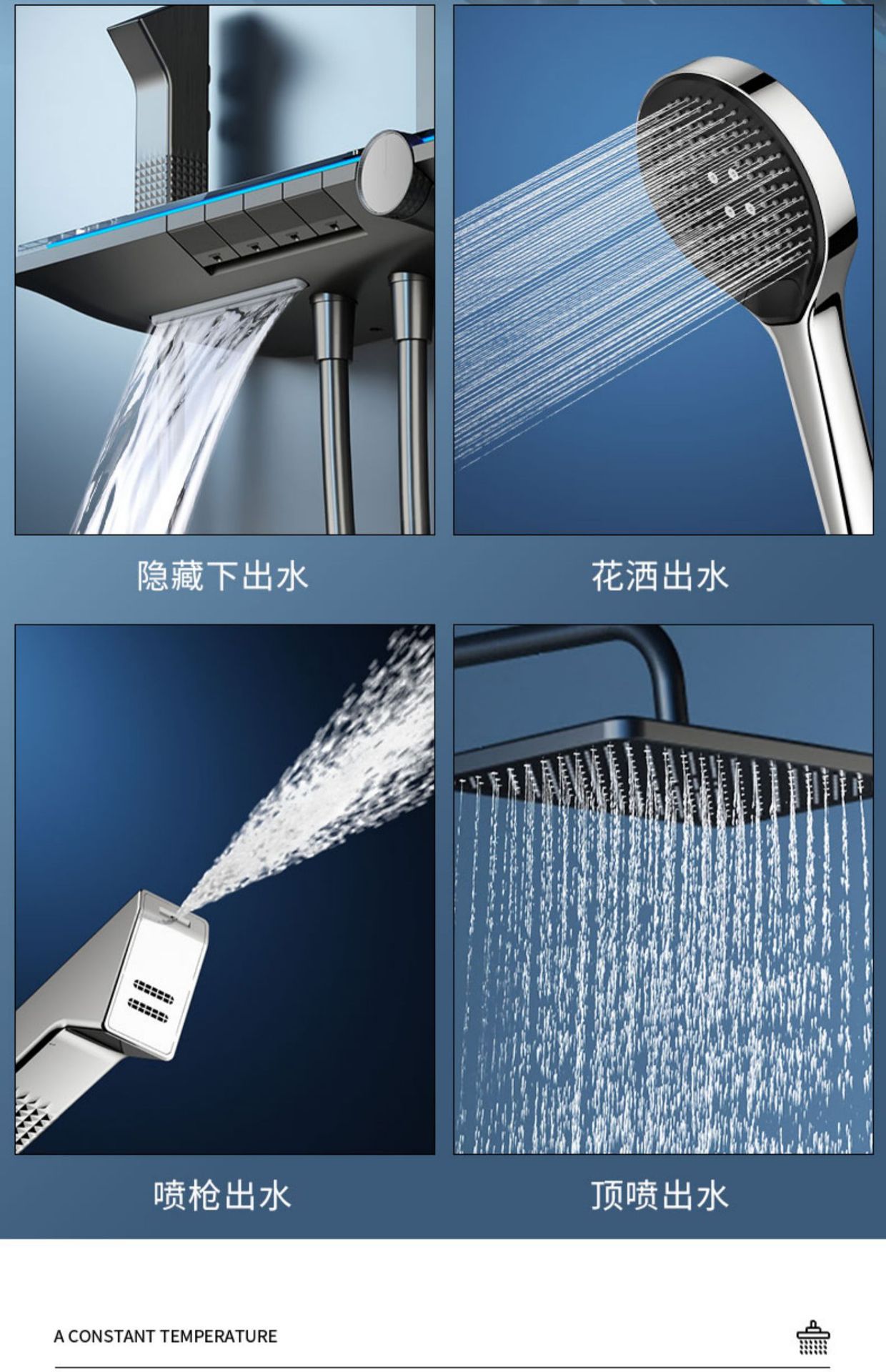 Chapado en agua trefilado pistola gris cobre faro piano ducha traje hogar inteligente temperatura constante pantalla digital ducha