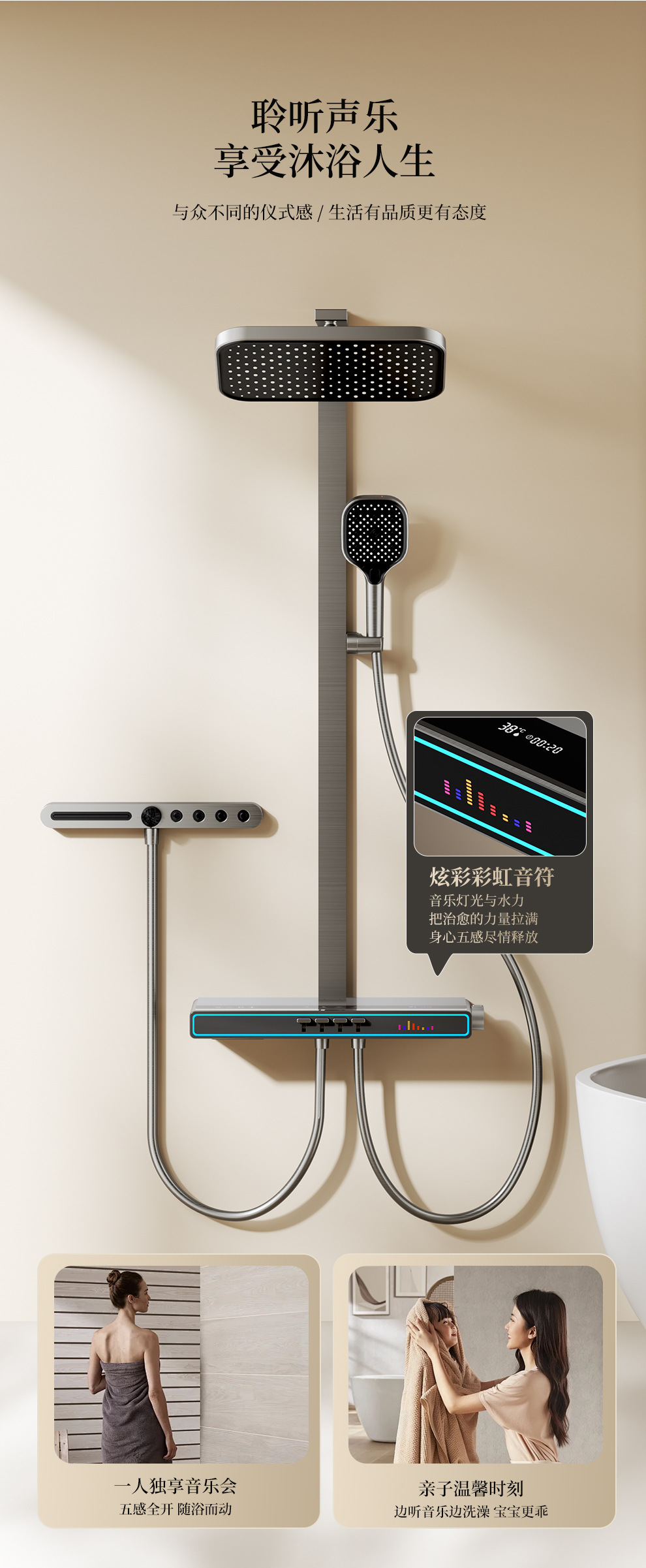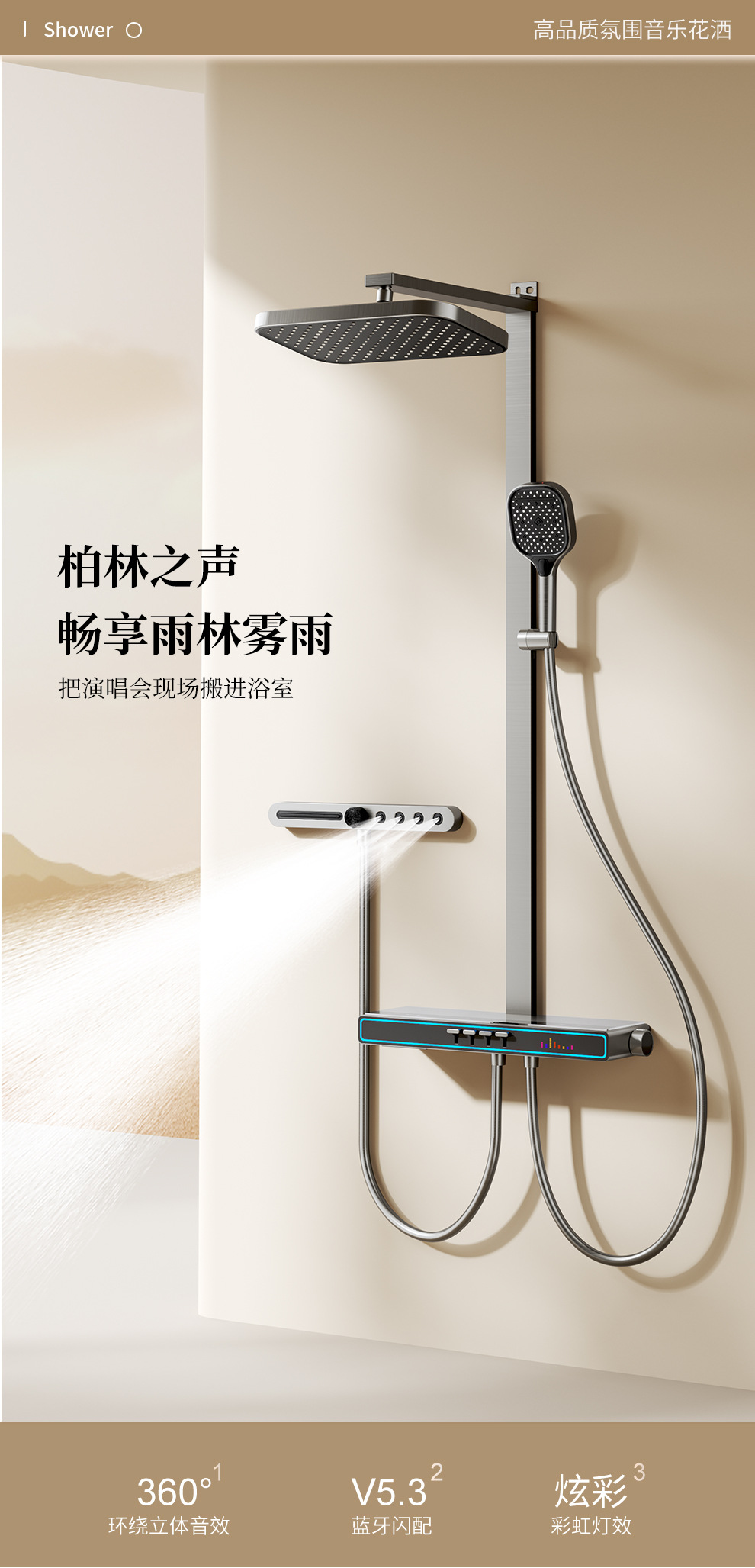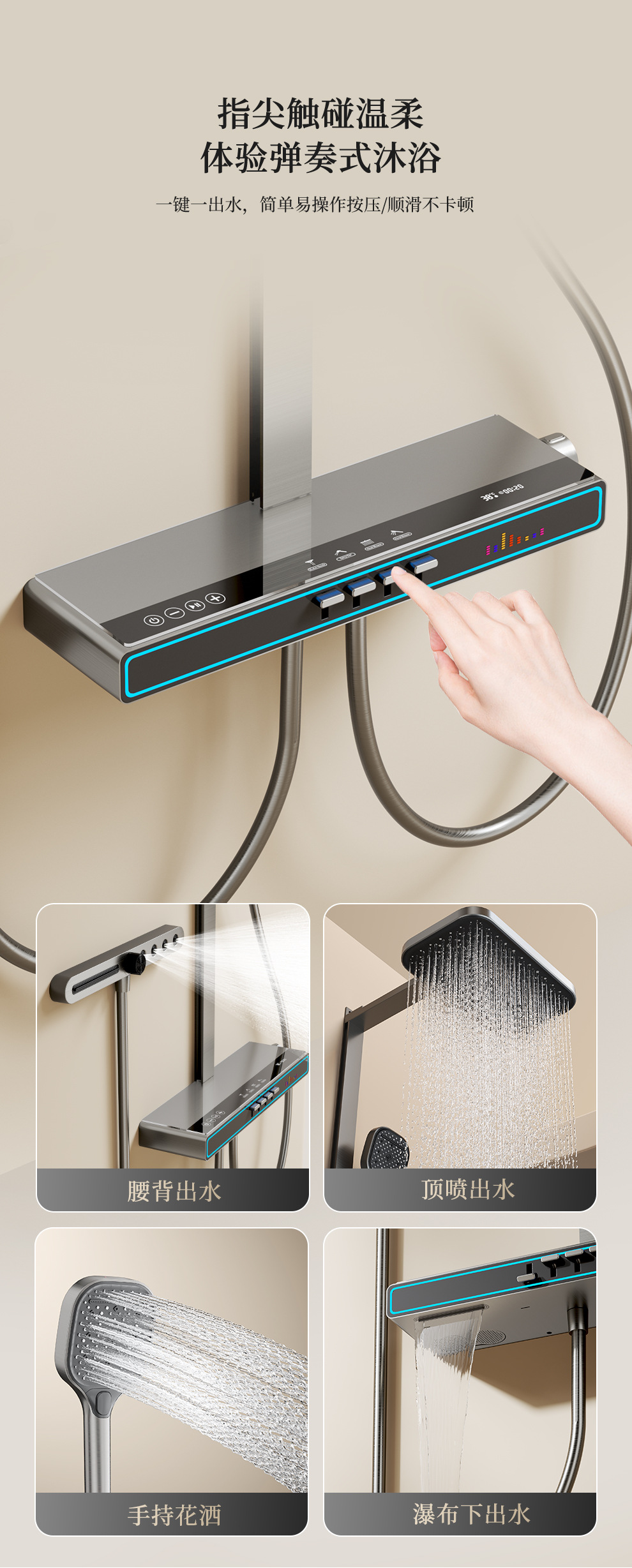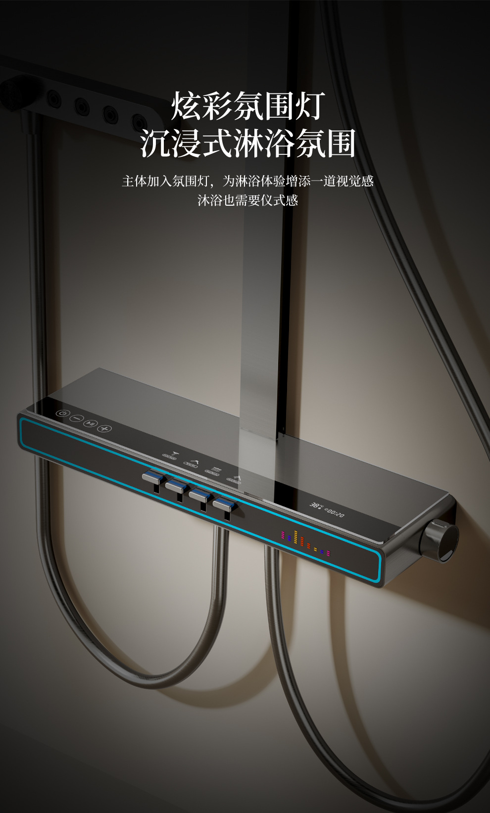 Baños de cobre todo el conjunto de ducha de música luz de atmósfera tecla de piano doméstica temperatura constante inteligente ducha de ducha digital