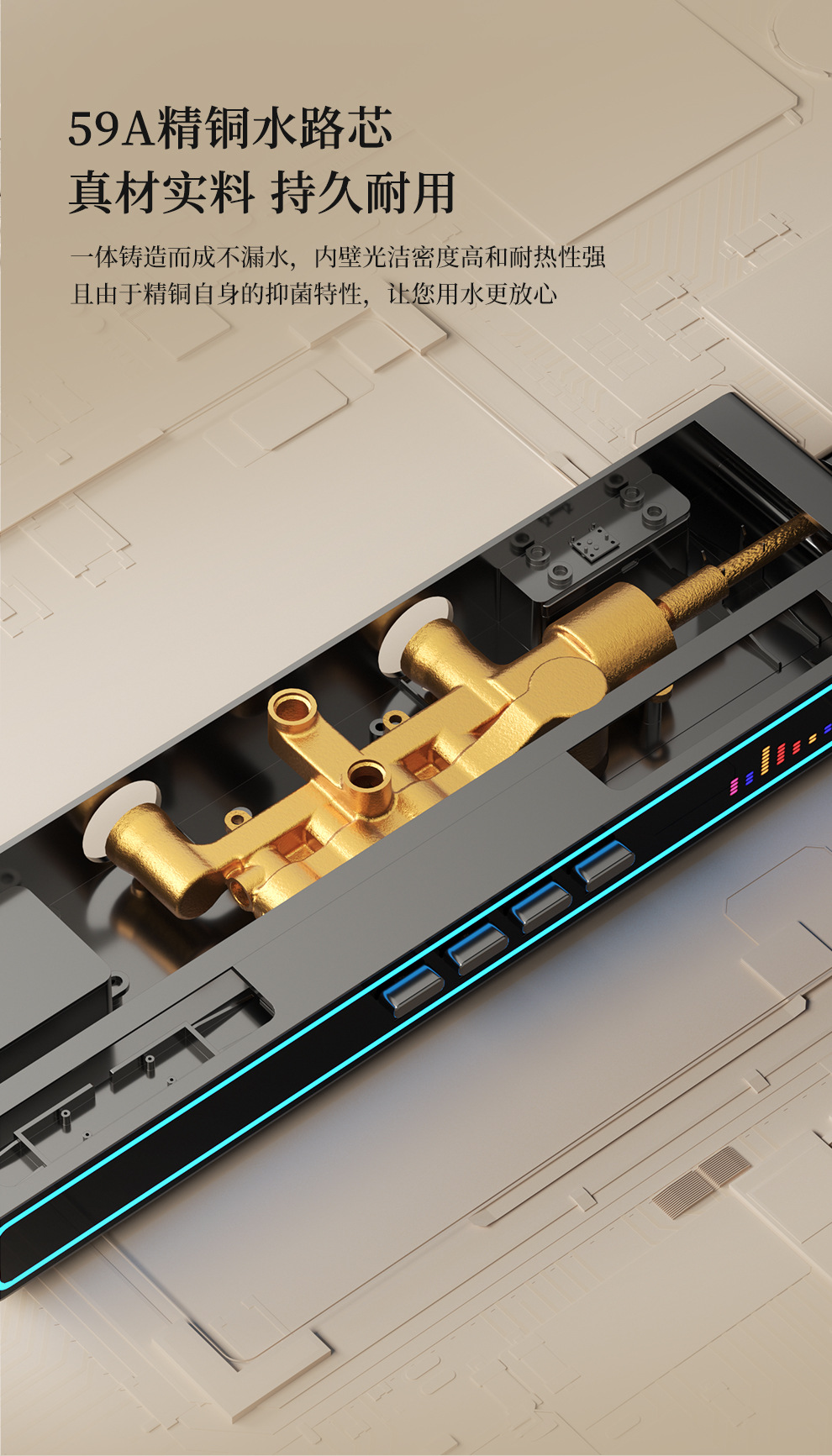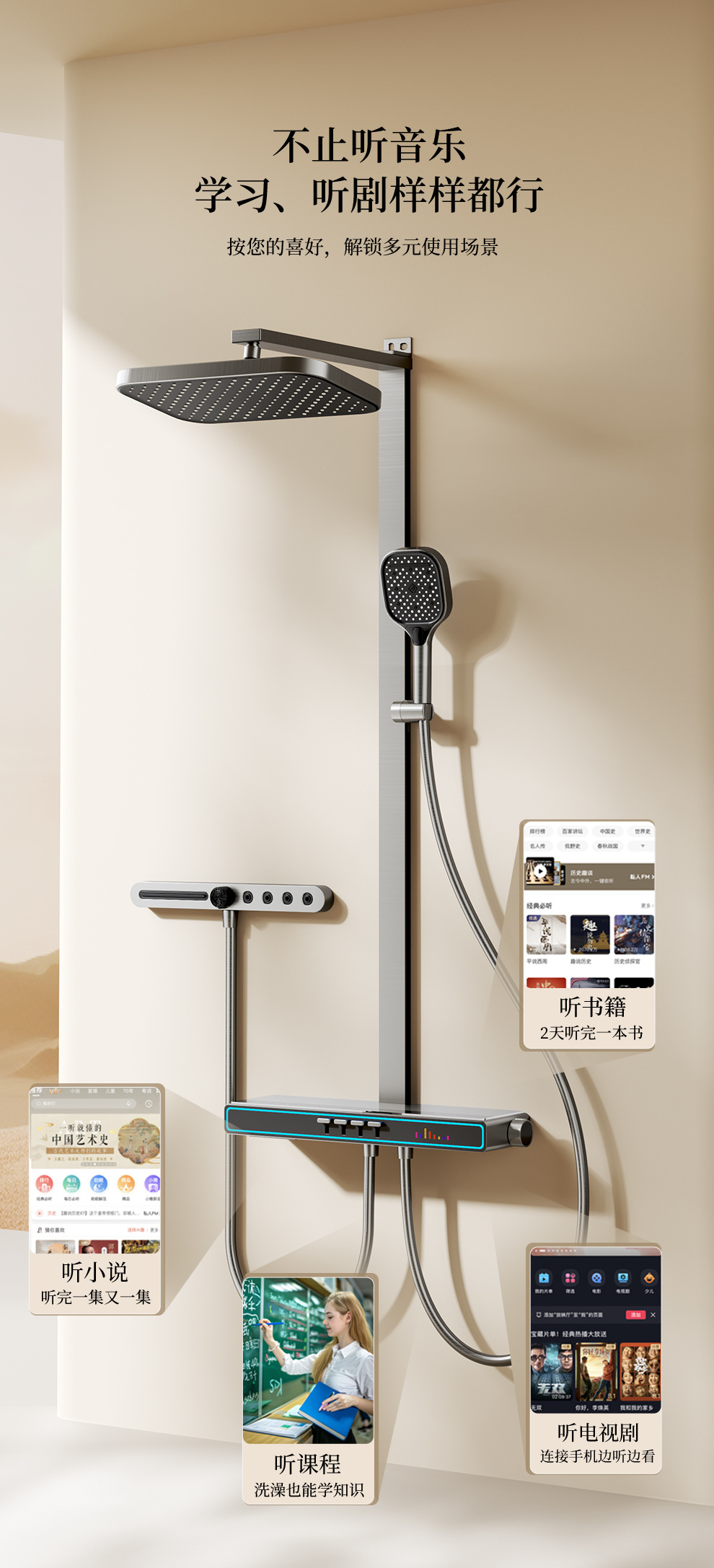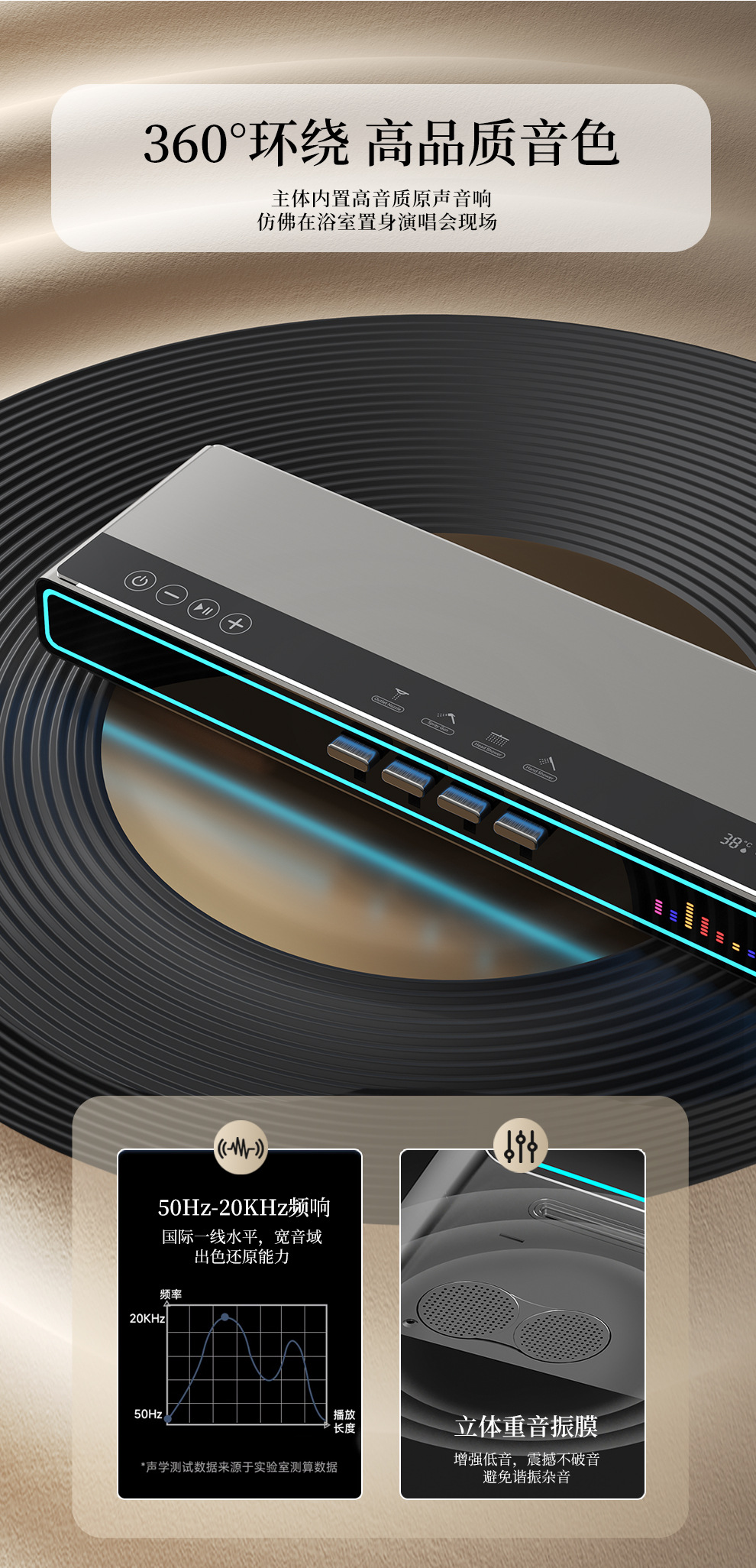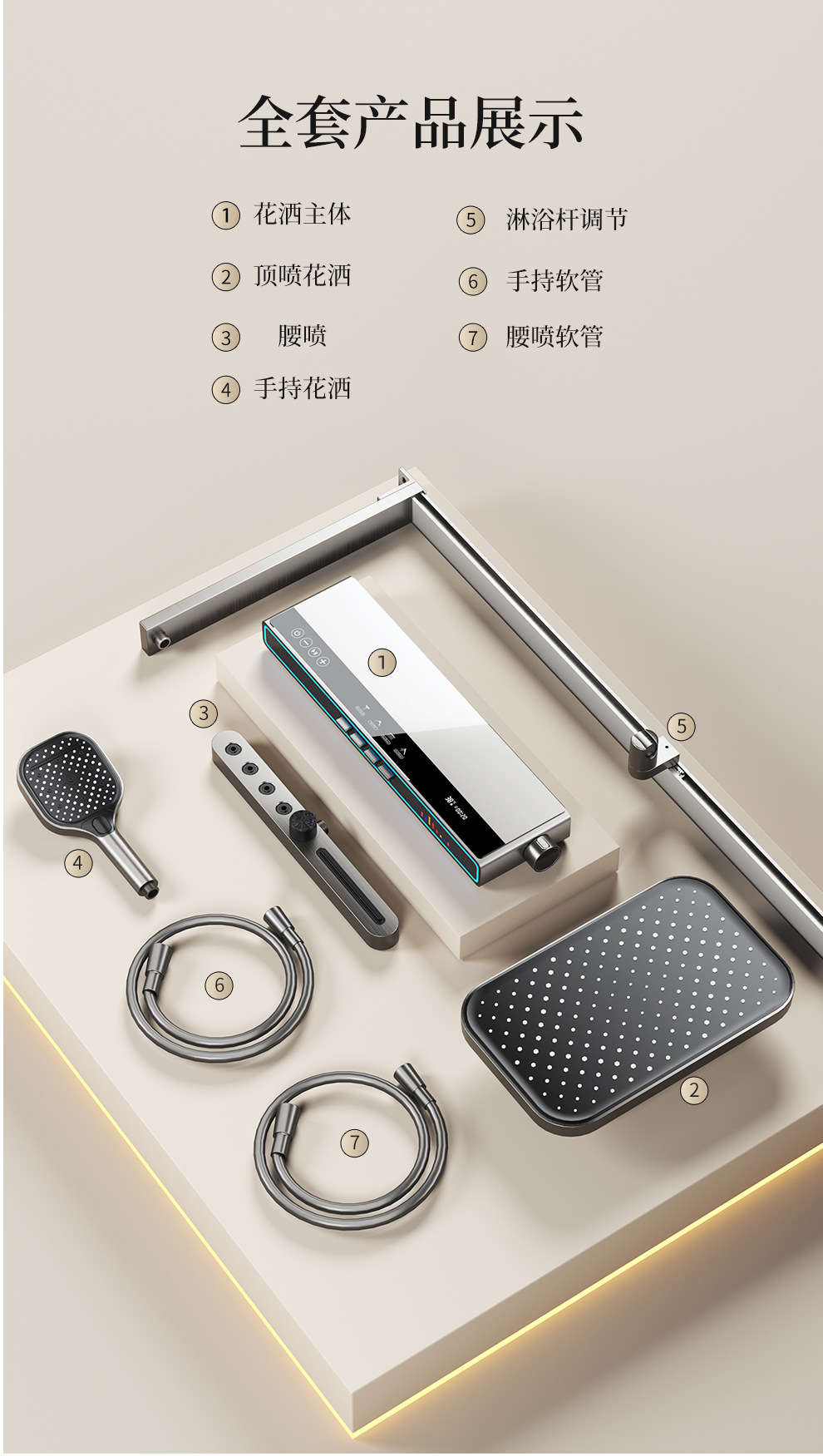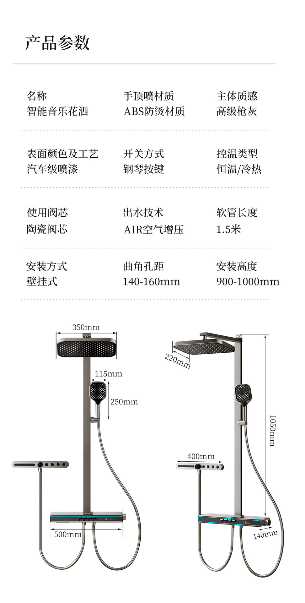 Baños de cobre todo el conjunto de ducha de música luz de atmósfera tecla de piano doméstica temperatura constante inteligente ducha de ducha digital