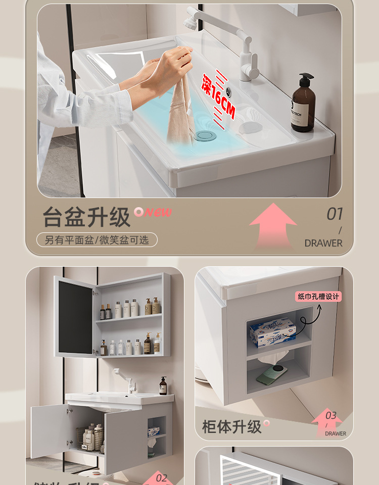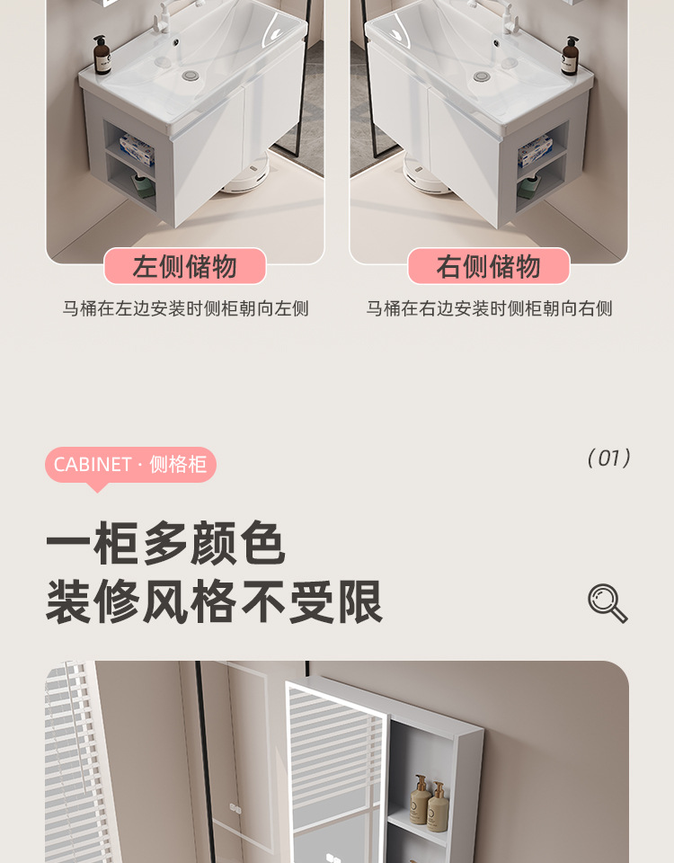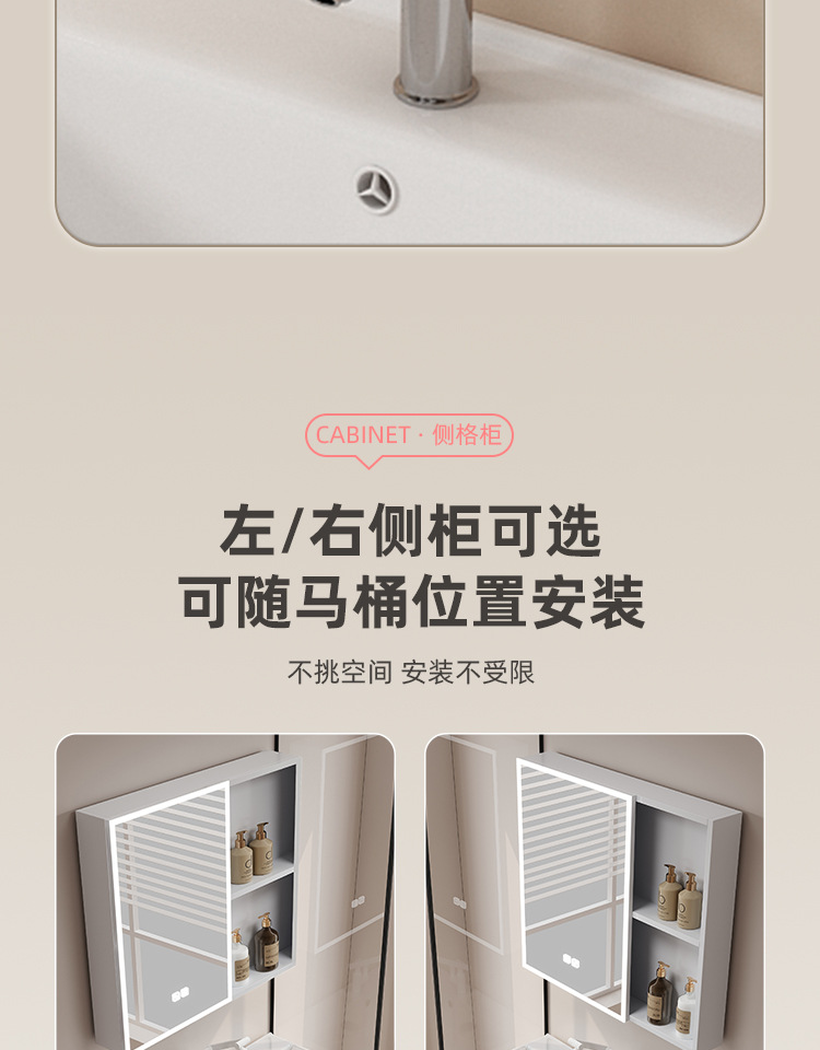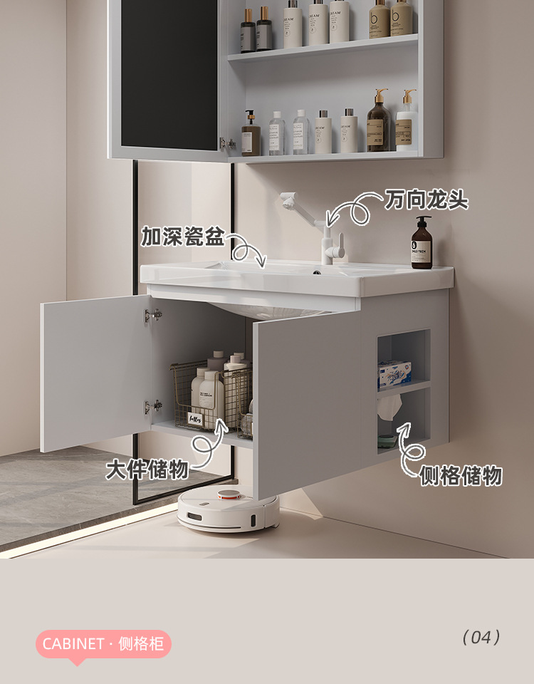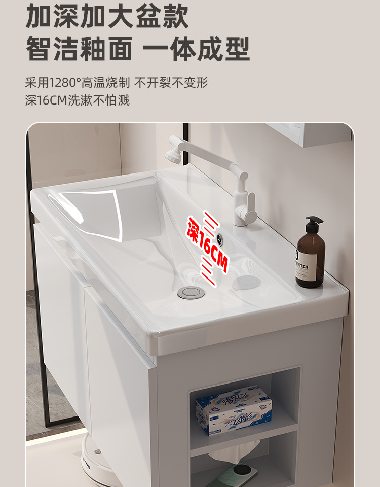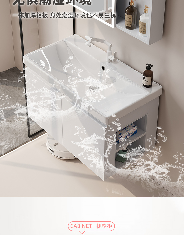 gabinete de baño de almacenamiento lateral combinación de paneles de panal de cerámica integral lavabo de baño lavabo de lavado de manos profundo lavabo
