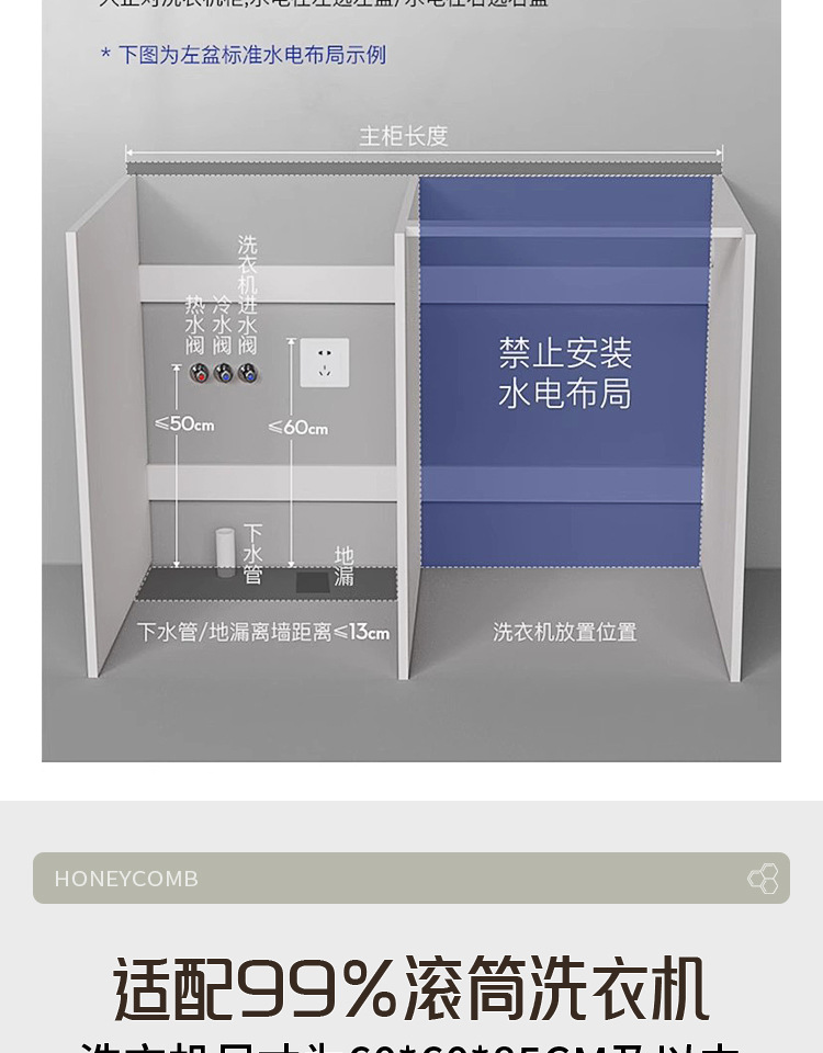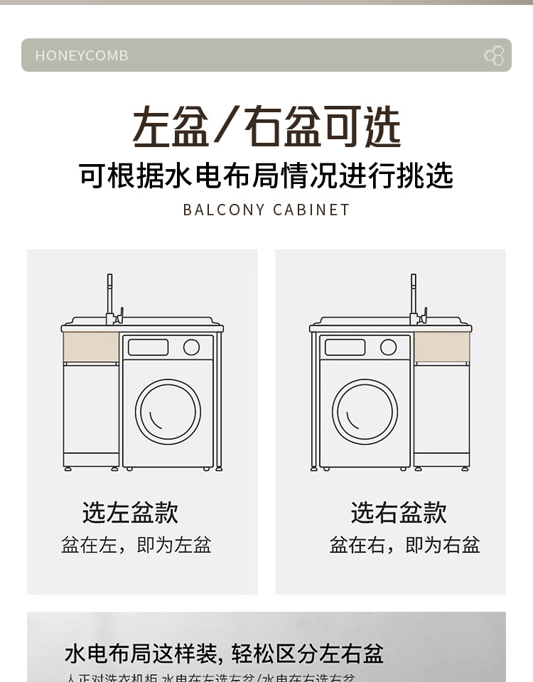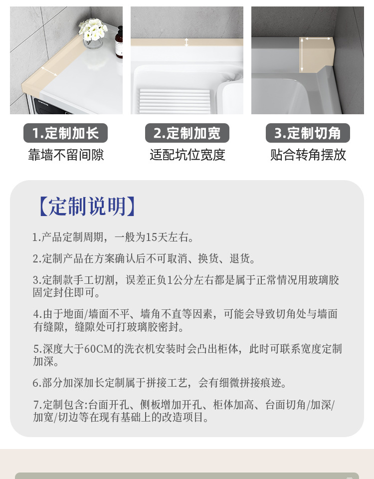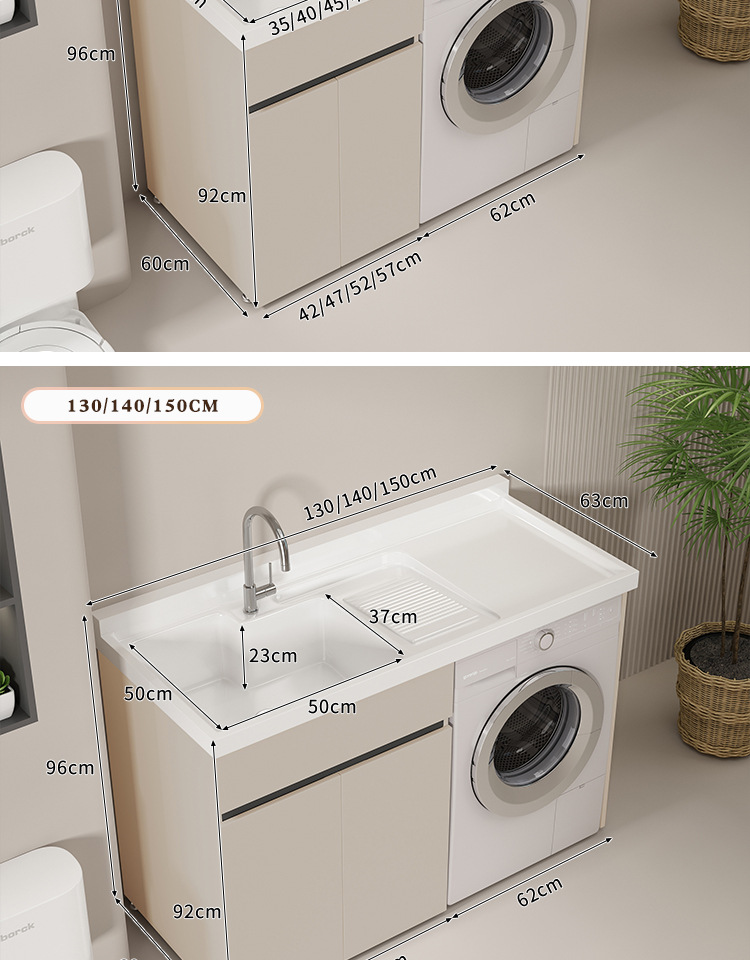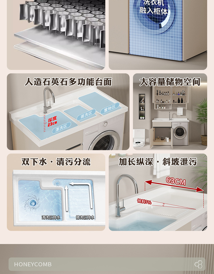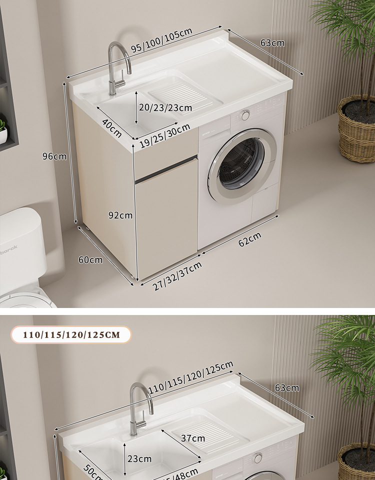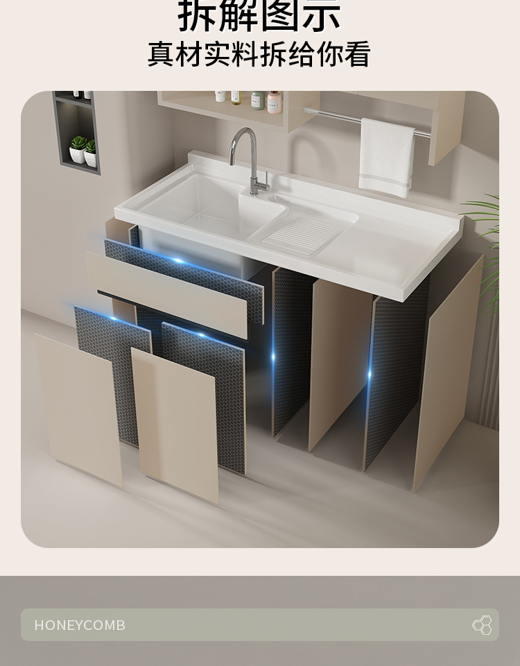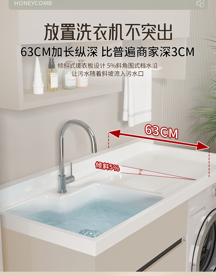 Lavadora de balcón de panal de abeja lavabos tablero de lavabos con tablero de fricción integrado armario de lavadora compañero esquina de corte