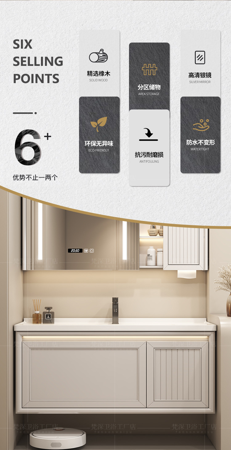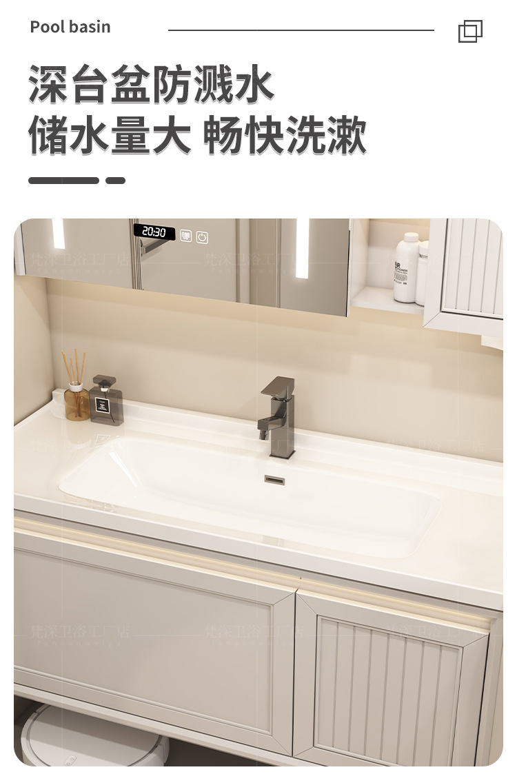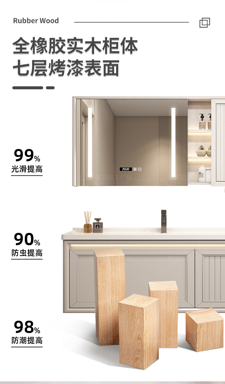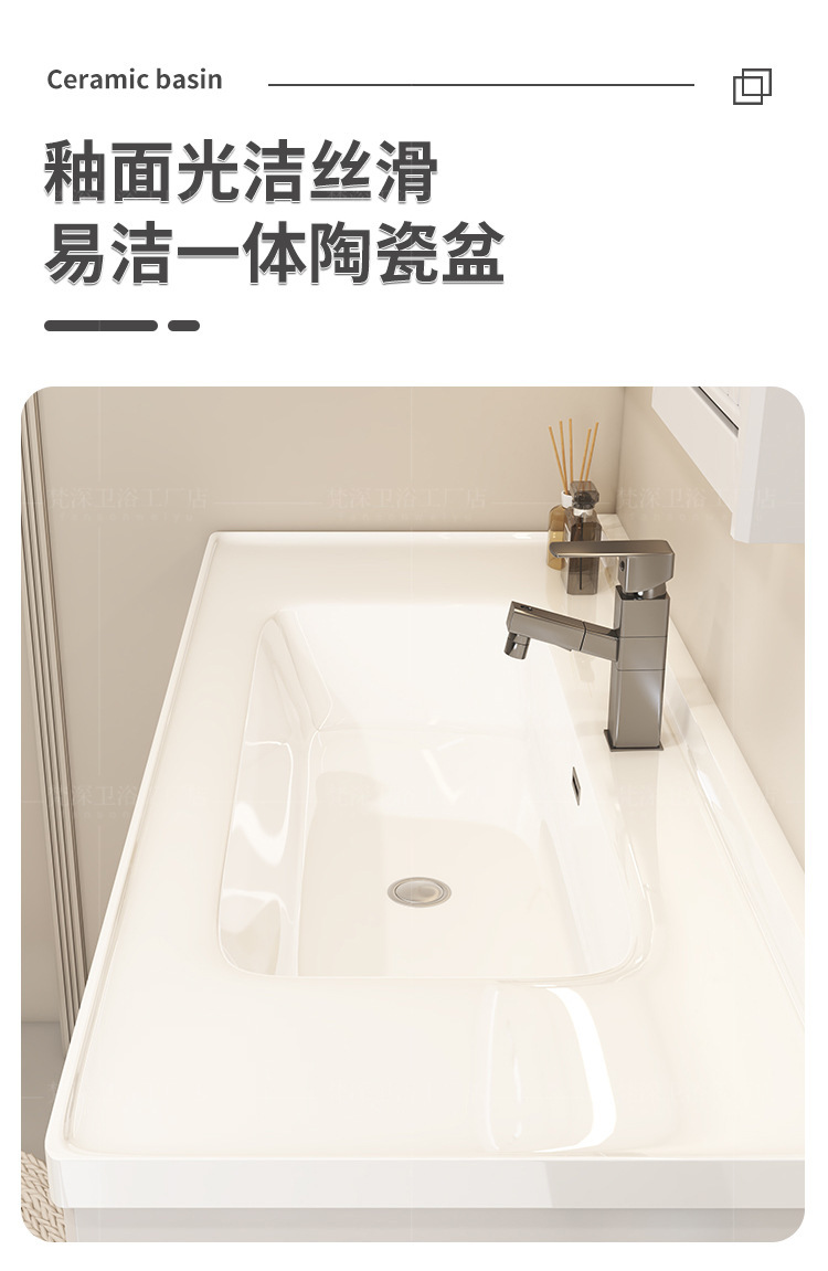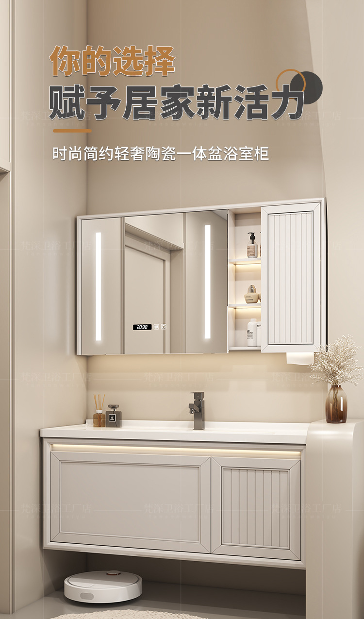 Gabinete de baño personalizado de cerámica de roble combinado de alto grado tallado gabinete lavabo roble inteligente horneado