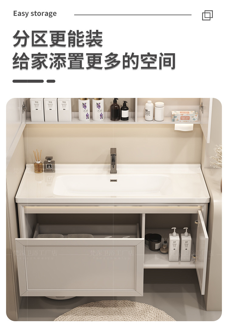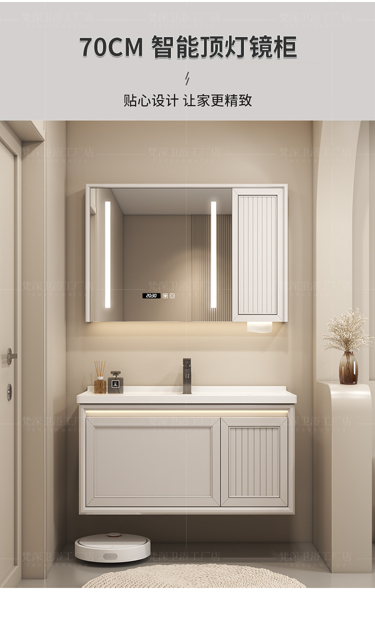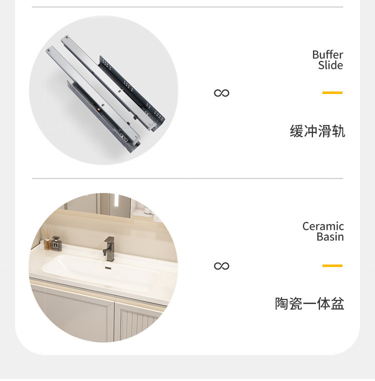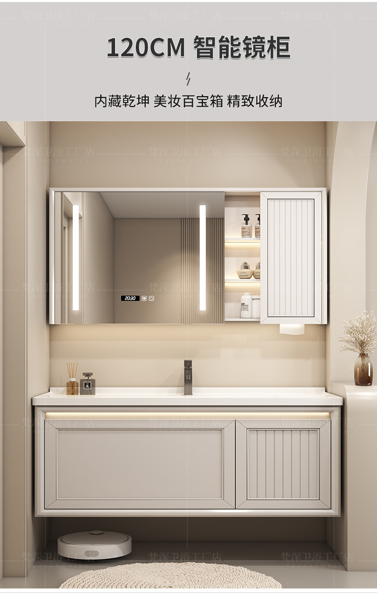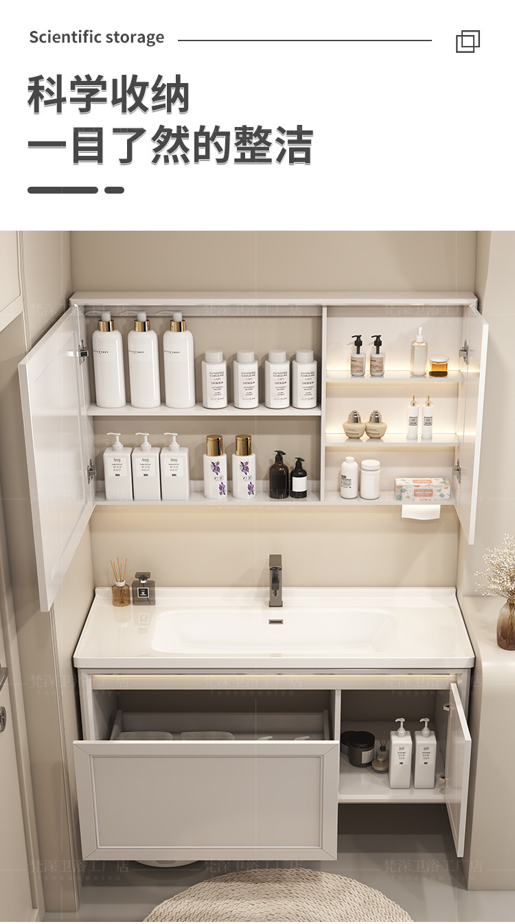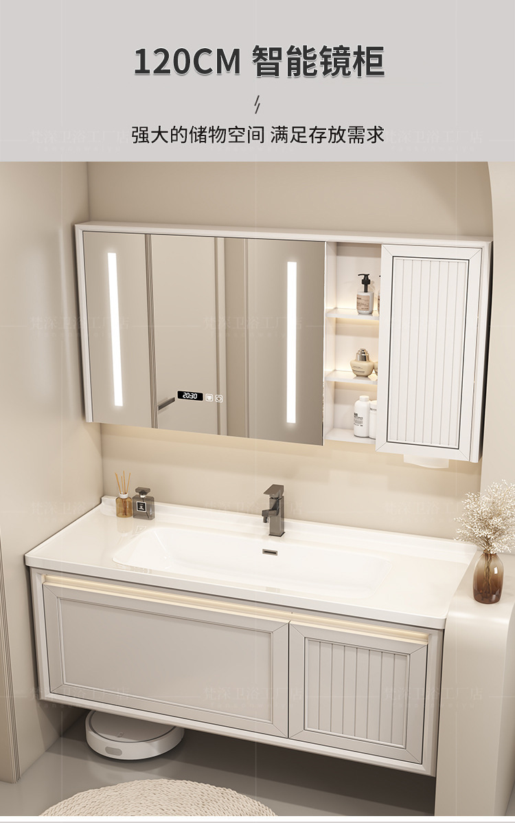 Gabinete de baño personalizado de cerámica de roble combinado de alto grado tallado gabinete lavabo roble inteligente horneado