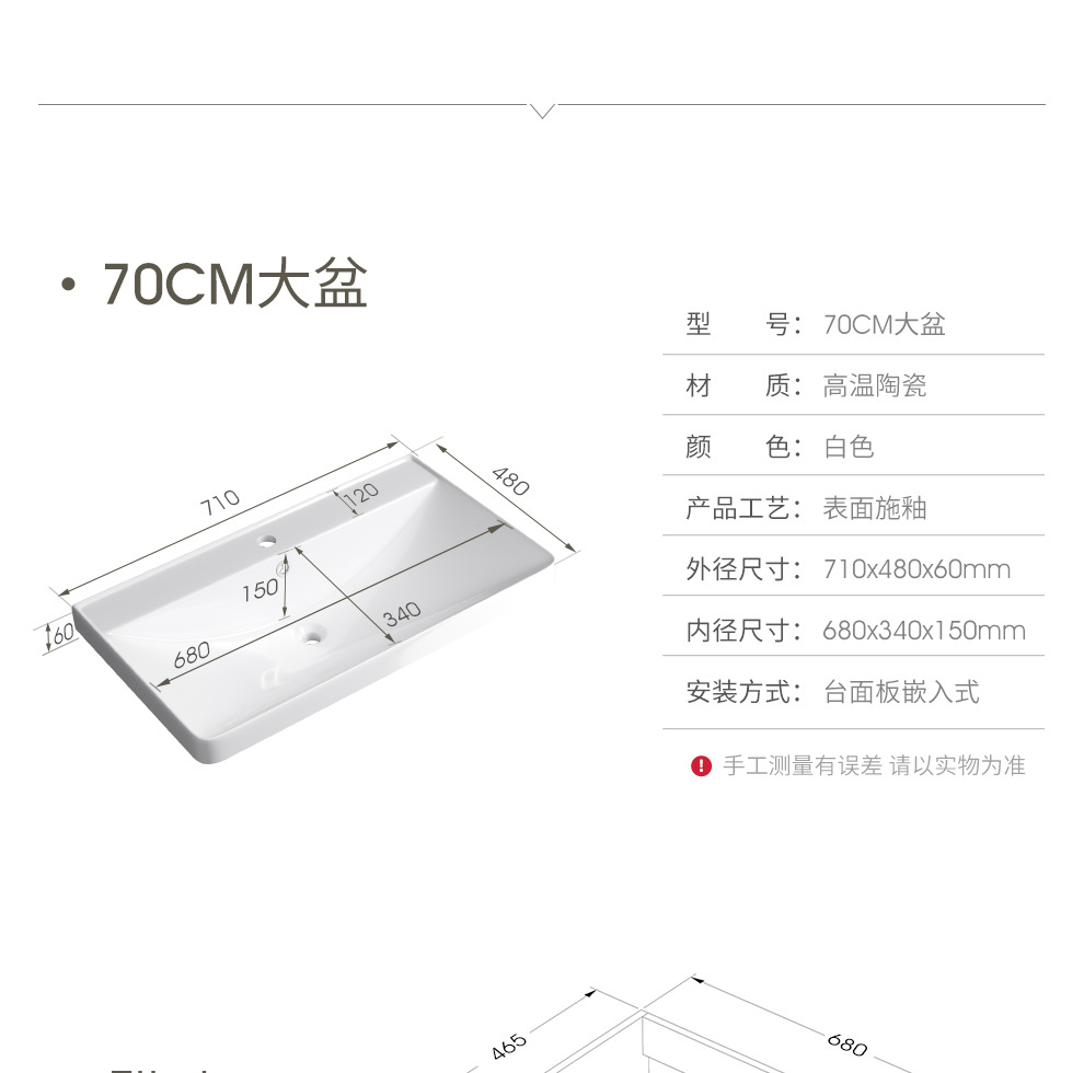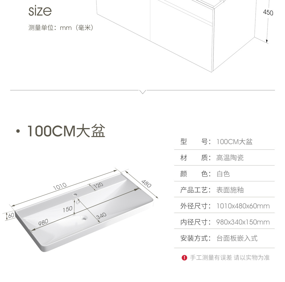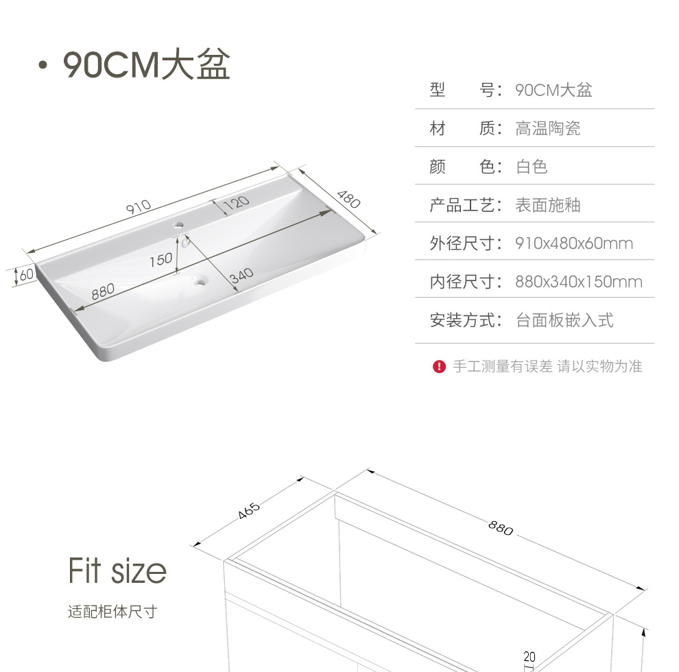 Lavabo de cerámica de una pieza, lavabo de cerámica semiempotrado, gran diámetro interior, lavabo, lavabo, armario de baño, lavabo