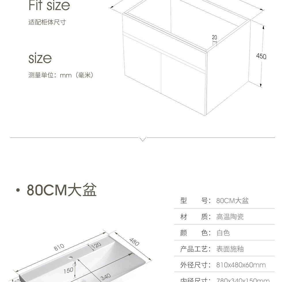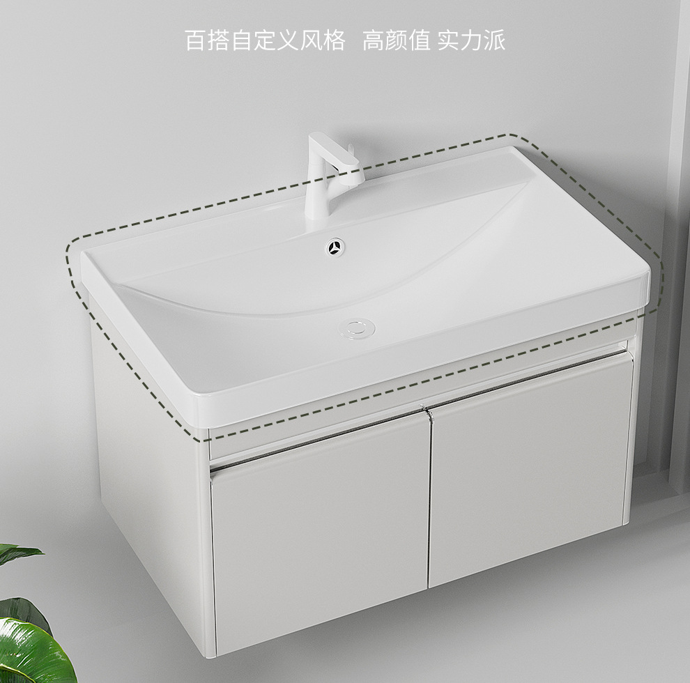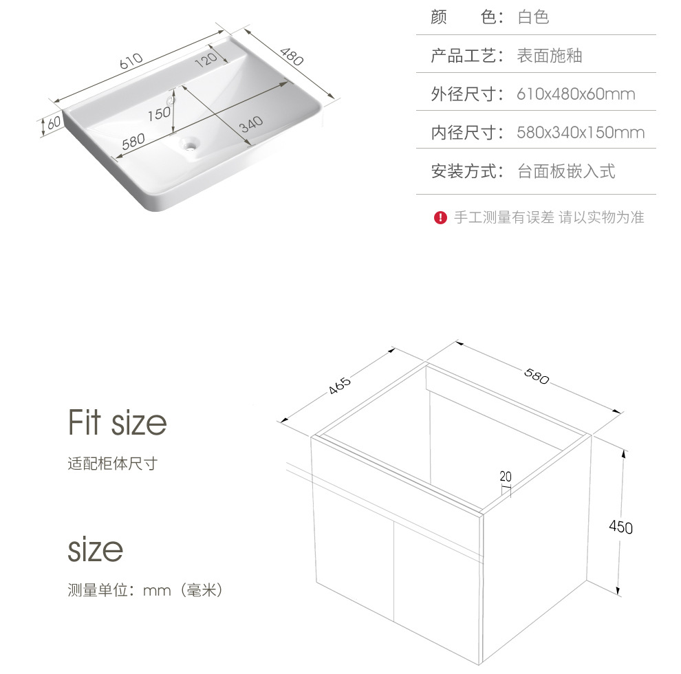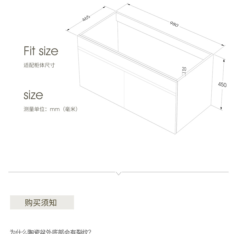 Lavabo de cerámica de una pieza, lavabo de cerámica semiempotrado, gran diámetro interior, lavabo, lavabo, armario de baño, lavabo