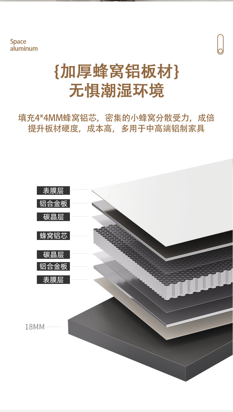 | Material del Gabinete | Panel de acabado de abeja y placa a prueba de humedad |