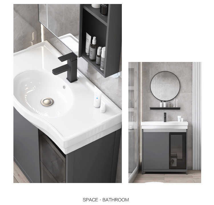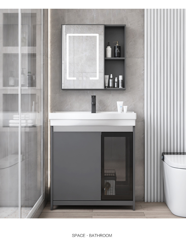 Puerta de vidrio tipo piso espacio gabinete de baño de aluminio balcón gabinete lavabo vertical pequeño tipo lavabo piscina