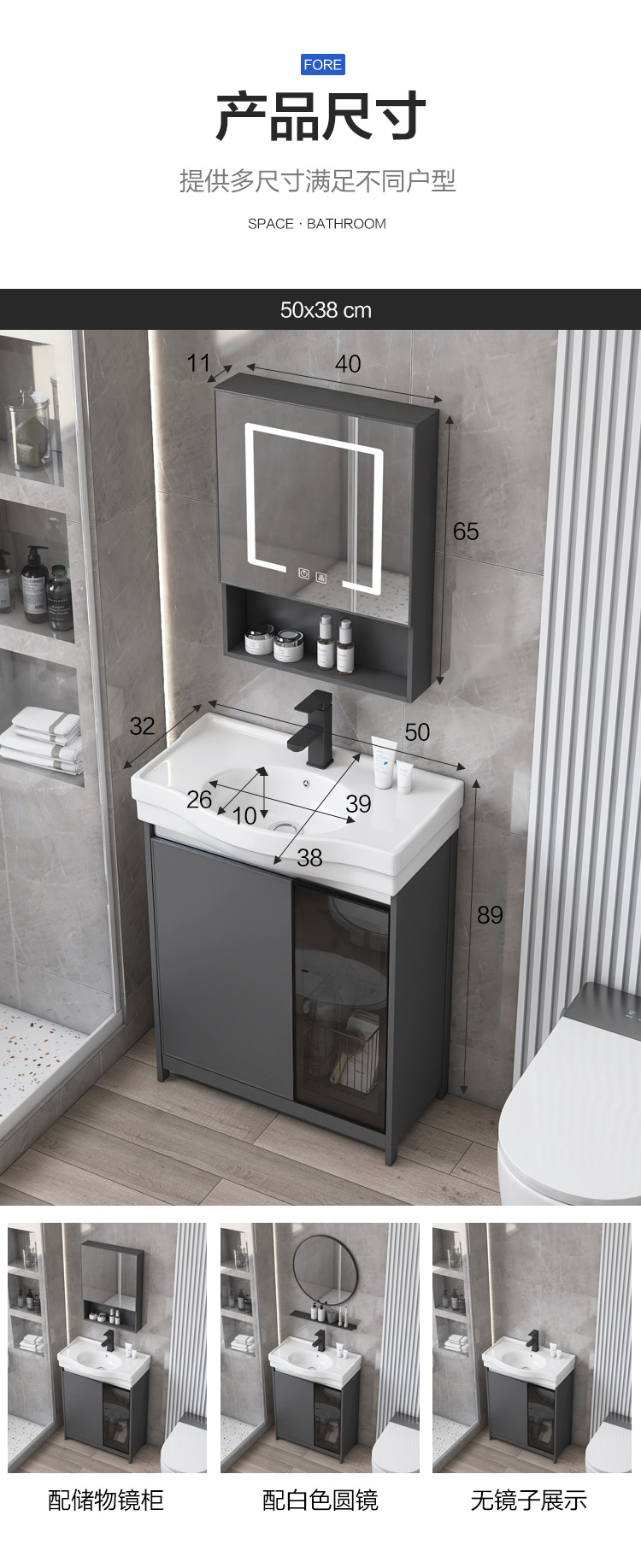 | Color | 50 * 38cm gabinete de cuenca + hardware (sin espejo) 50 * 38cm gabinete de cuenca + hardware + espejo circular ordinario 50 * 38cm gabinete de cuenca + hardware + general |