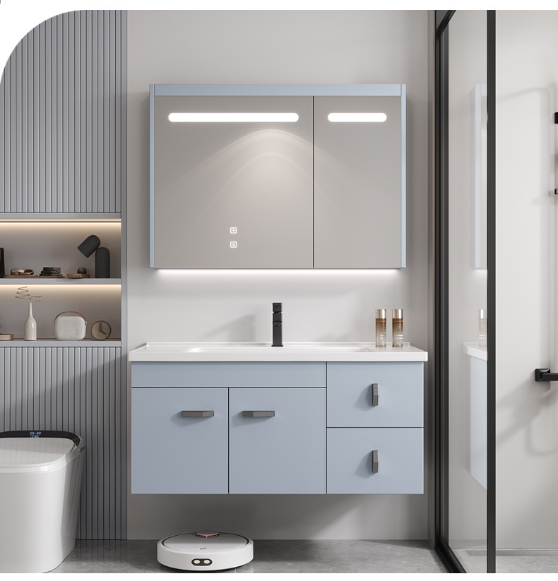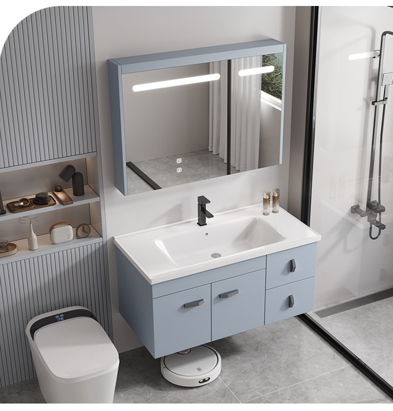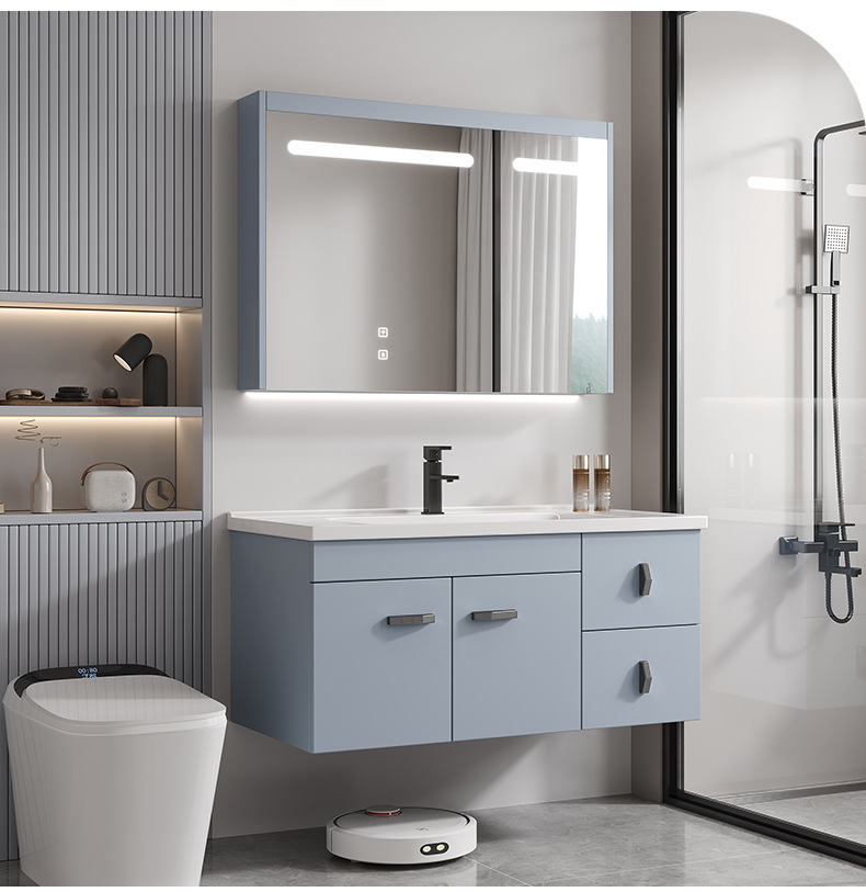 Gabinete de baño de acero inoxidable azul simple combinación de cerámica en una bañera lavabo gabinete