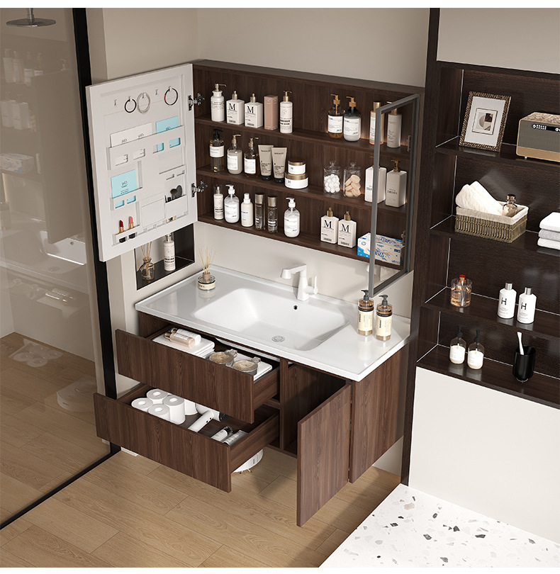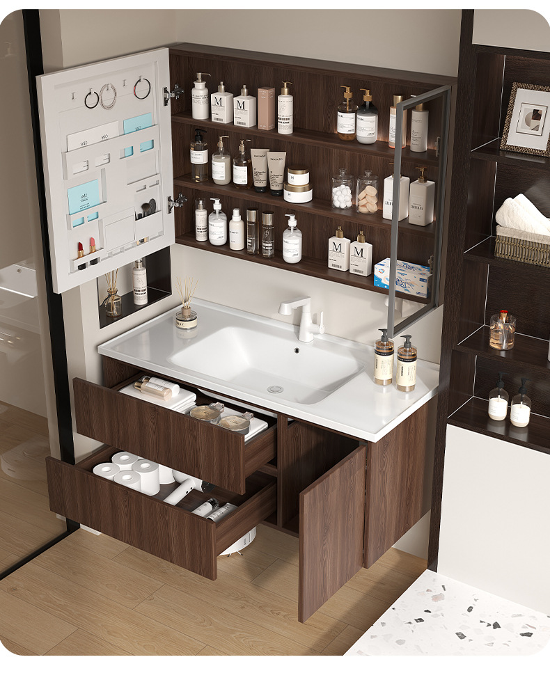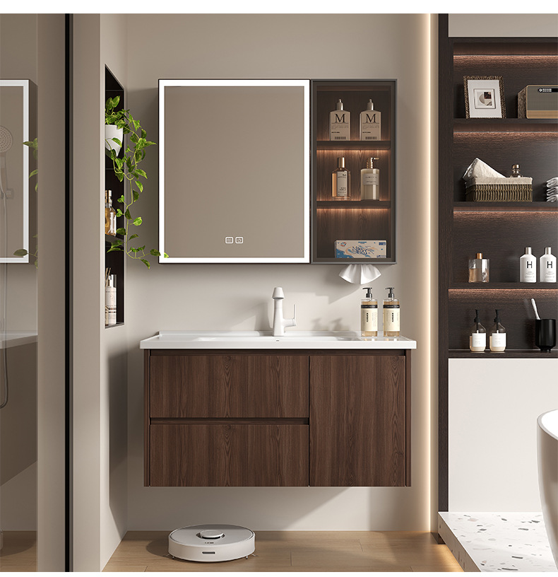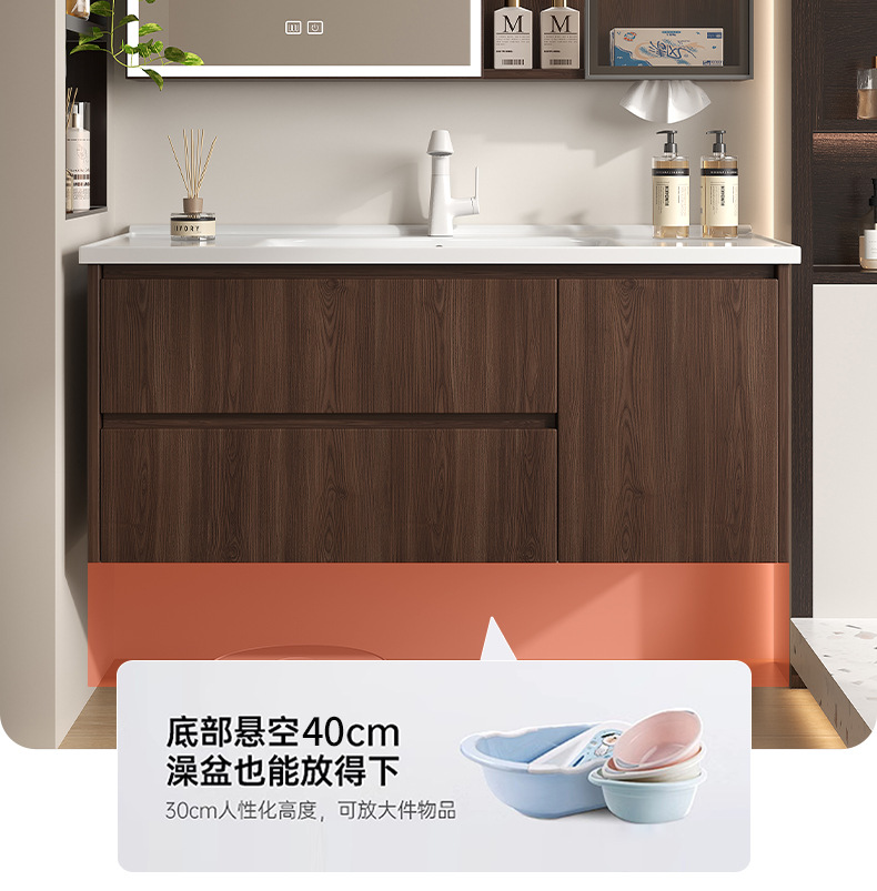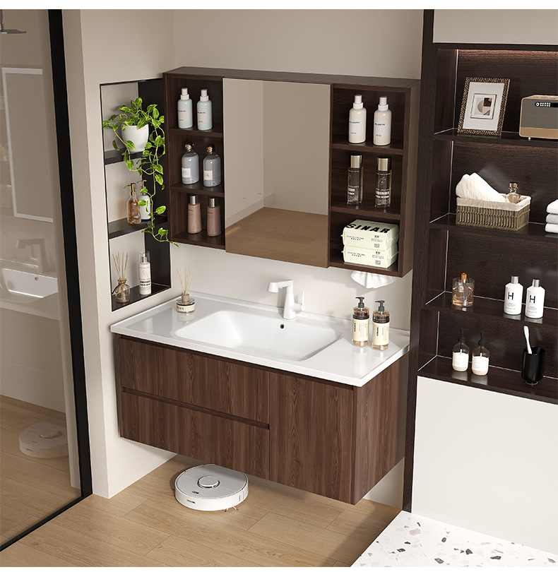 Baño de color de nuez panal de panal gabinete de baño combinado en cerámica lavabo lavabo gabinete lavabo