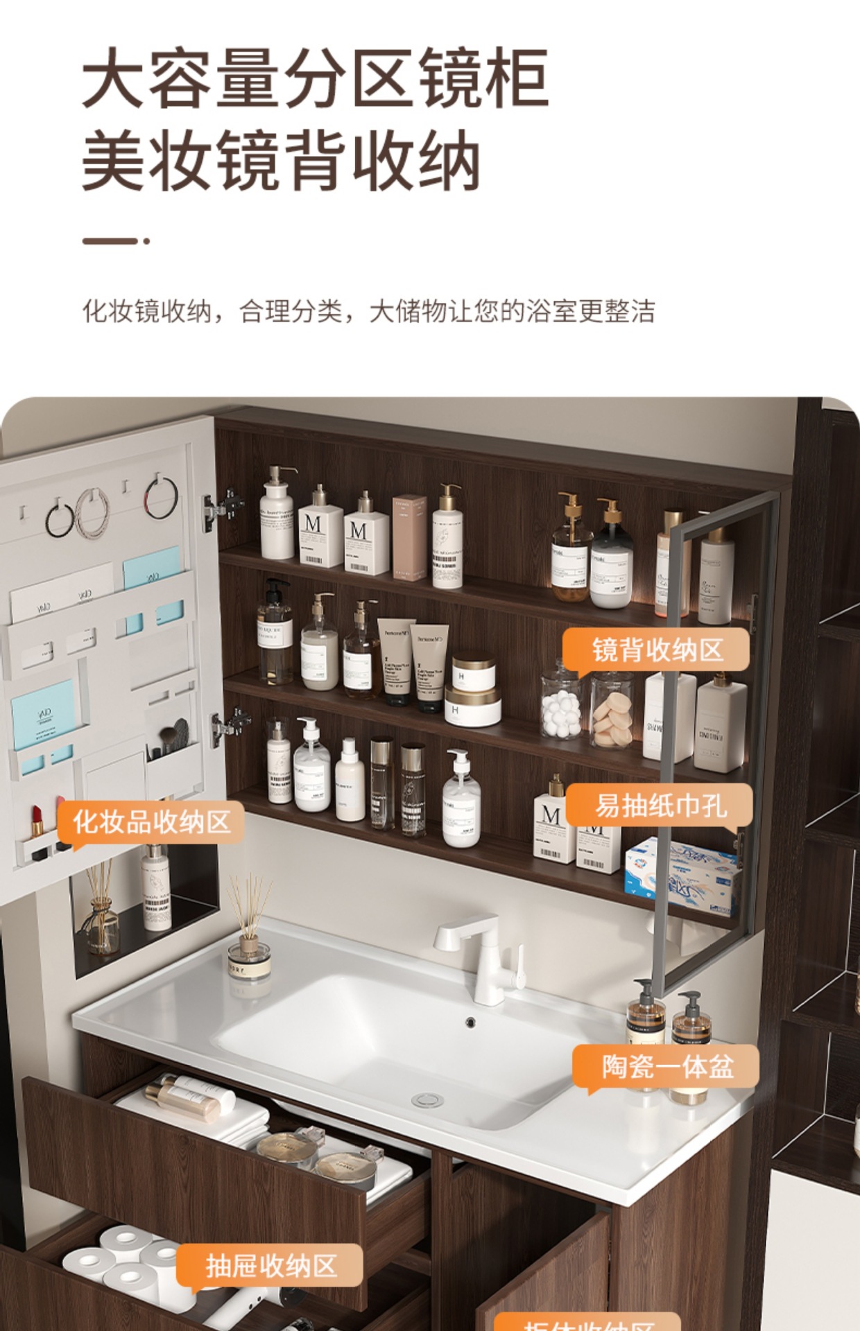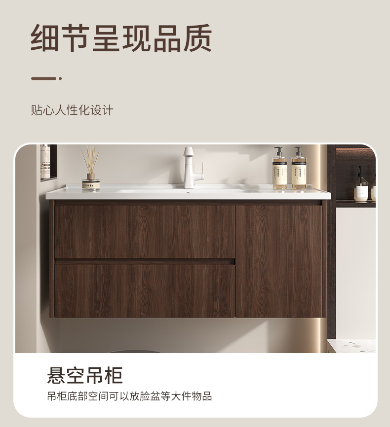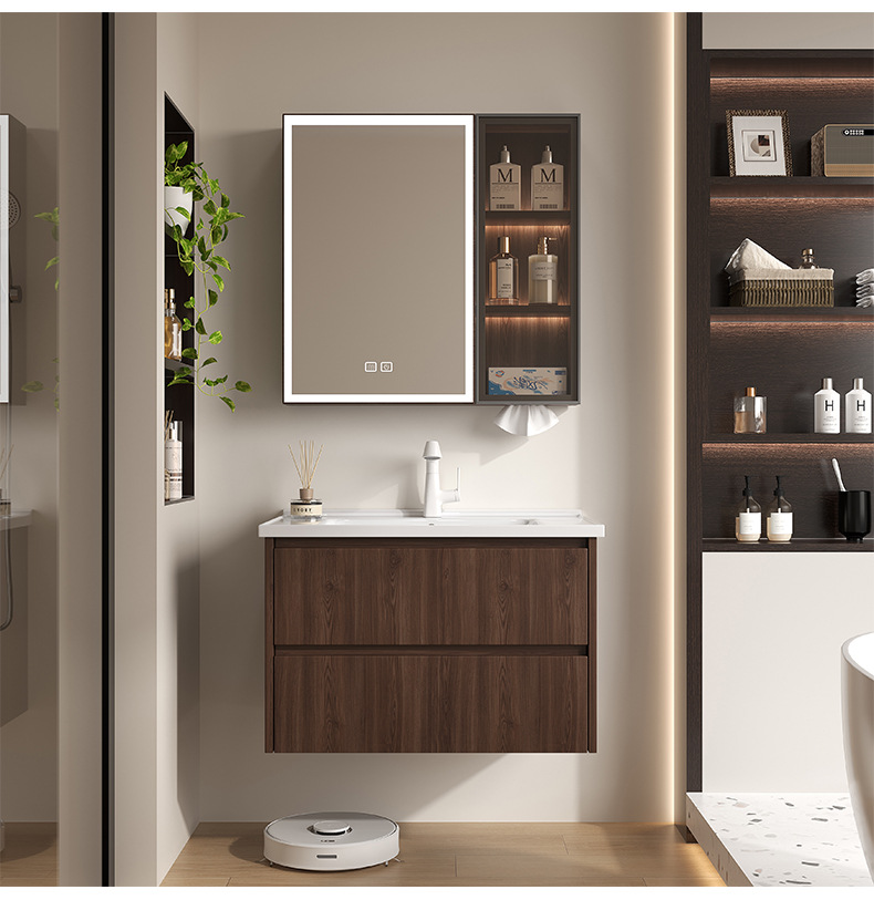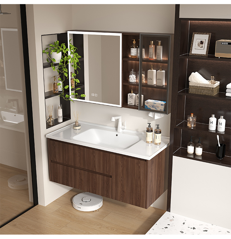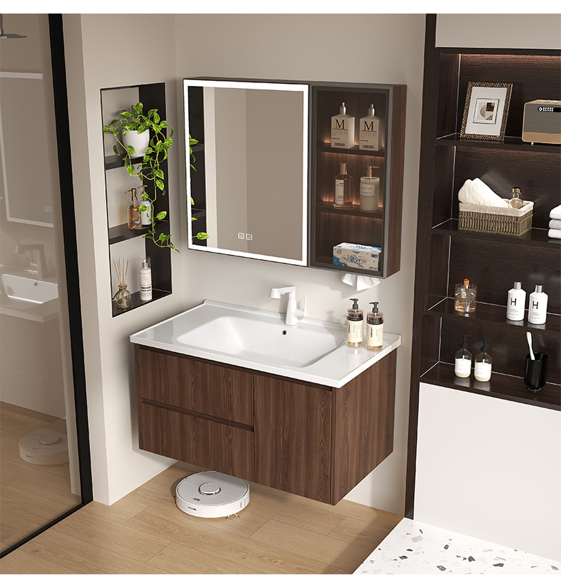 Baño de color de nuez panal de panal gabinete de baño combinado en cerámica lavabo lavabo gabinete lavabo