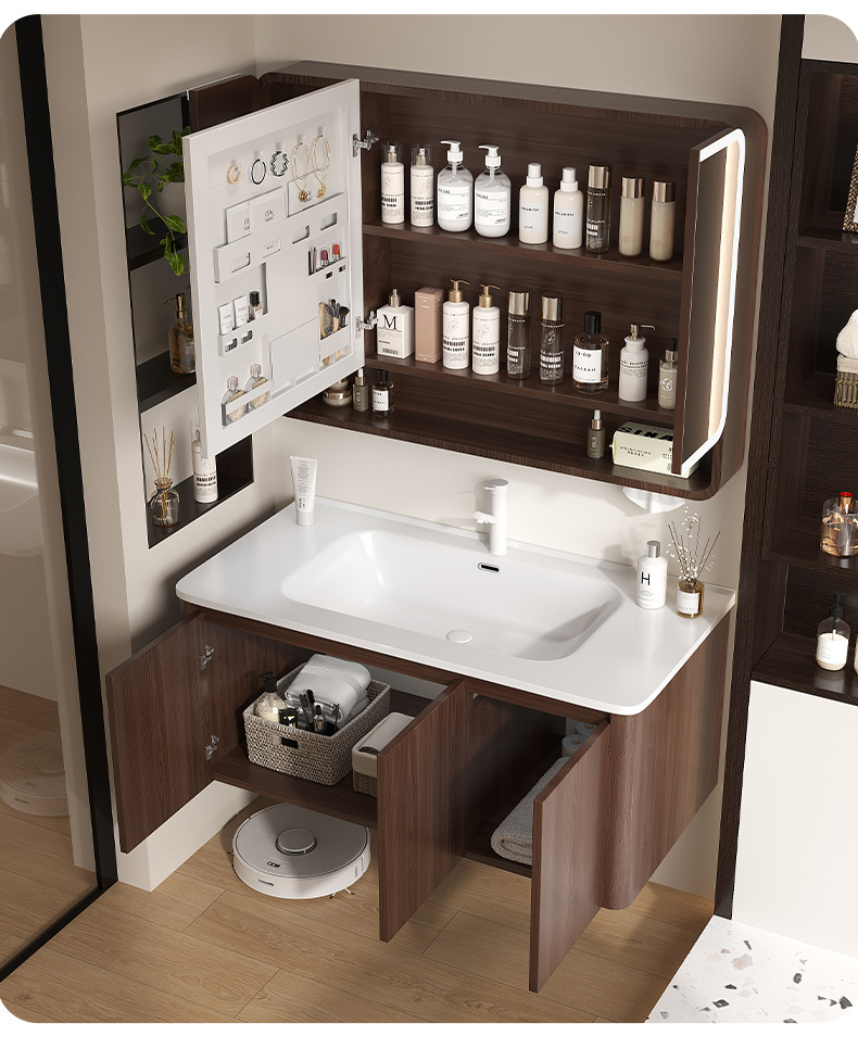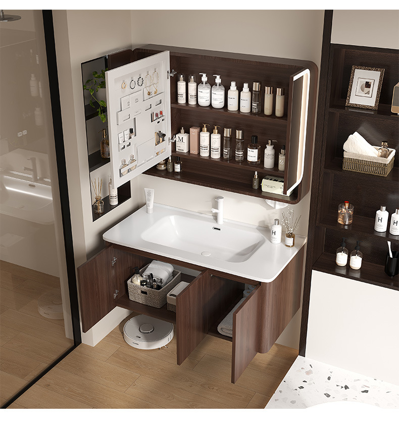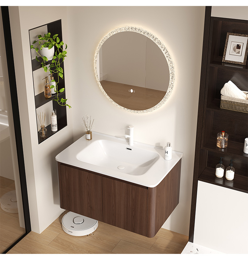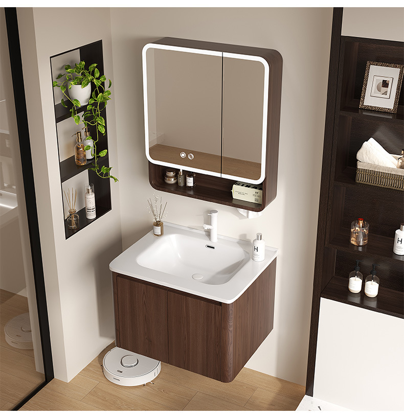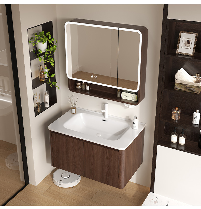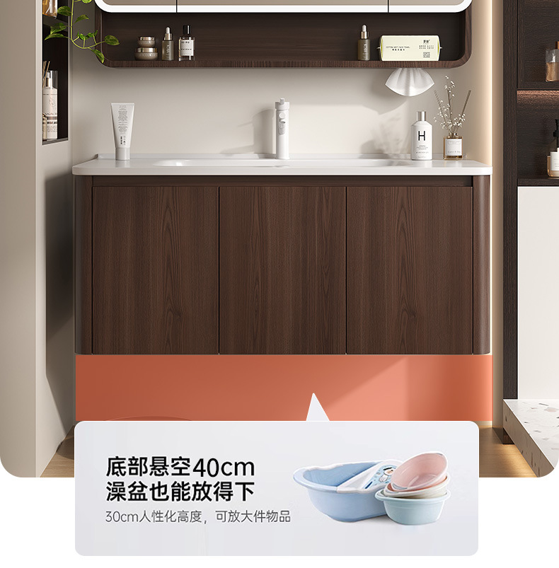 Nuevo gabinete de baño de madera chino combinación de paneles de abeja color nuez cerámica lavabo lavabo lavabo