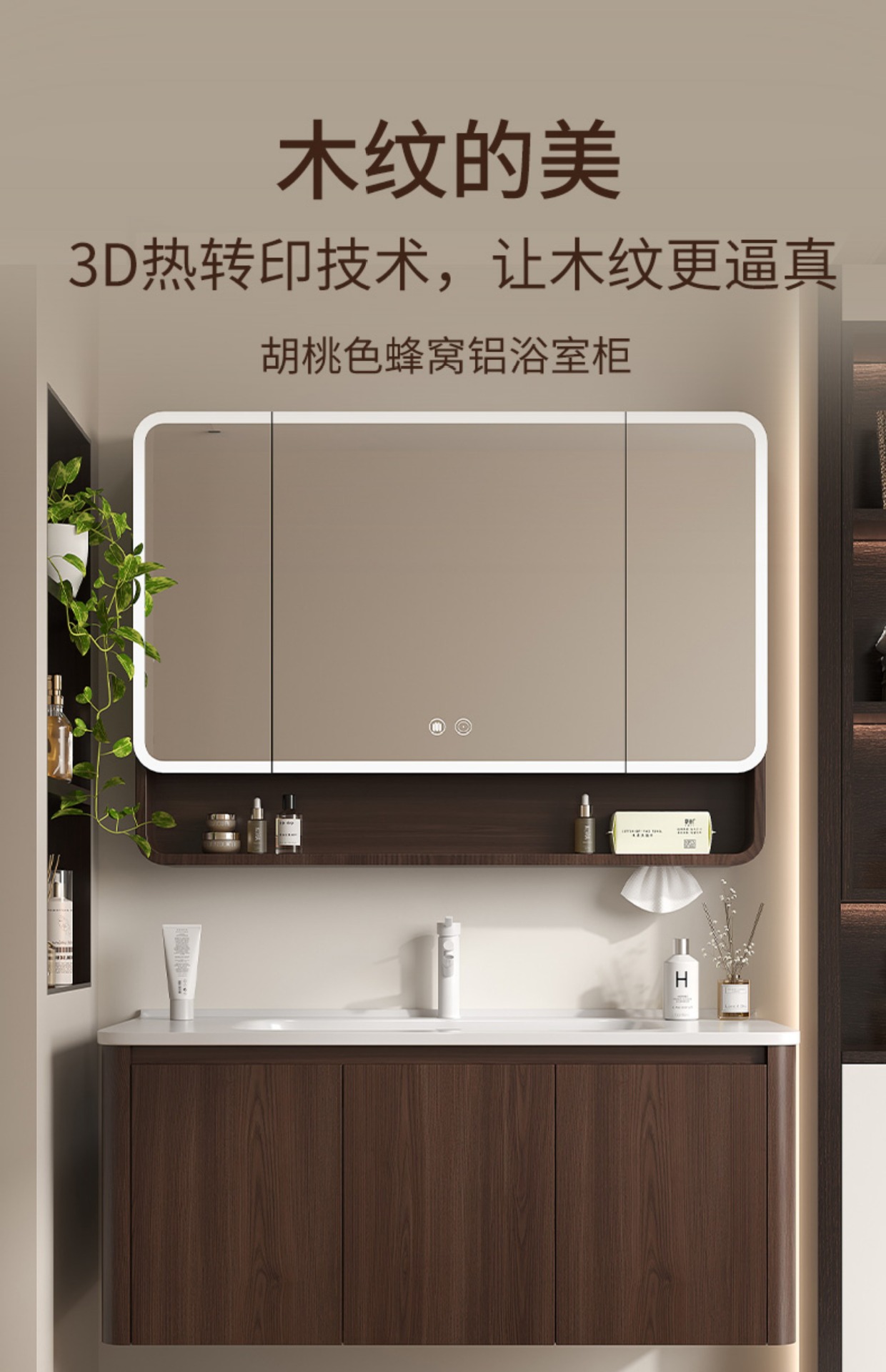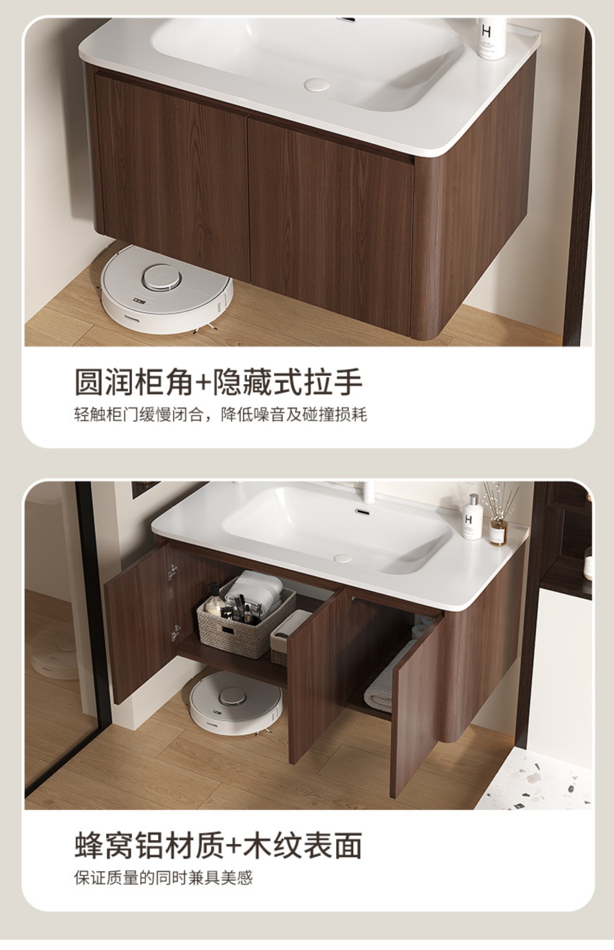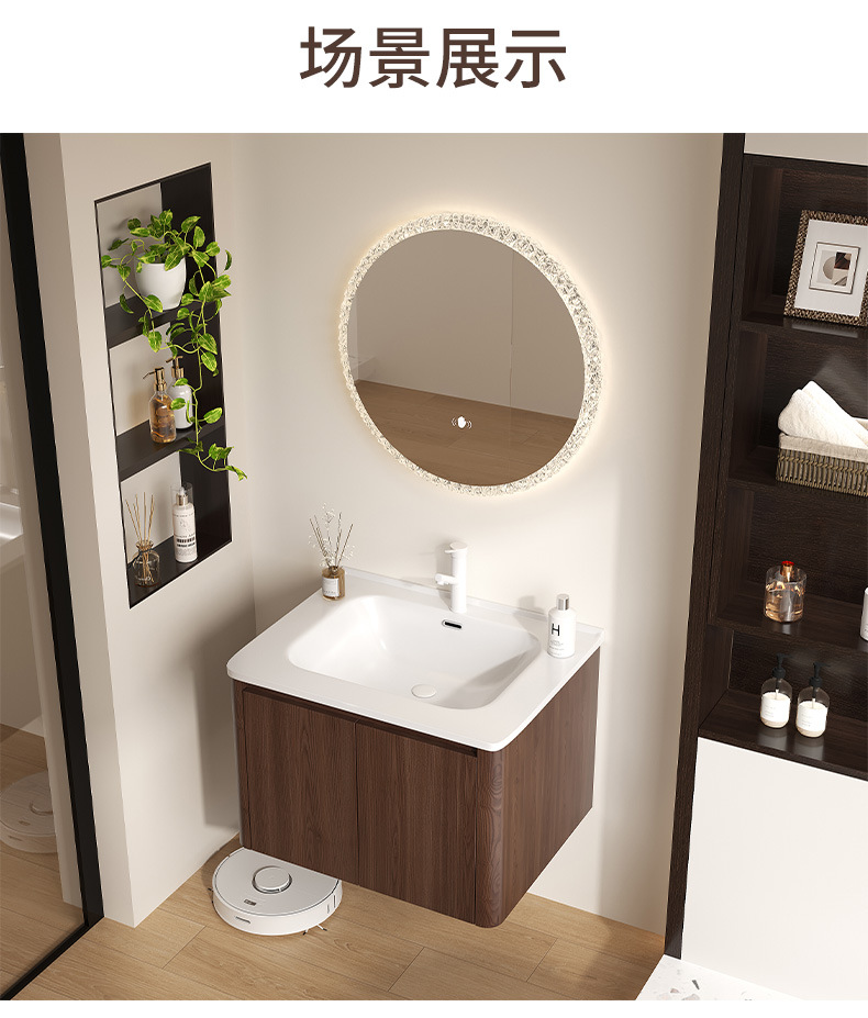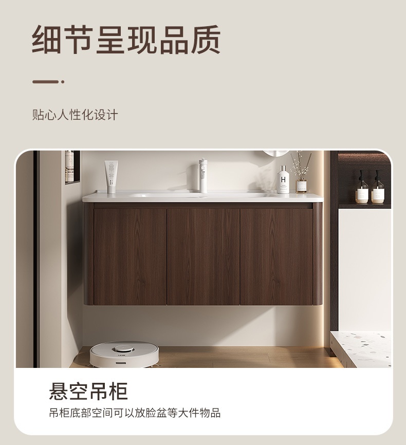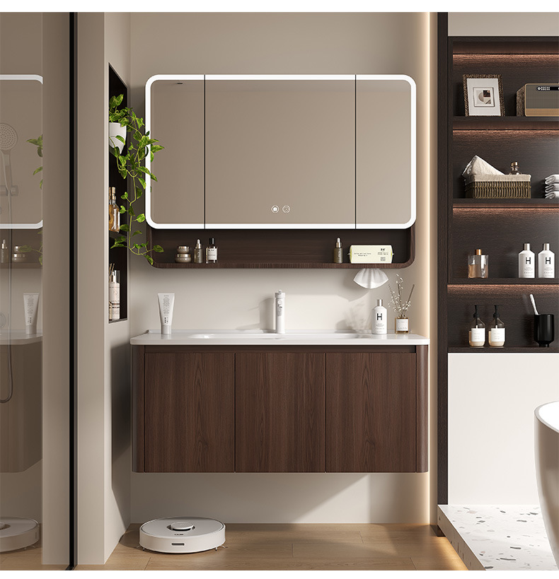Nuevo gabinete de baño de madera chino combinación de paneles de abeja color nuez cerámica lavabo lavabo lavabo