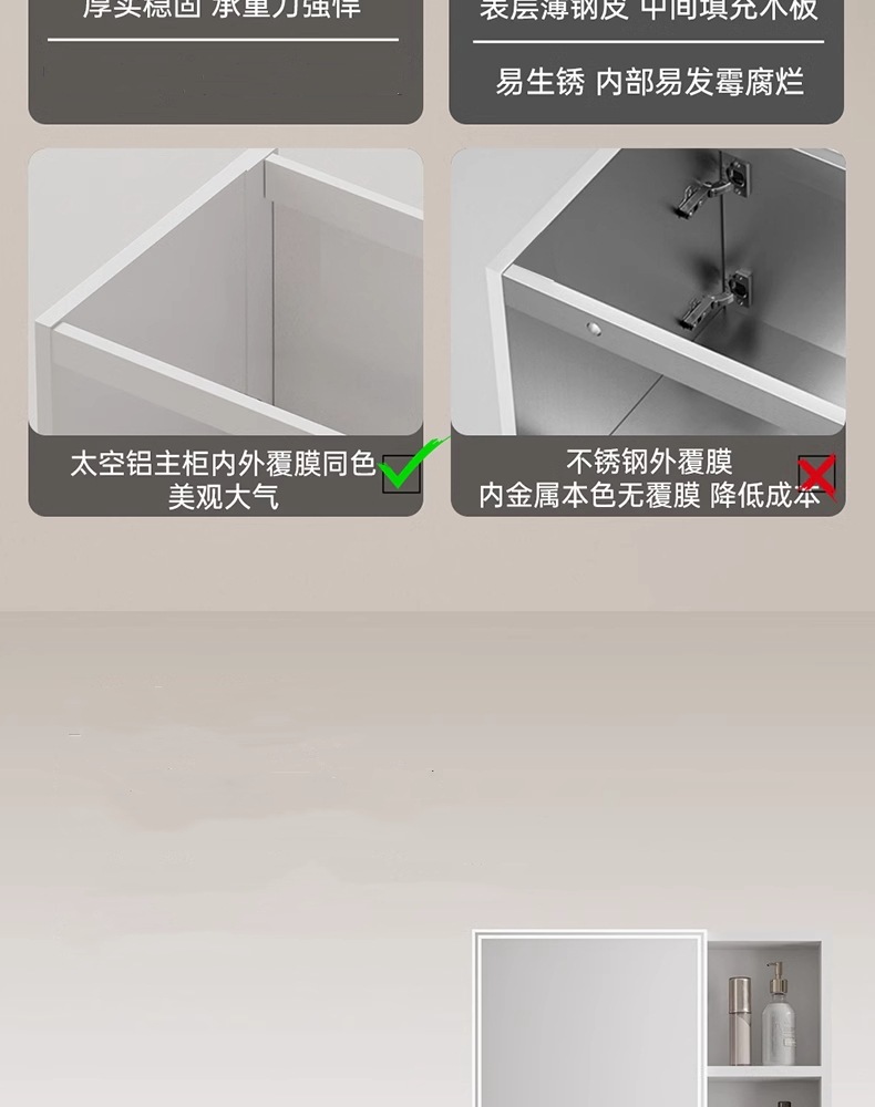 espesar panal de abeja espacio aluminio lado abierto almacenamiento pequeño gabinete de baño combinación cerámica lavabo lavabo lavabo lavabo