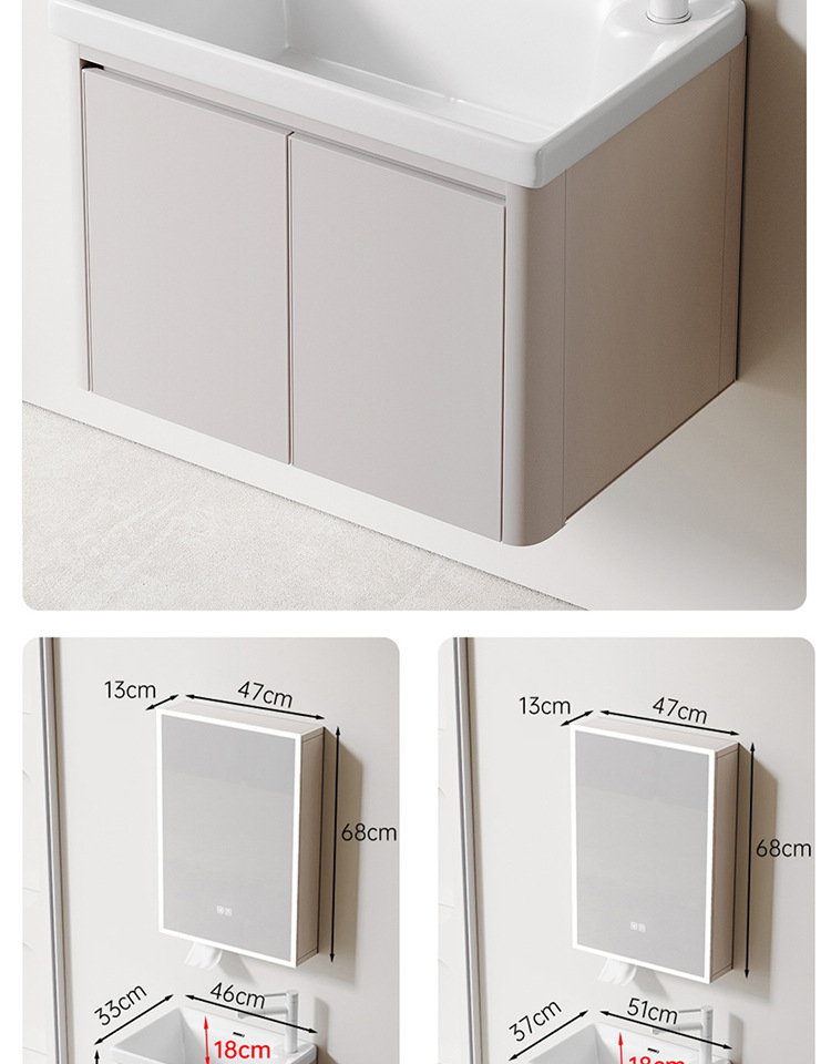 Cream-wind panal espacio de aluminio pequeño gabinete de baño tipo casa combinación cerámica todo en uno lavabo lavabo lavabo gabinete lavabo