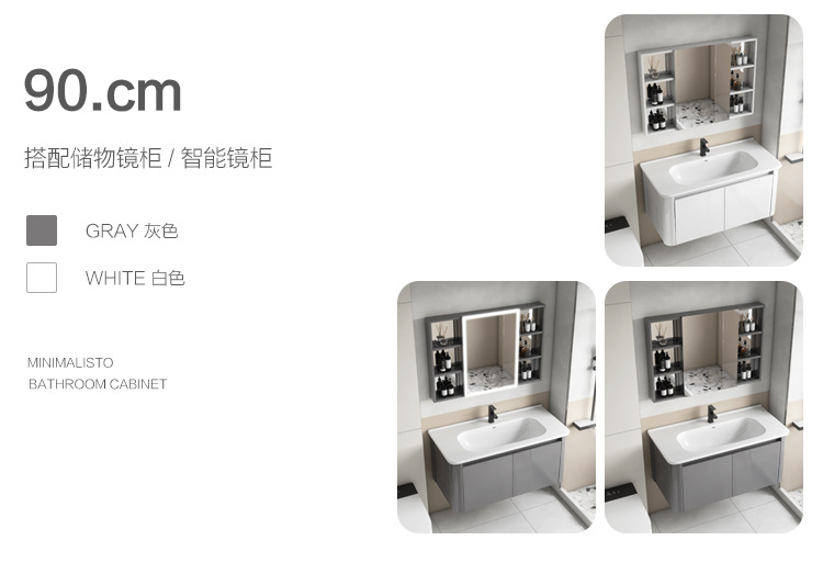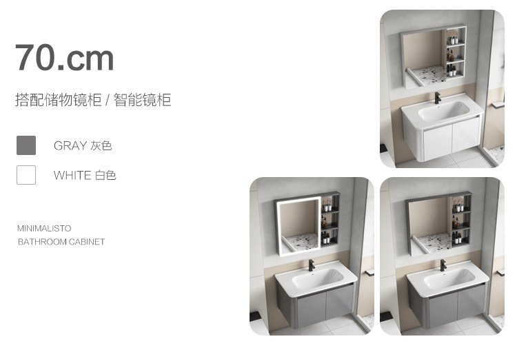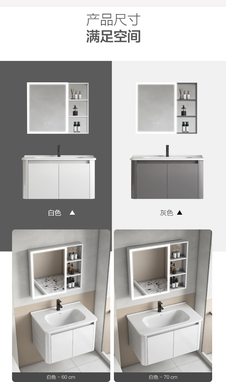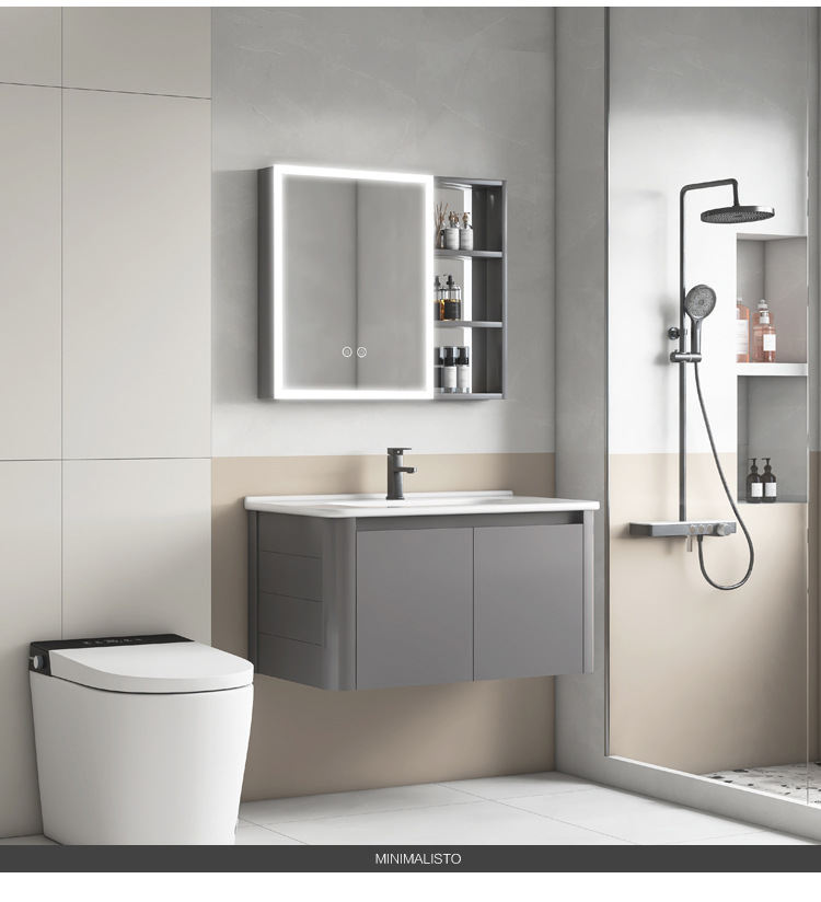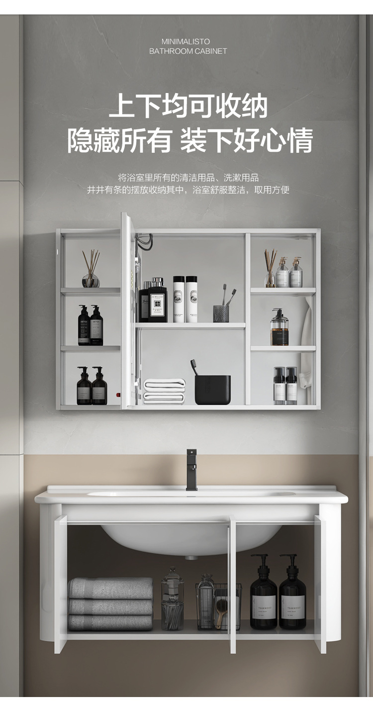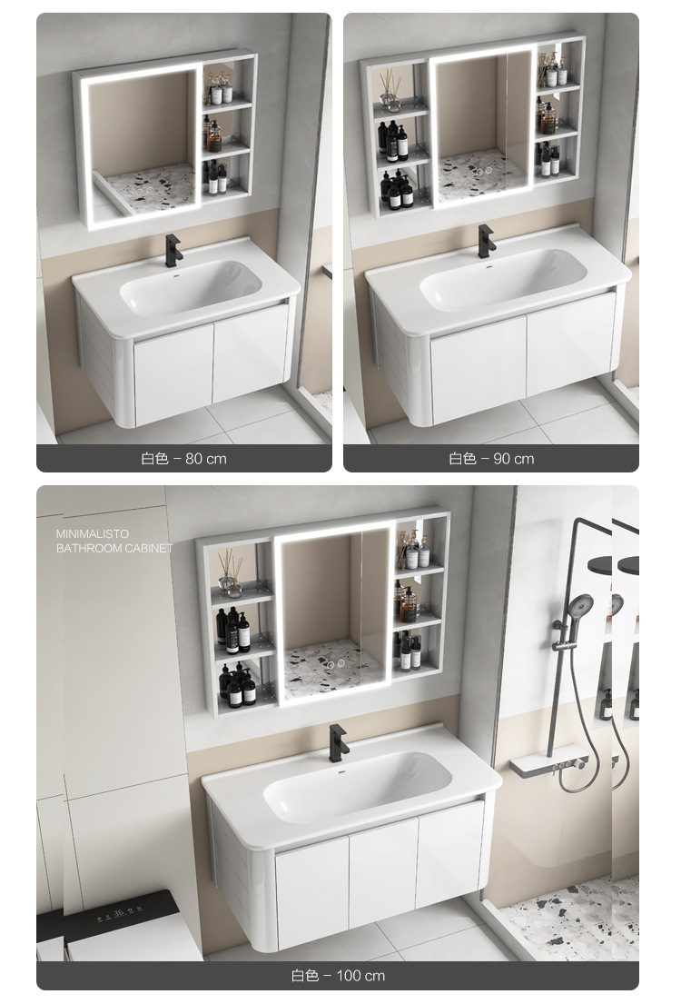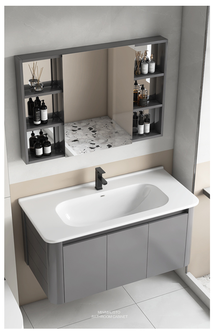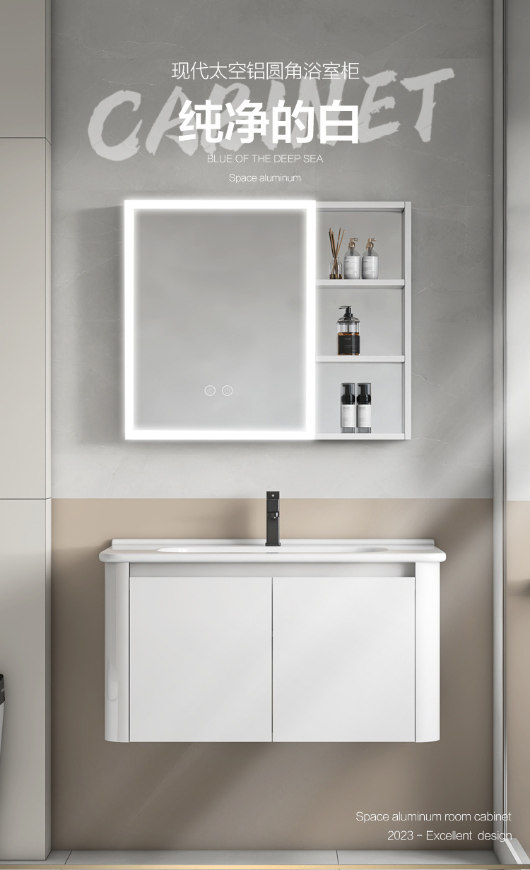 Creamy viento blanco espesado espacio gabinete de baño de aluminio combinado cerámica lavabo de mano lavabo lavabo