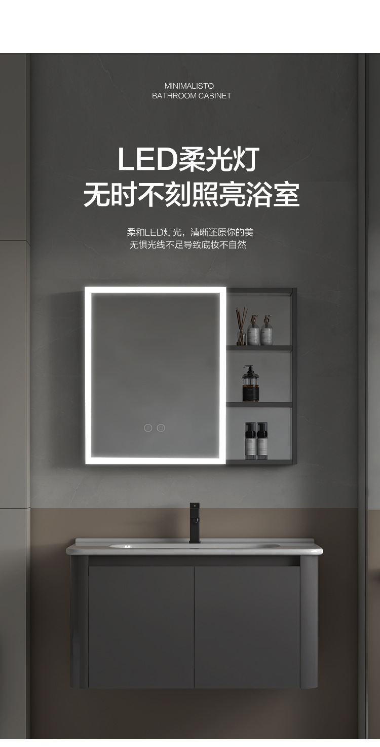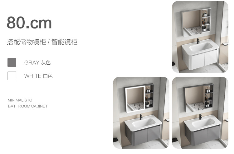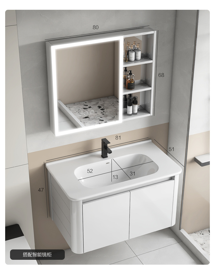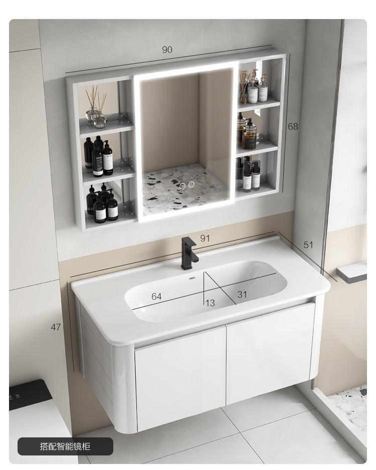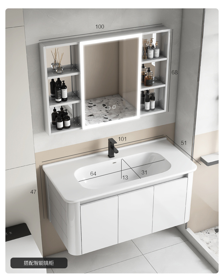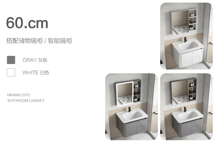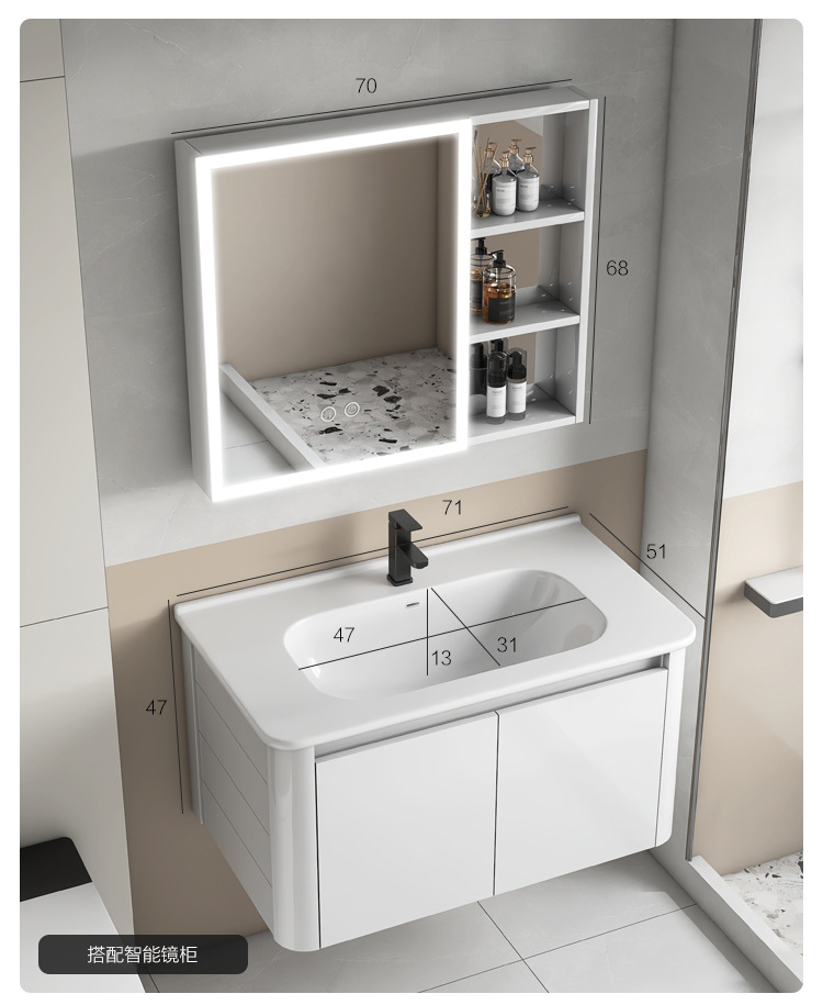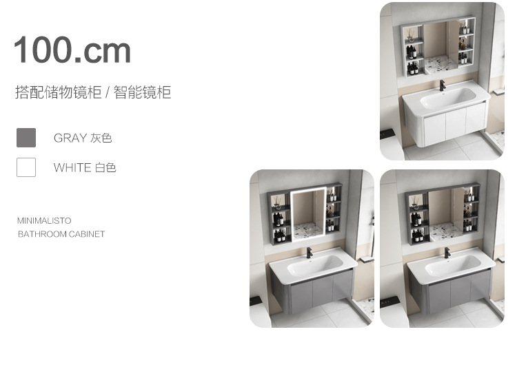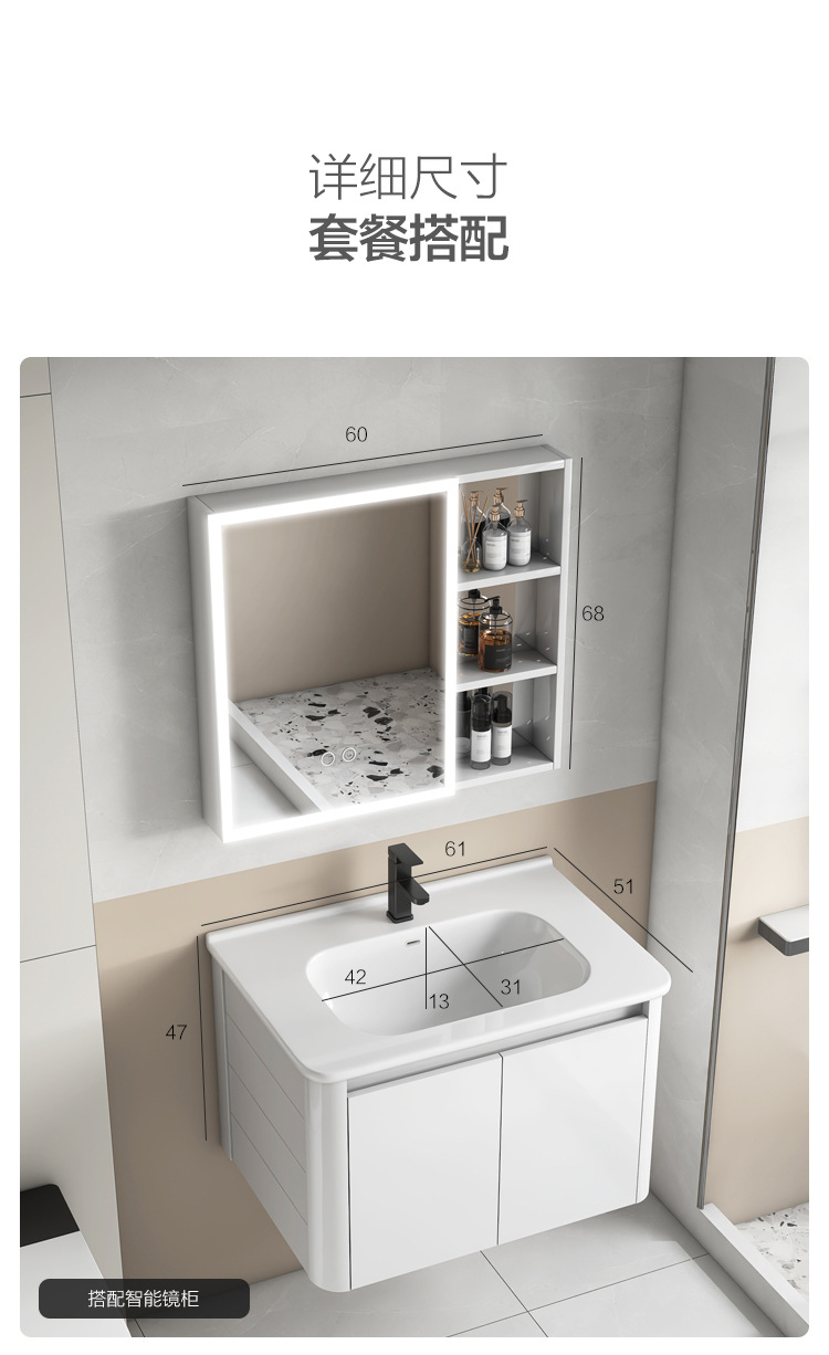 Creamy viento blanco espesado espacio gabinete de baño de aluminio combinado cerámica lavabo de mano lavabo lavabo