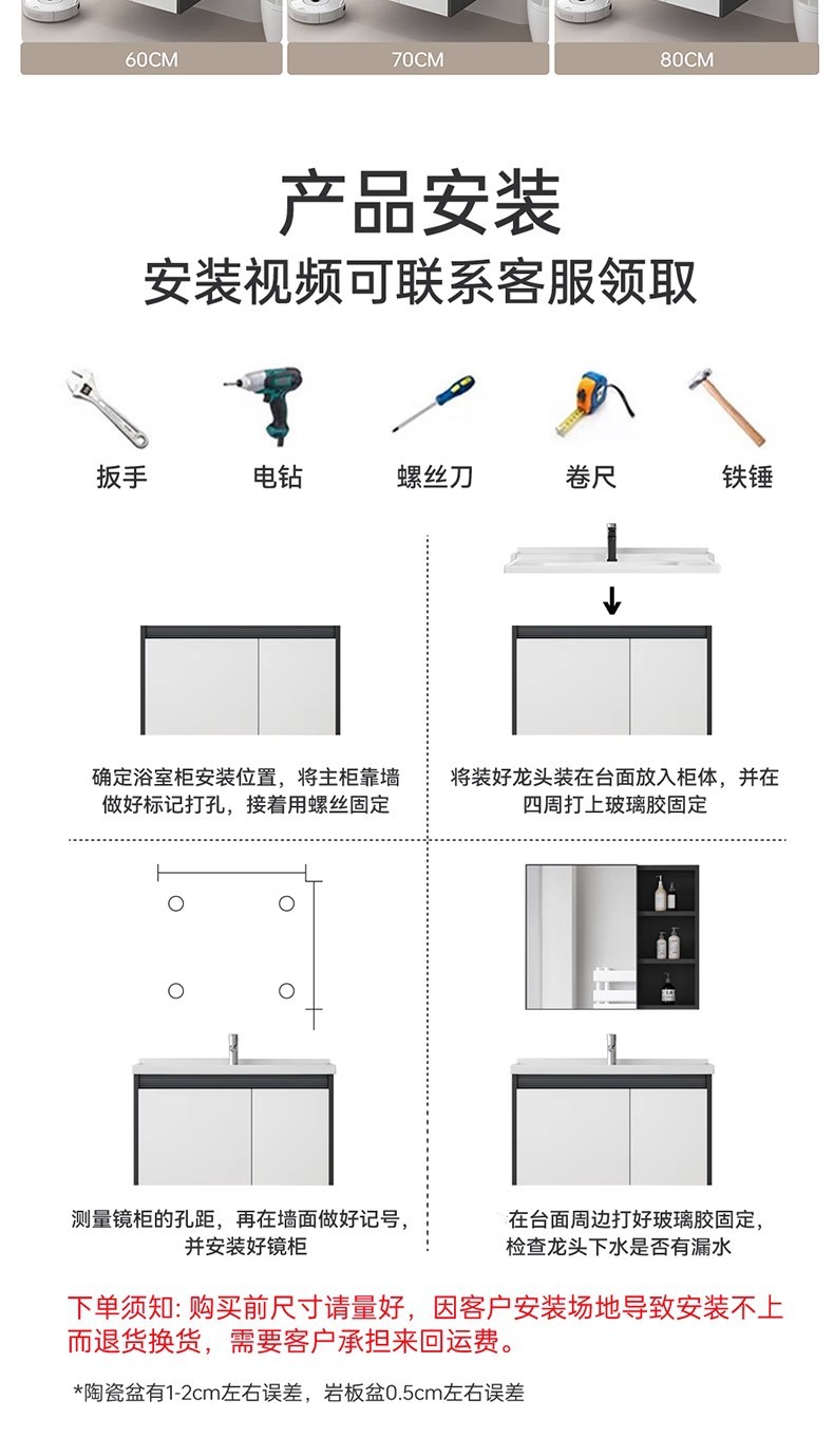 | Color | Café de leche 60cm (cuenca de cerámica) + gabinete de espejo, blanco 60cm (cuenca de cerámica) + gabinete de espejo, café de leche 70cm (cuenca de cerámica) + gabinete de espejo, blanco 70C |