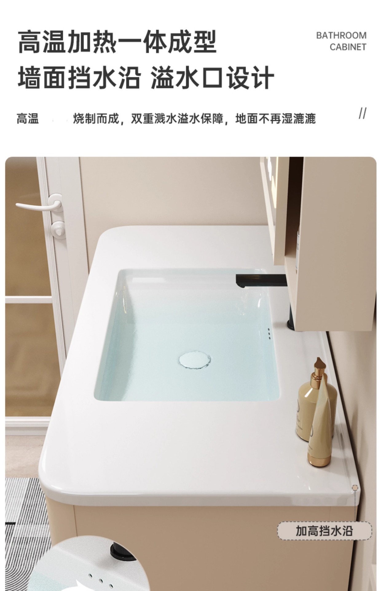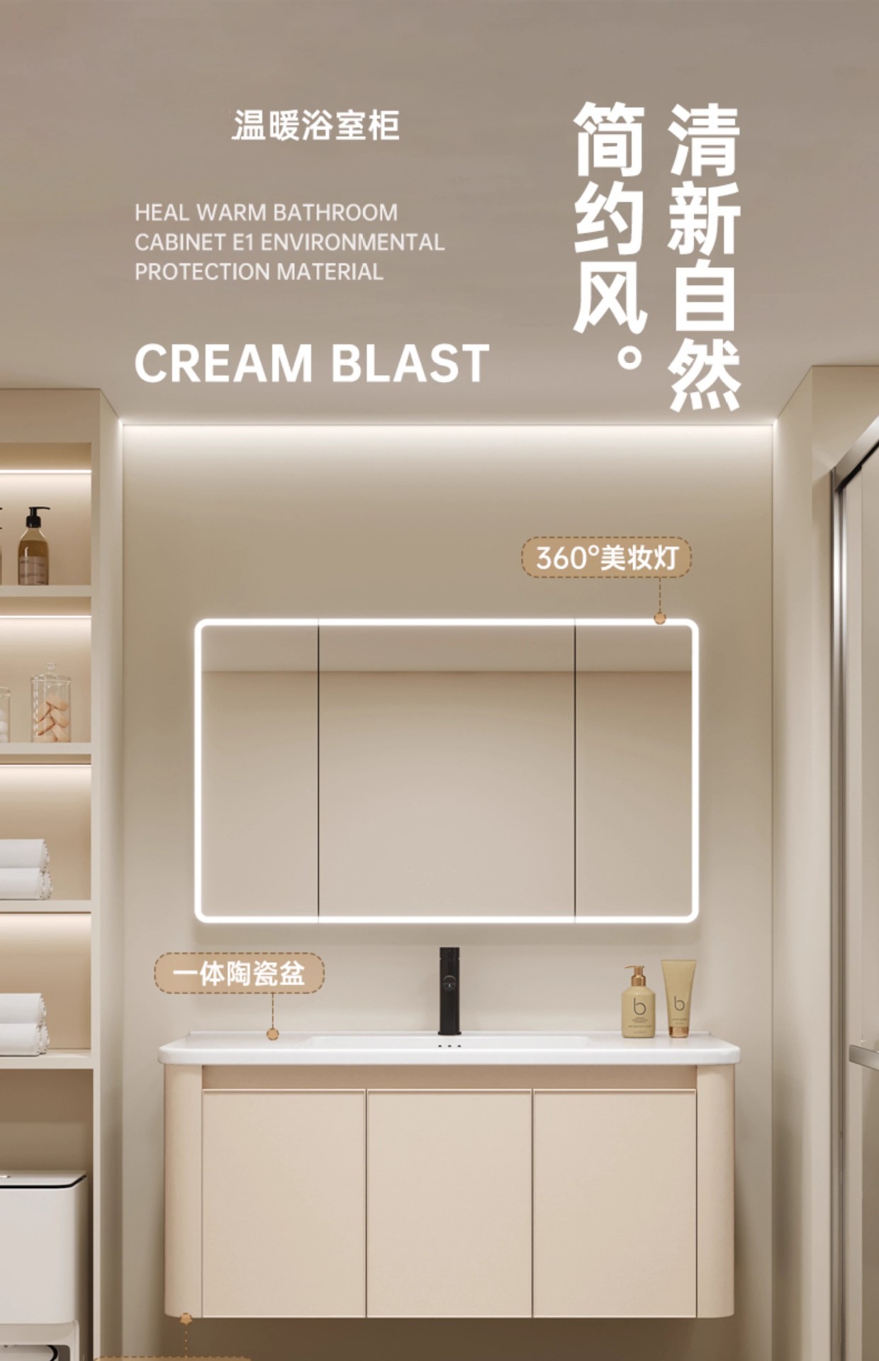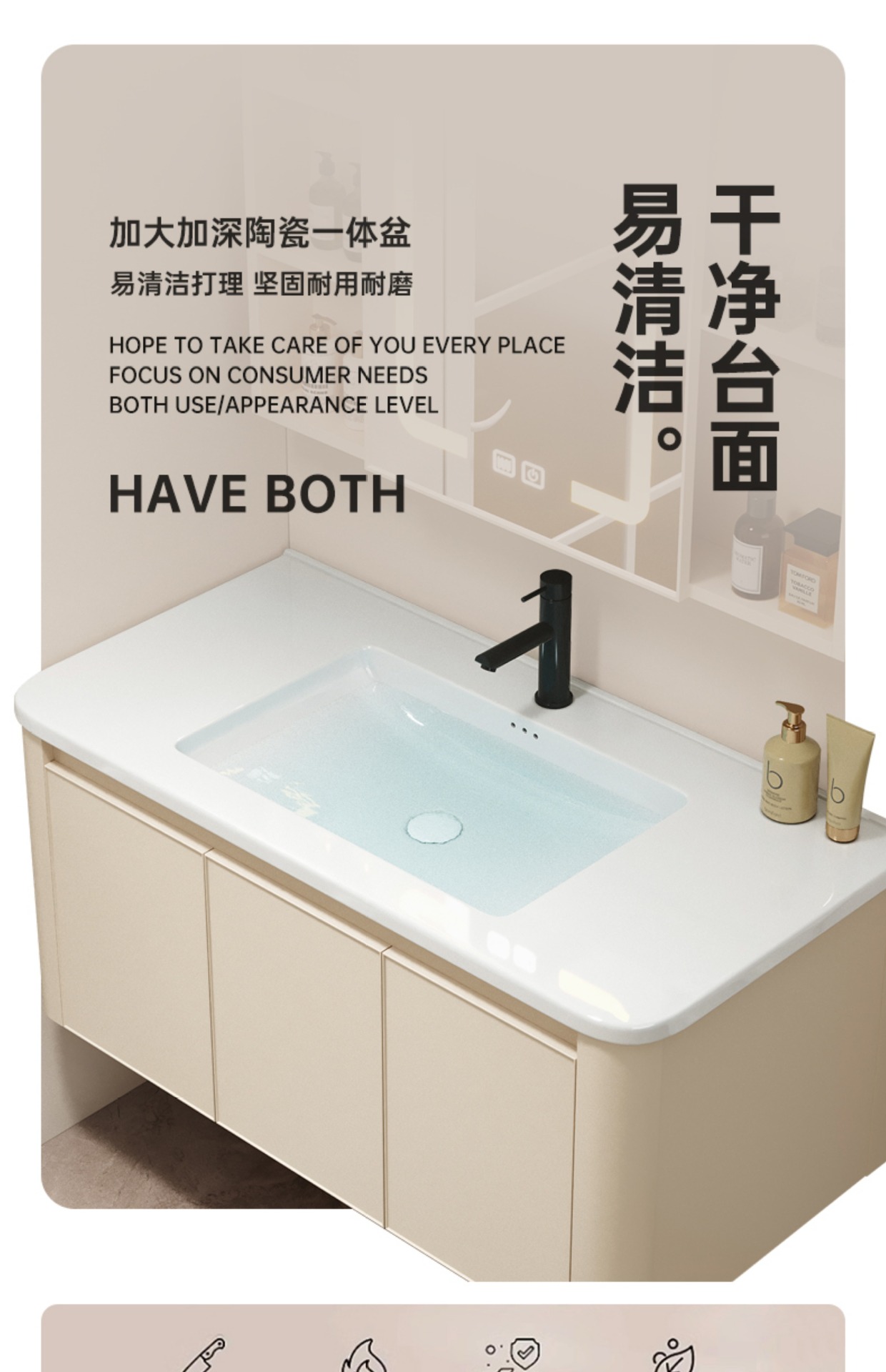 Gabinete de baño de aire crema combinado cerámica integral lavabo lava