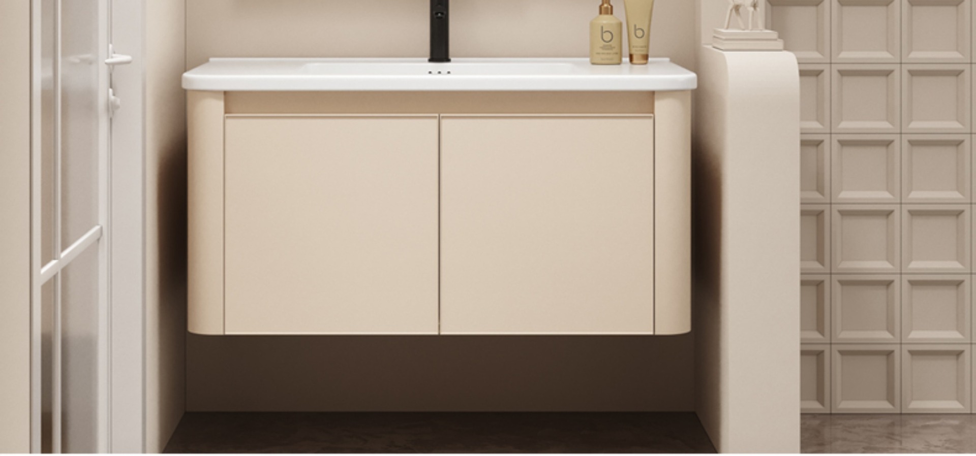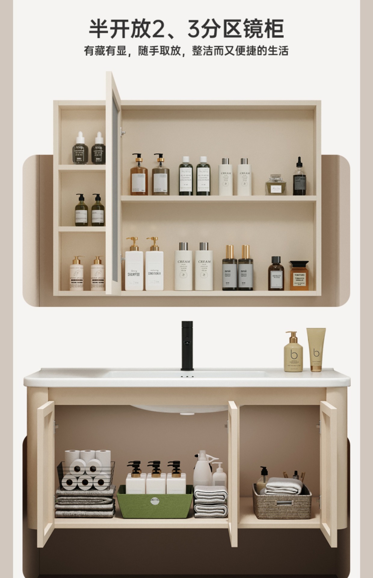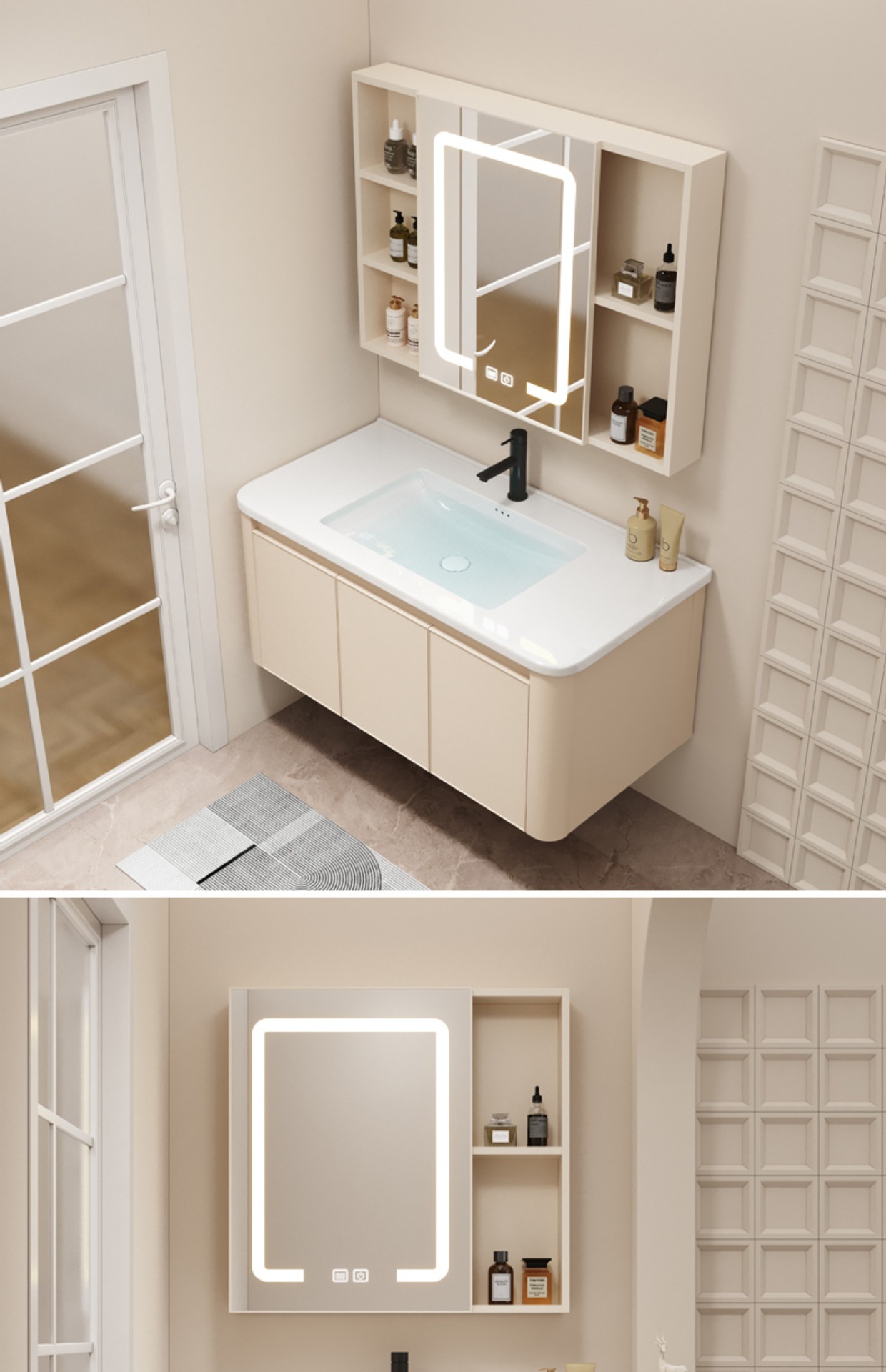 Gabinete de baño de aire crema combinado cerámica integral lavabo lava