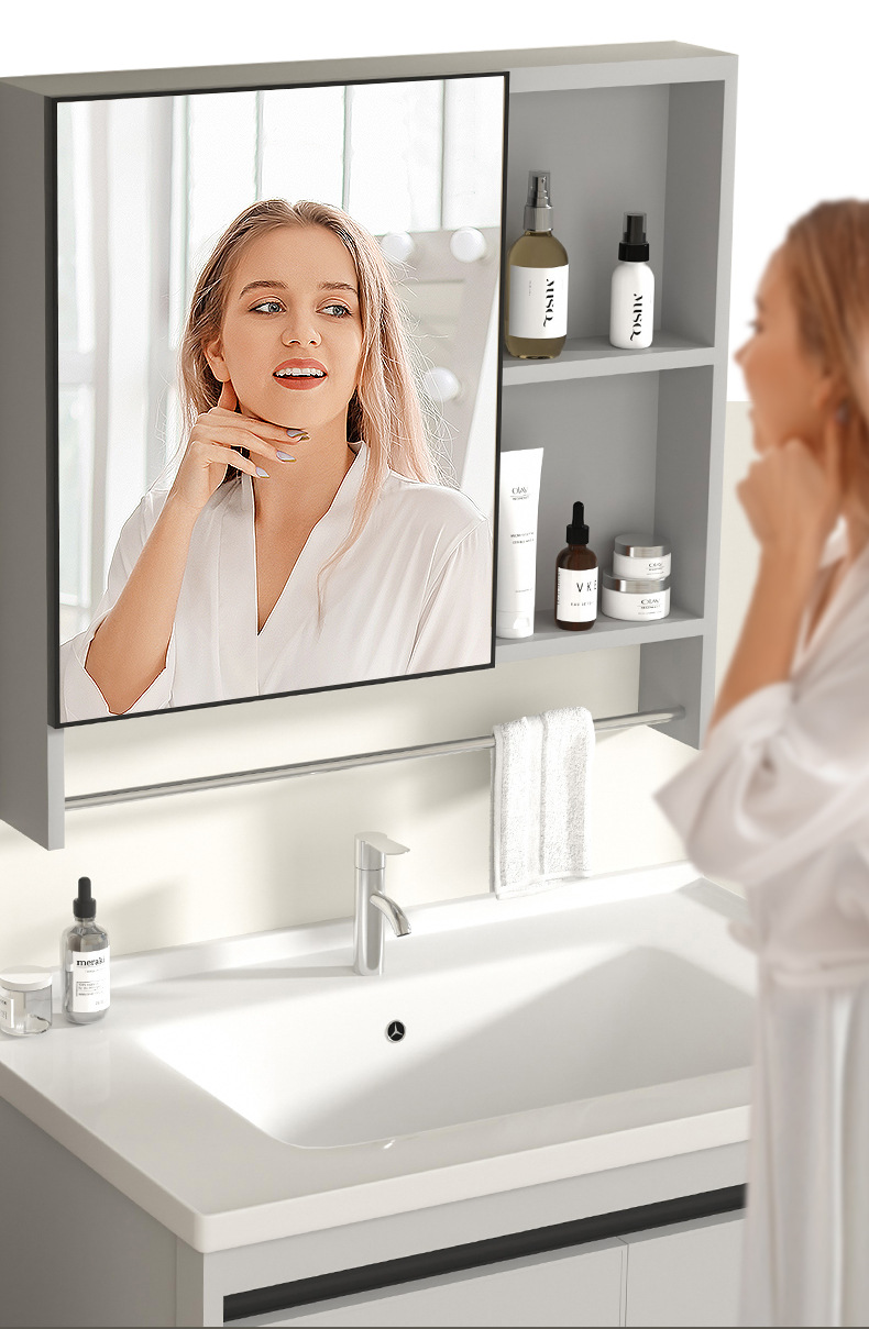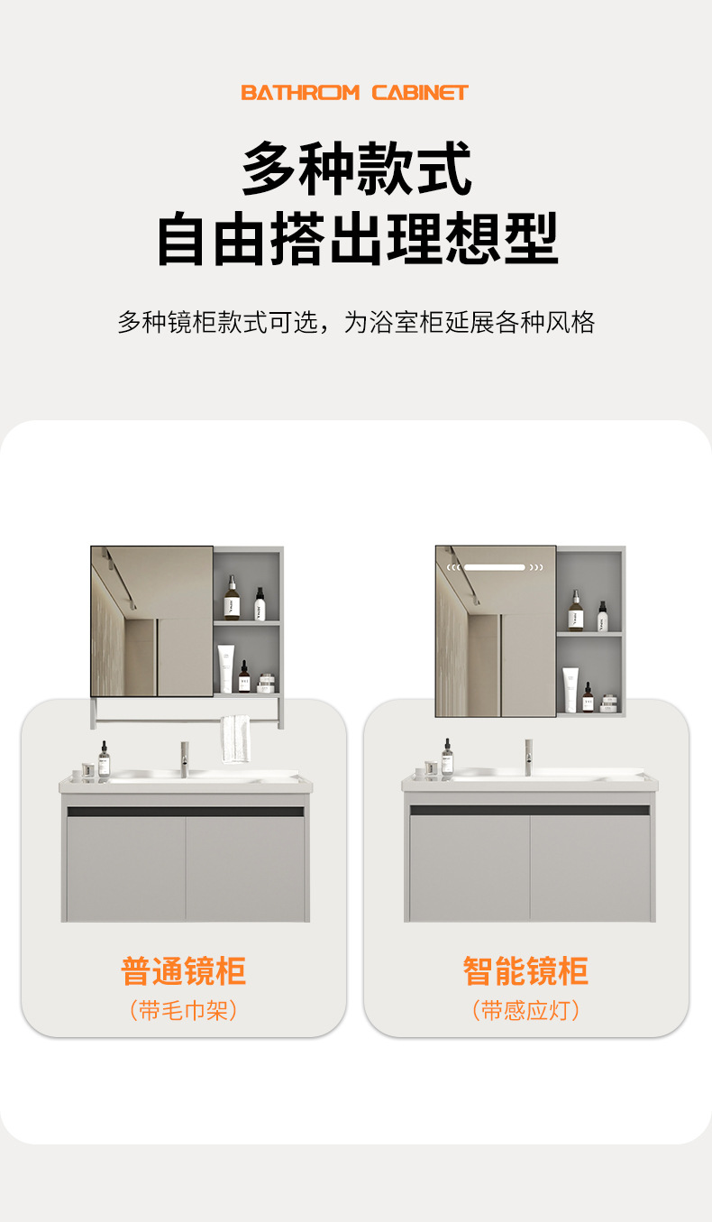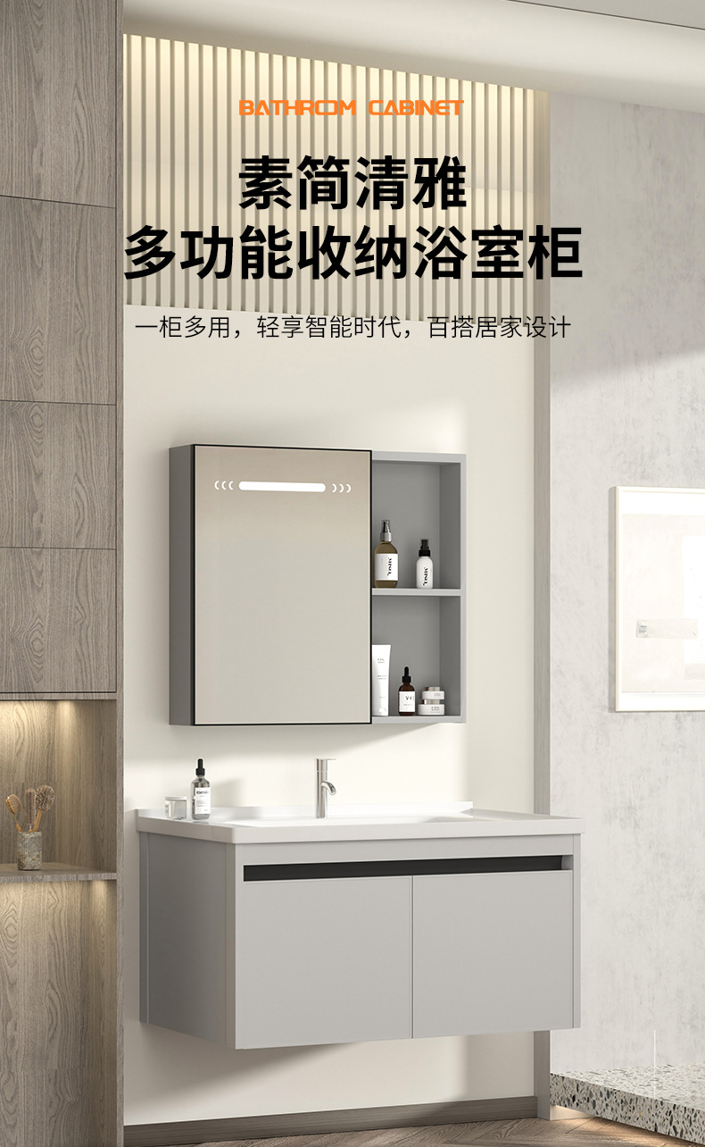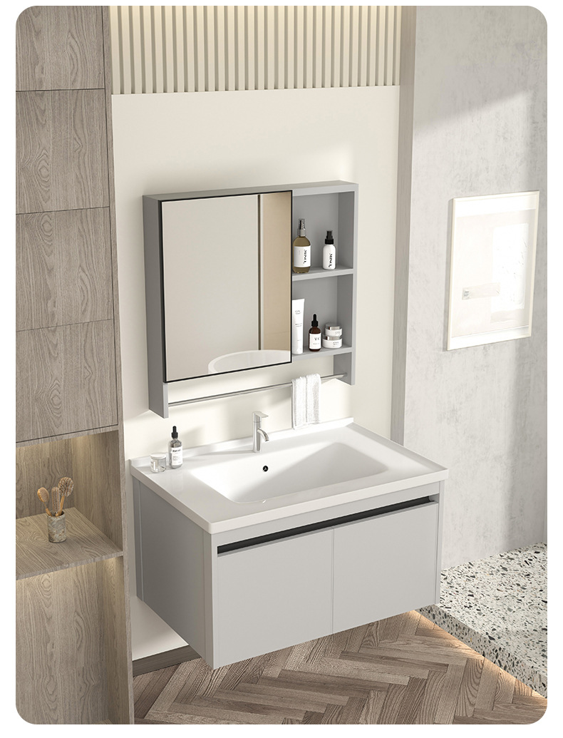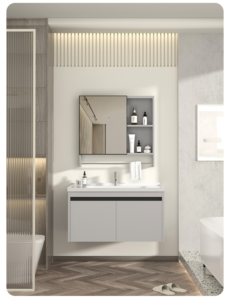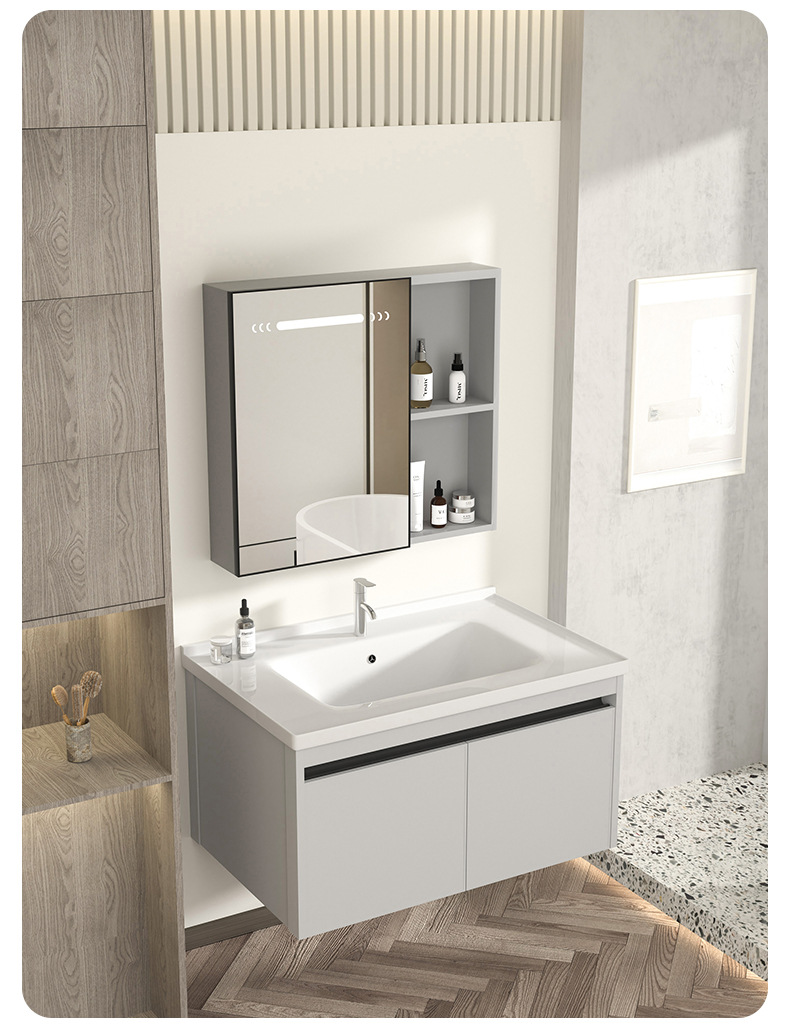 gabinete de baño inteligente de aluminio moderno espacio gabinete de lavabo de baño gabinete de lavabo de cerámica integral lavabo