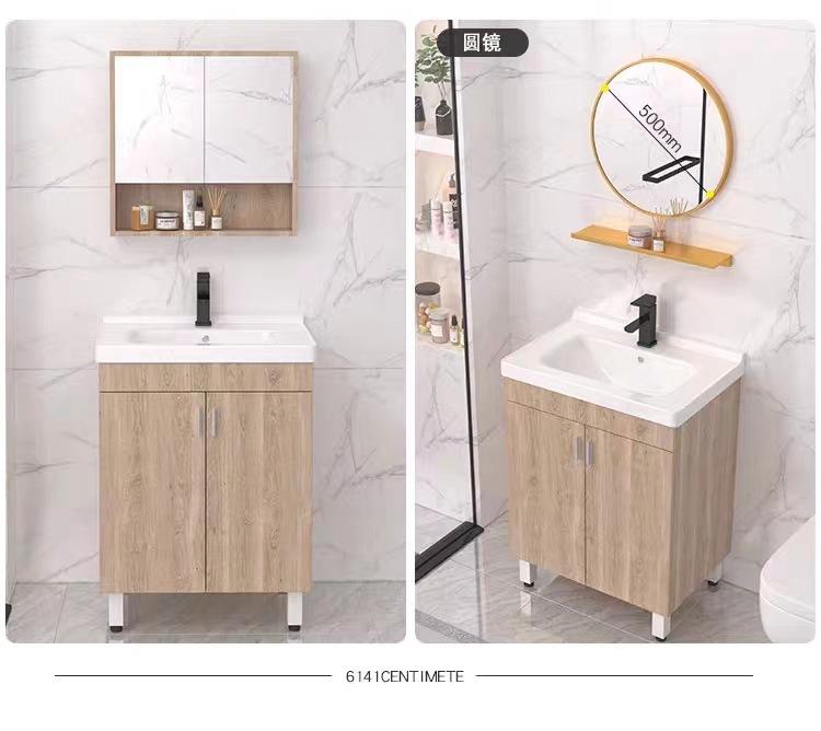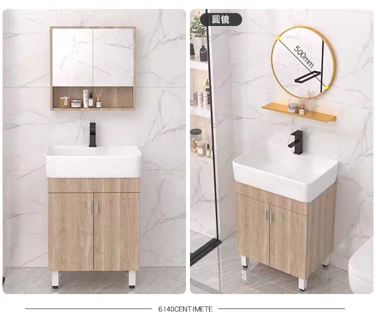 gabinete de baño de madera sólida tipo piso combinación de gabinete de lavabo de cerámica integral lavabo lavabo lavabo inodoro