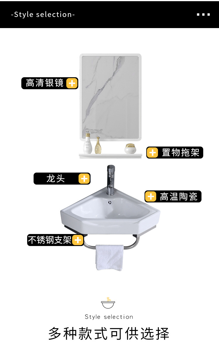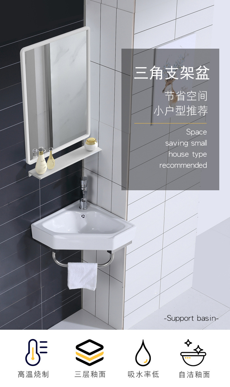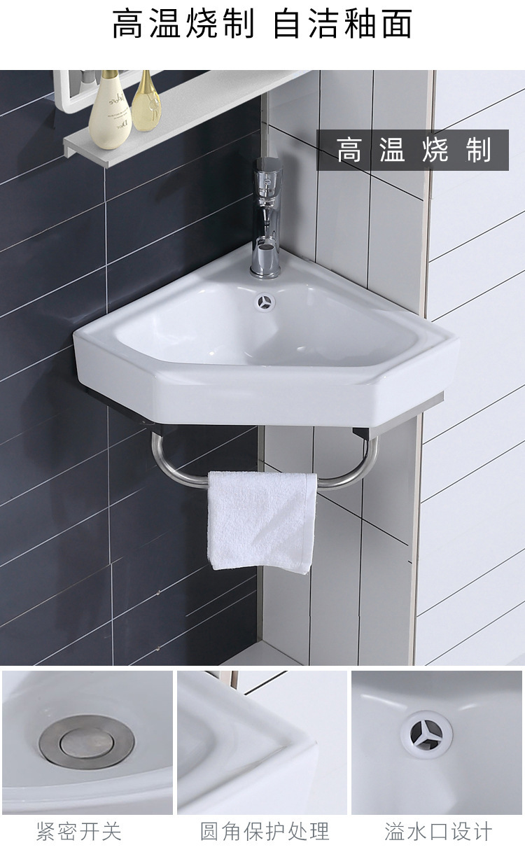 lavabo tipo pared lavabo cerámica esquina de pared triángulo pequeño tipo mini balcón lavabo en forma de ventilador para uso doméstico