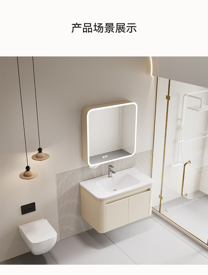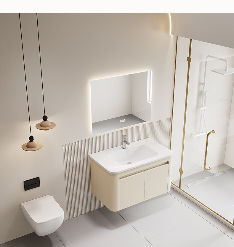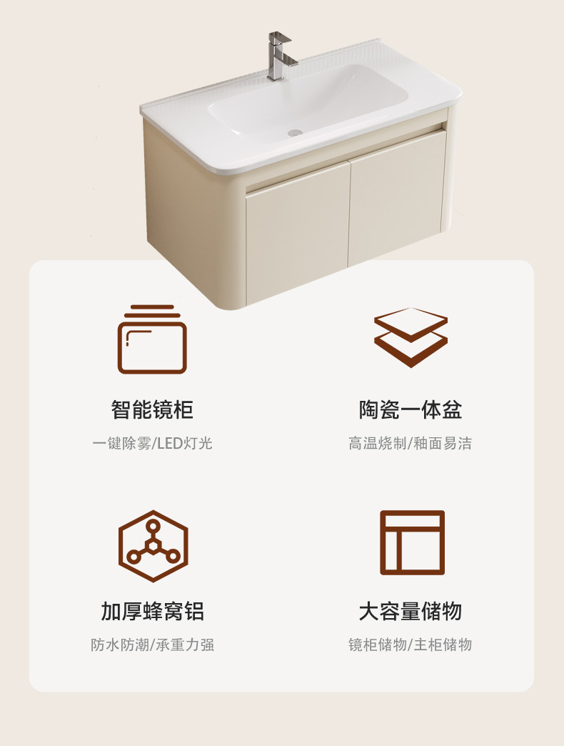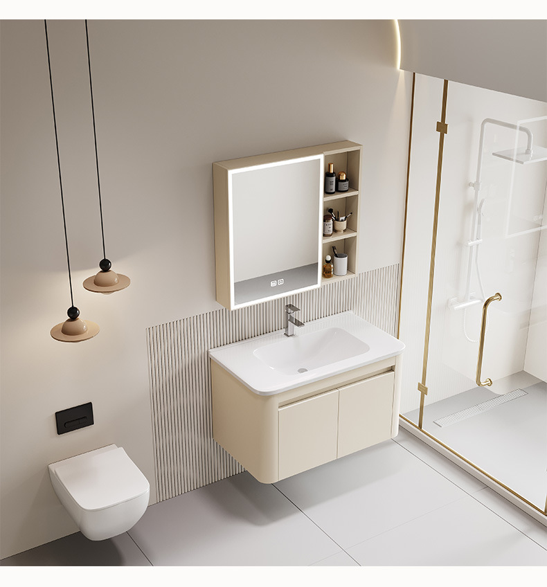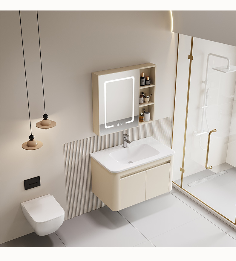gabinete de baño de panal de aluminio espacial de pared combinado en una bañera de cerámica lavabo de mano lavado de cara gabinete de espejo inteligente
