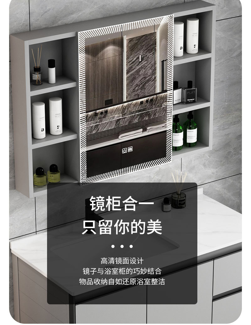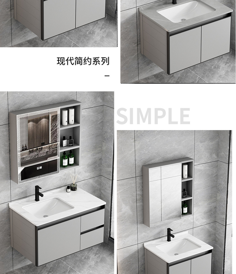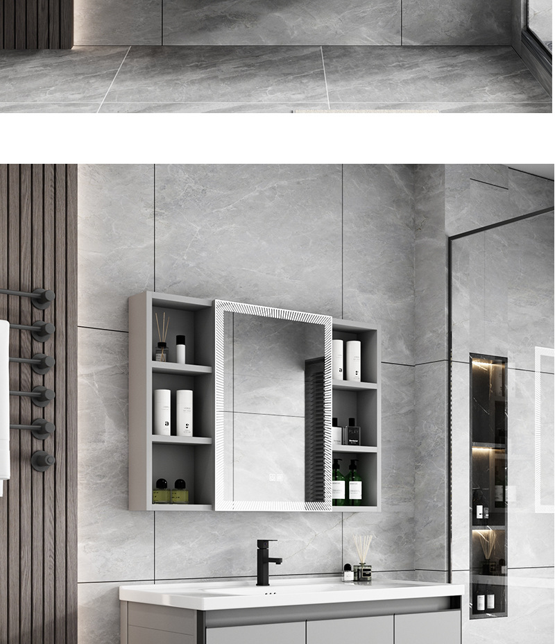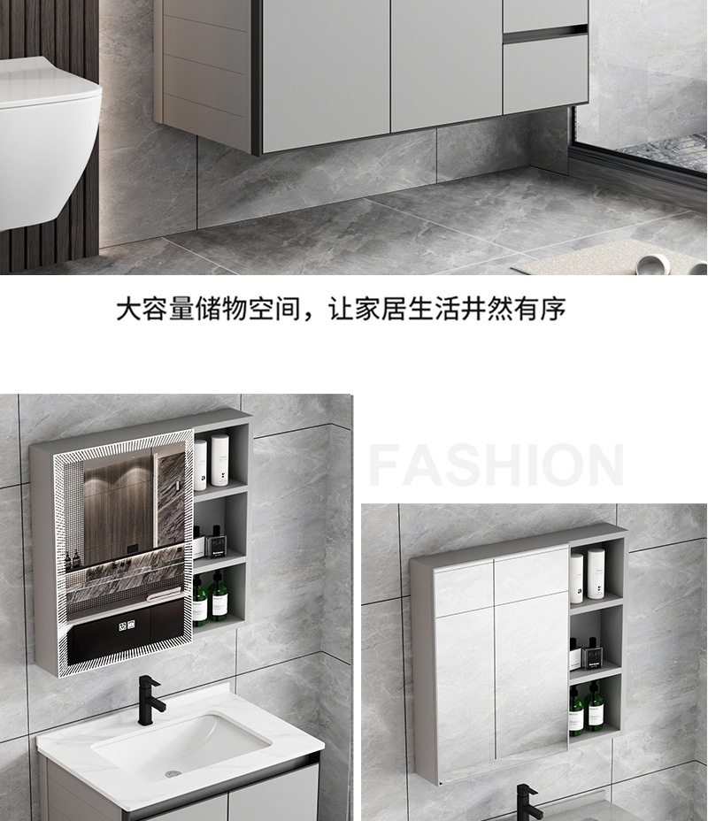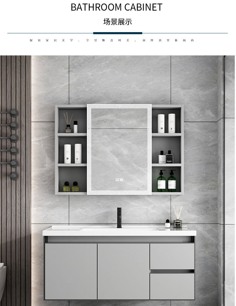 Cajón gris pálido crema aire baño baño espacio aleación de aluminio lavado de manos lavado de cara lavado armario inteligente espejo combinación