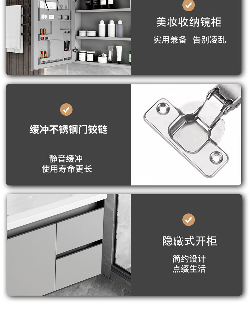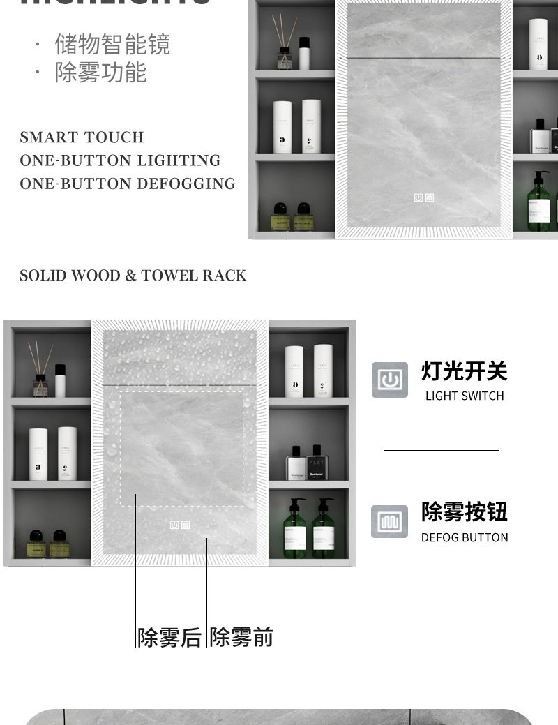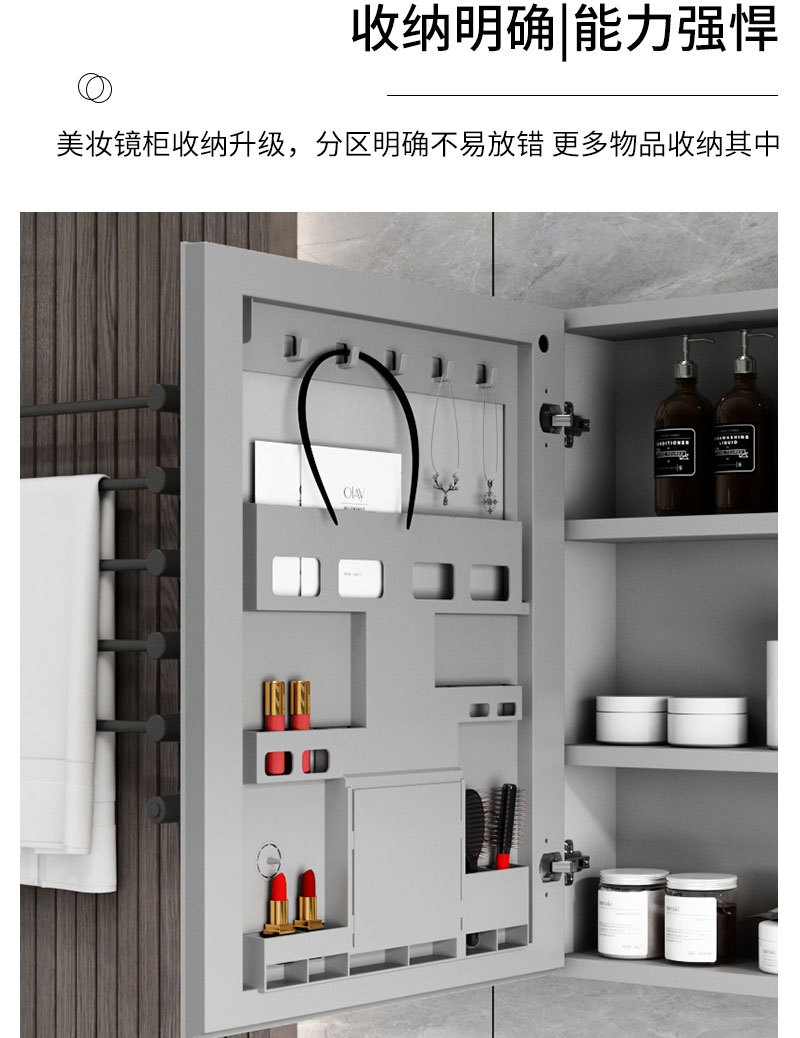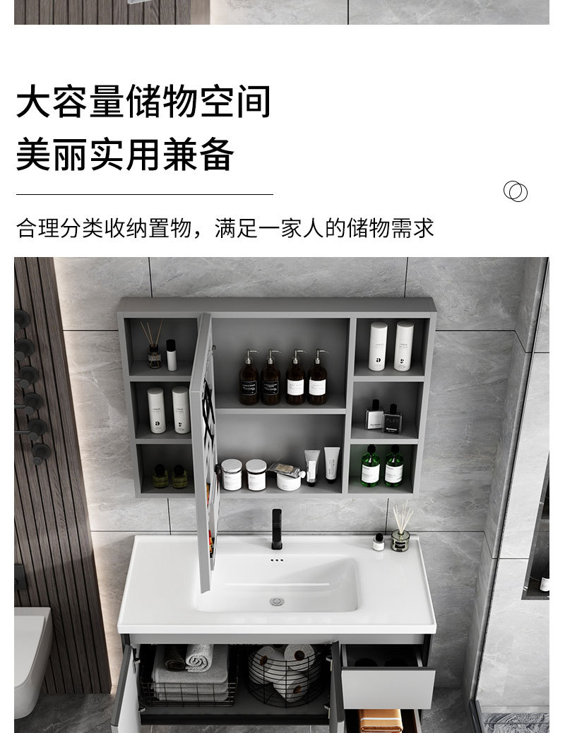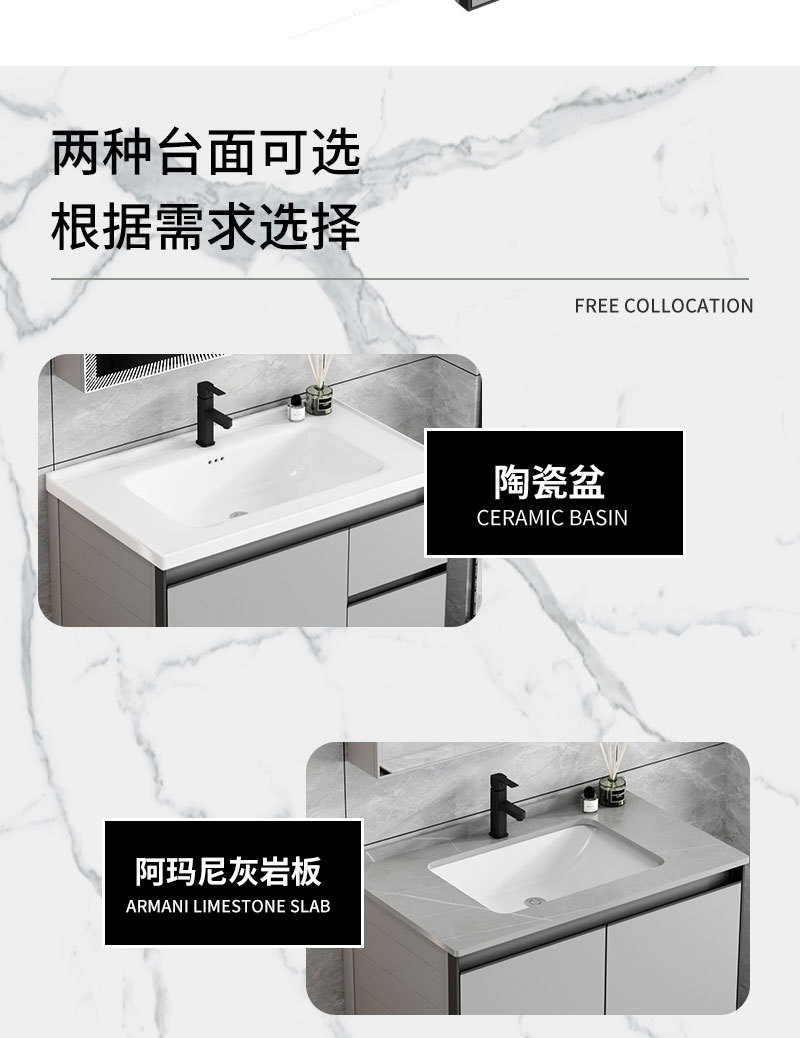 Cajón gris pálido crema aire baño baño espacio aleación de aluminio lavado de manos lavado de cara lavado armario inteligente espejo combinación