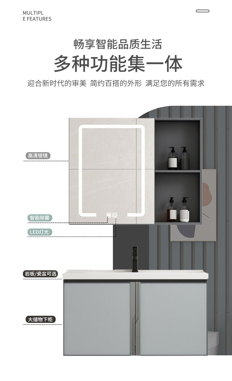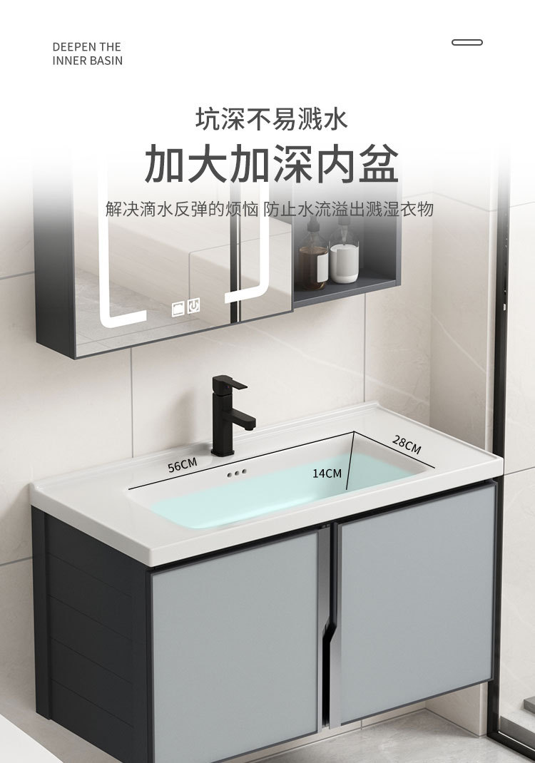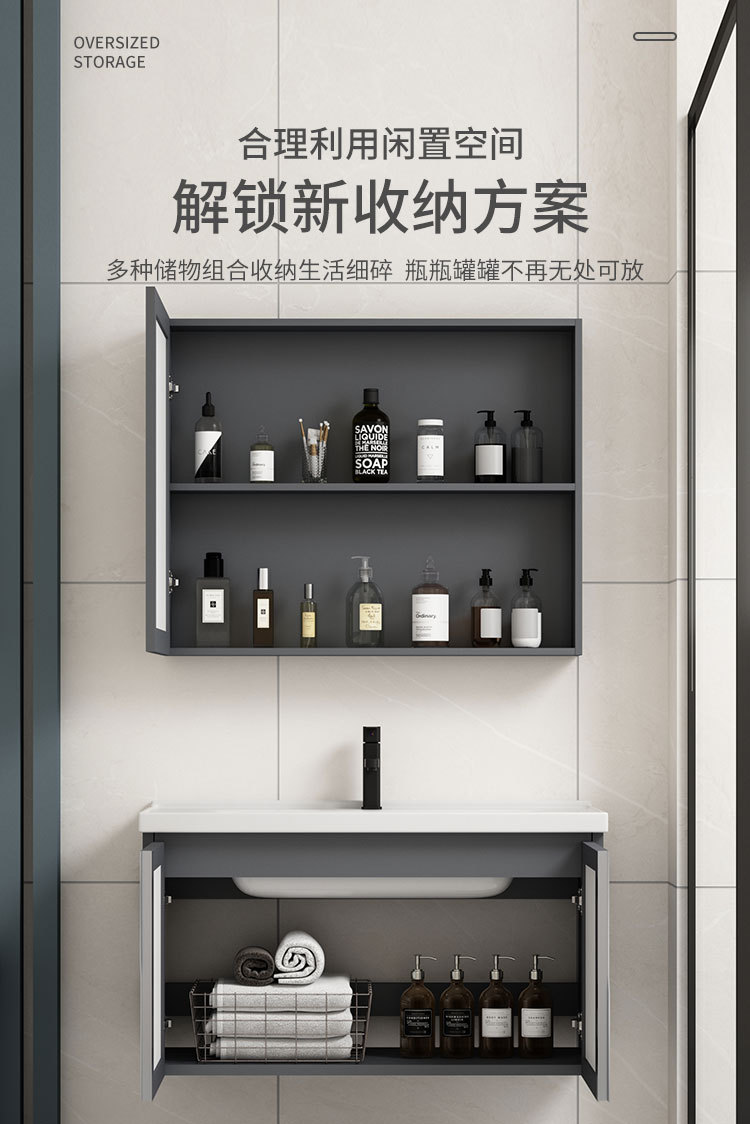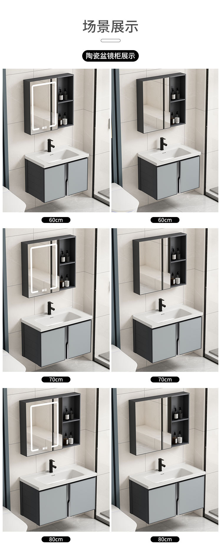 gabinete de lavabo tipo pared de aluminio espacial cerámica doméstica gabinete de baño integrado gabinete combinado lavabo de roca mesa gabinete combinado