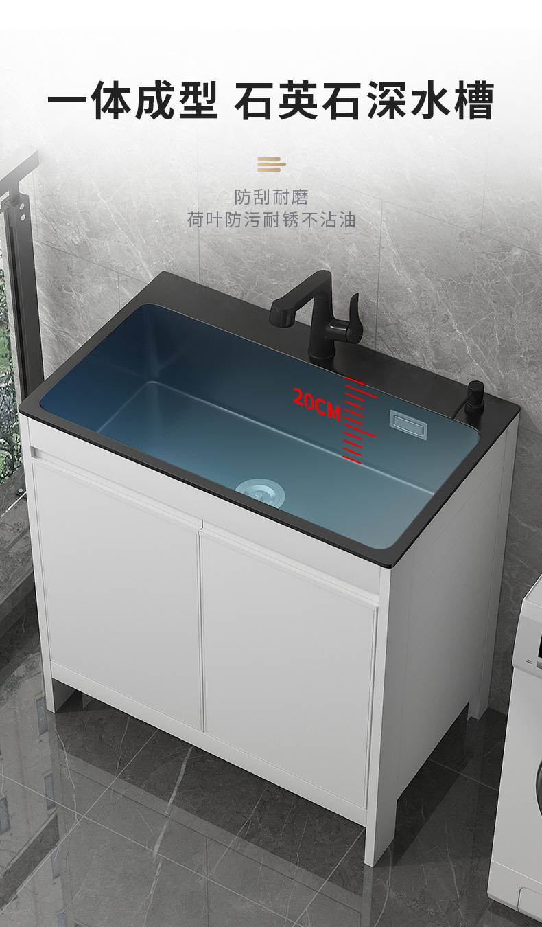 lavabo de balcón lavabo de manos al aire libre lavabo de piedra de cuarzo patio lavabo de piso tipo lavabo gabinete combinación