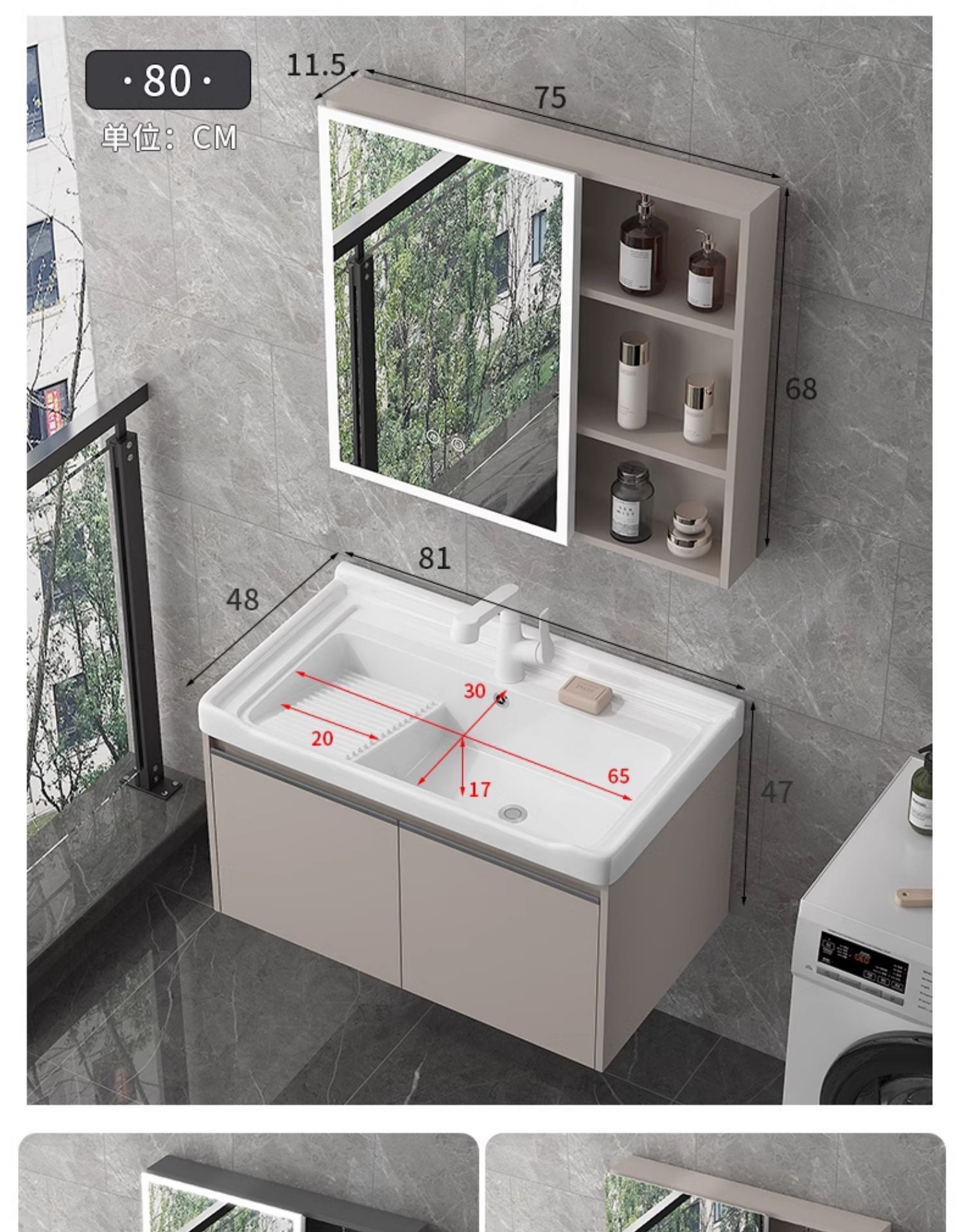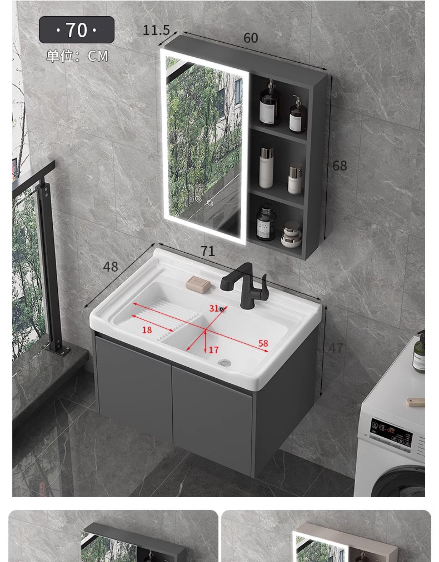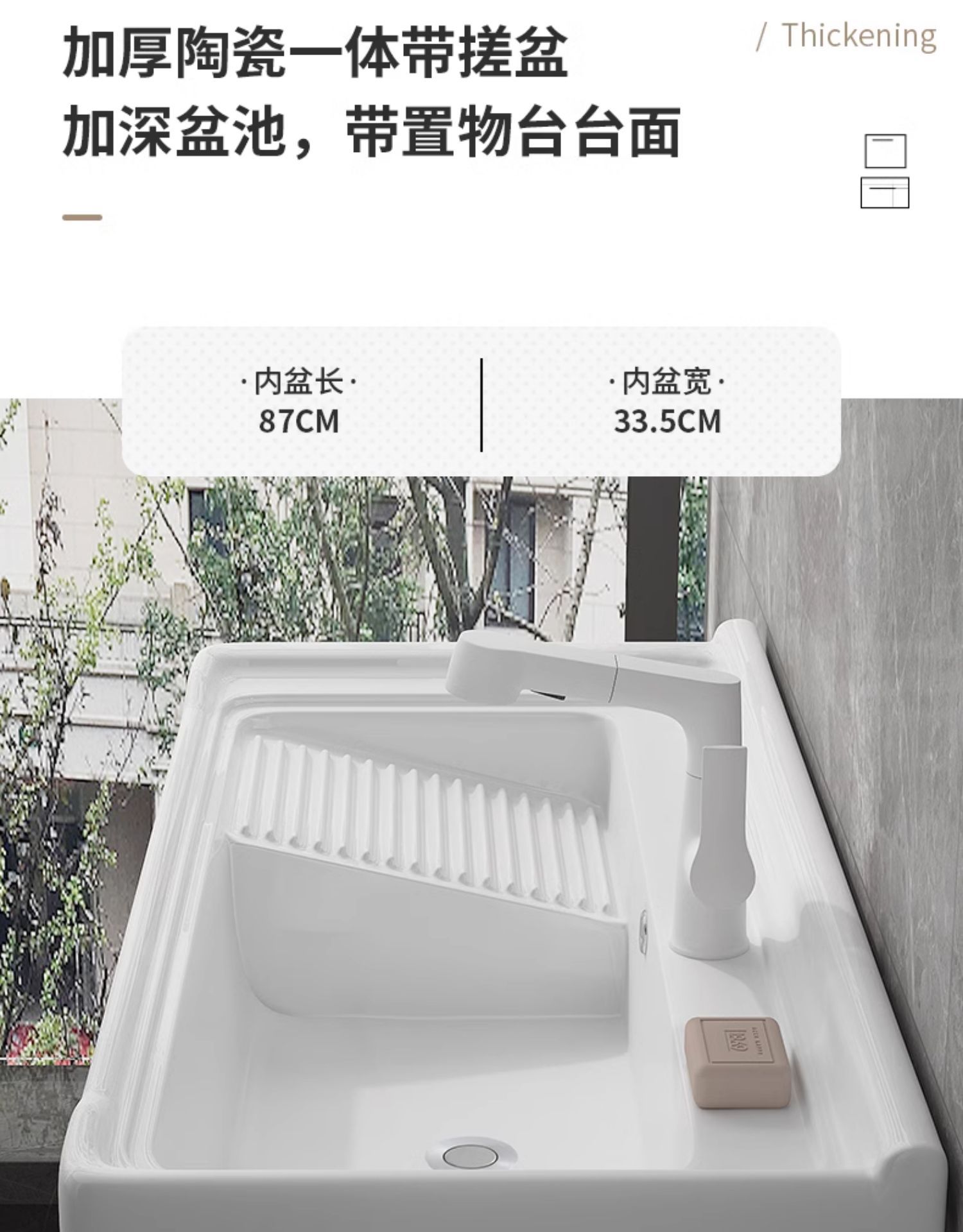 lavabo de lavandería de balcón tipo casa pequeña lavabo armario combinado con placa de fricción cerámica integrada lavabo de lavandería tipo colgante